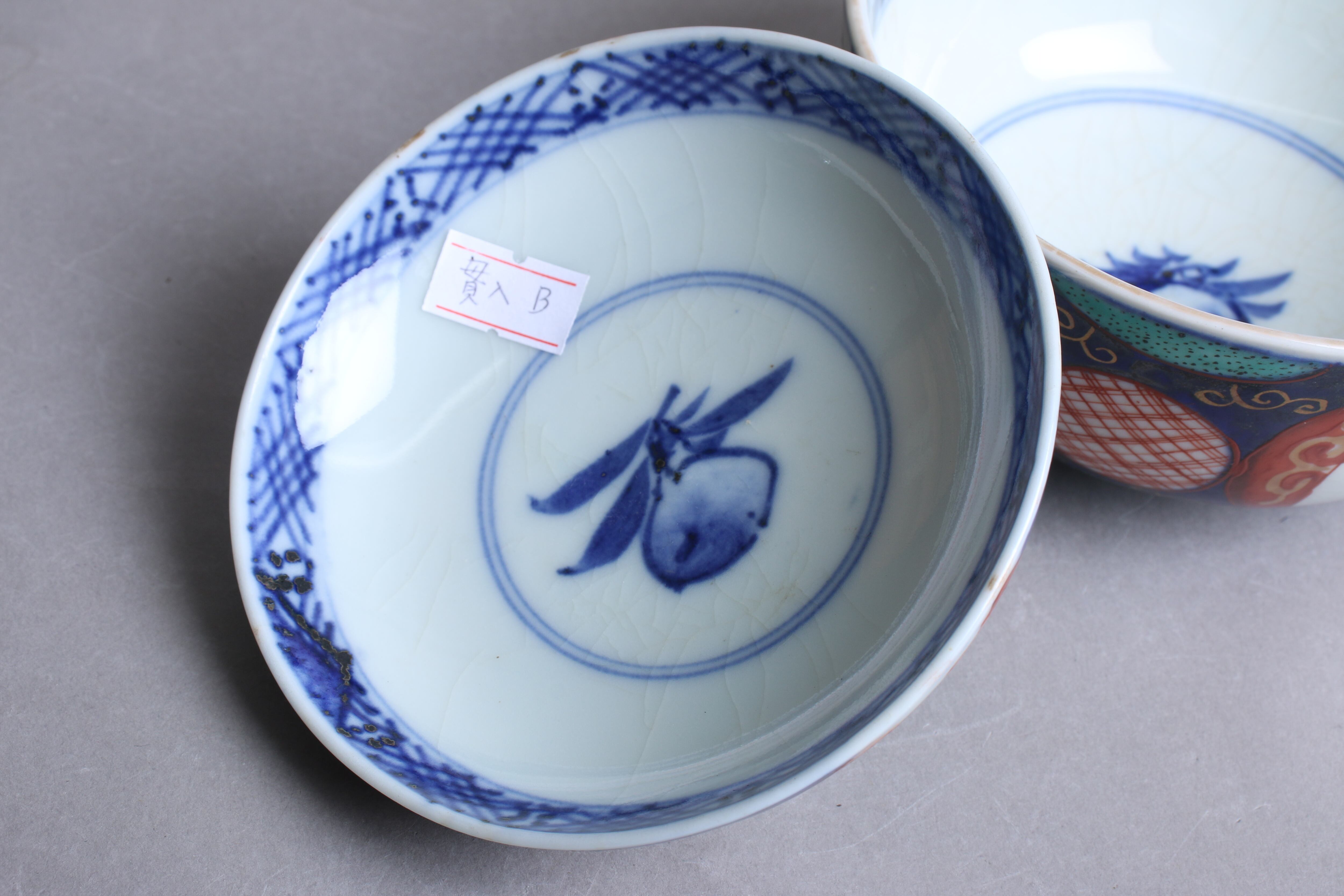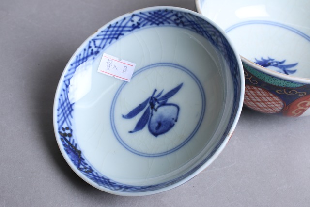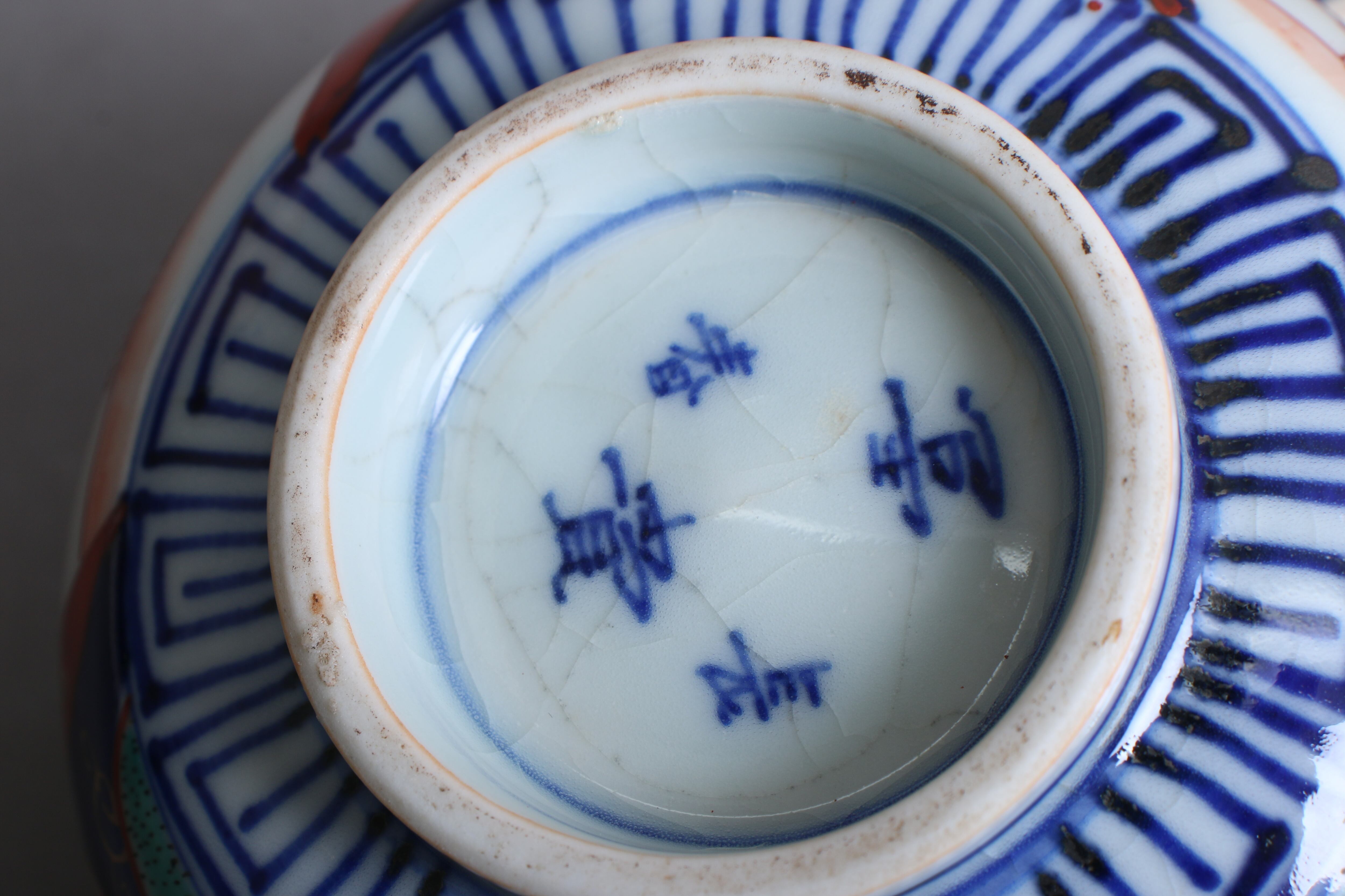 焼成時に窯の中でできる鉄分、くっつき、かまきず、ピンホール、経年による釉薬の薄れがございます。また、一枚一枚手描き、手作りですので器のサイズ(ミリ)、色味、描かれている文様の大きさなど個体差があり、ひとつとして同じものはございません。そういった時代感、個性をご理解いただき、楽しんでくだされば幸いです。電子レンジや食器洗い乾燥機のご使用はお控えください。