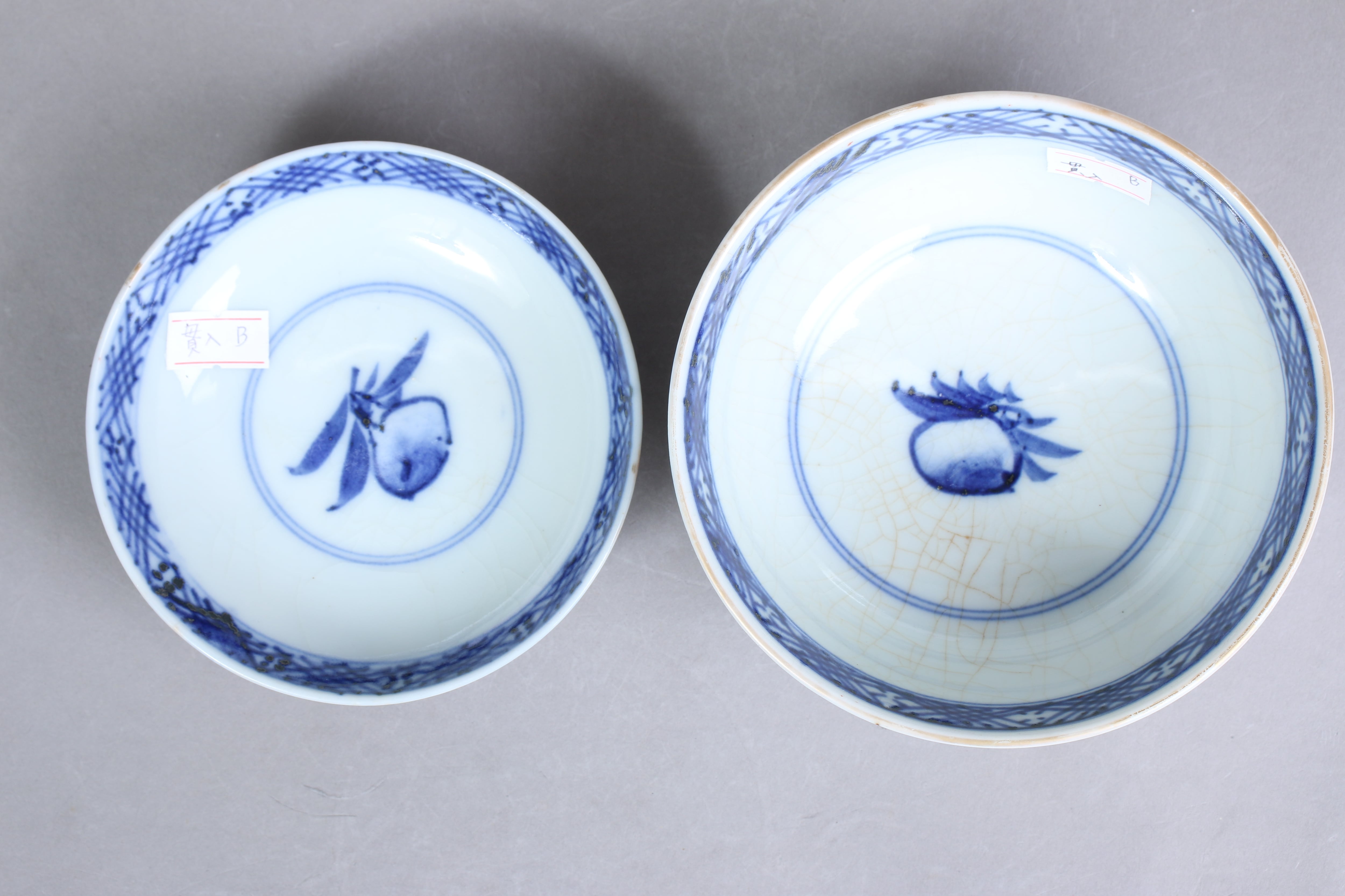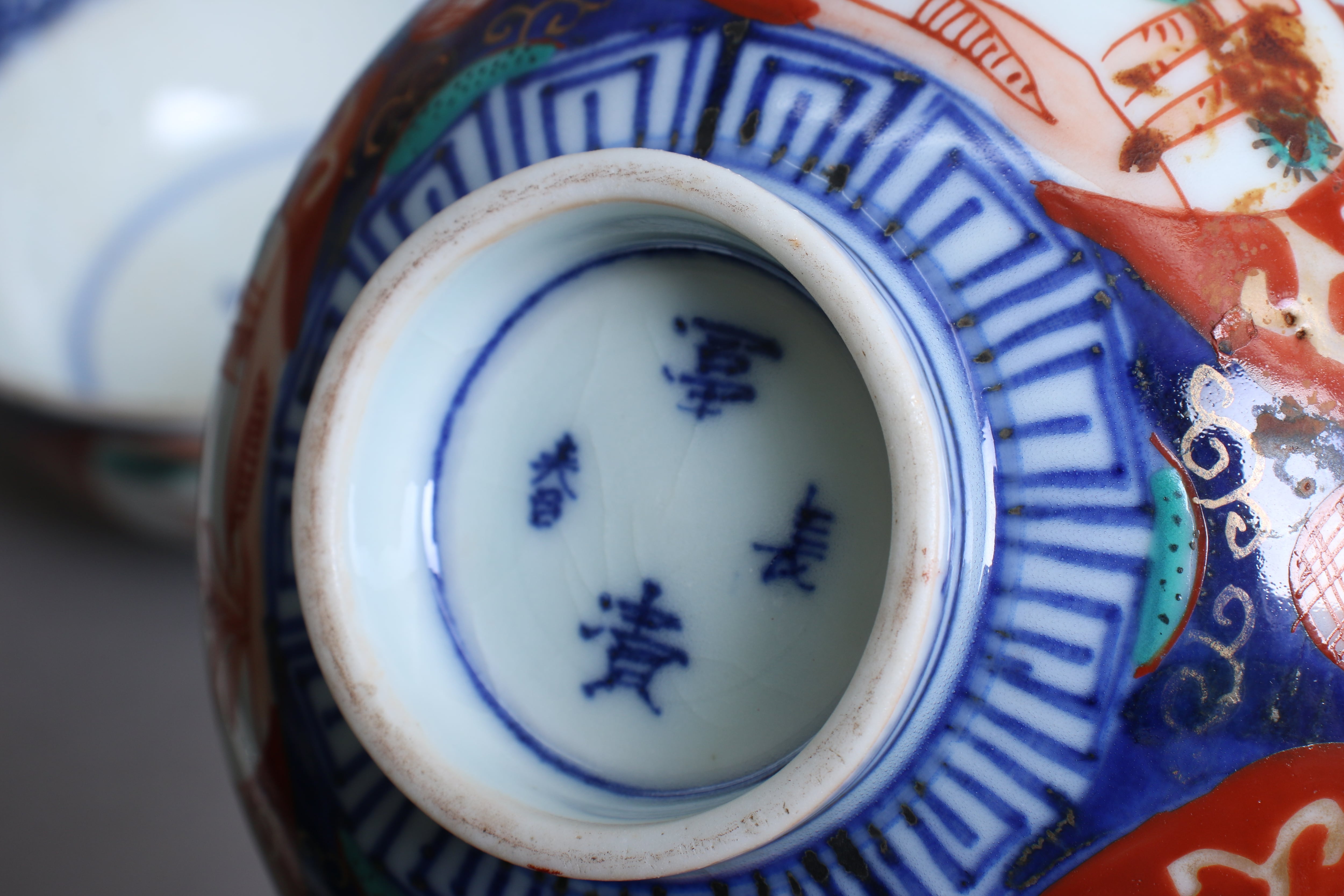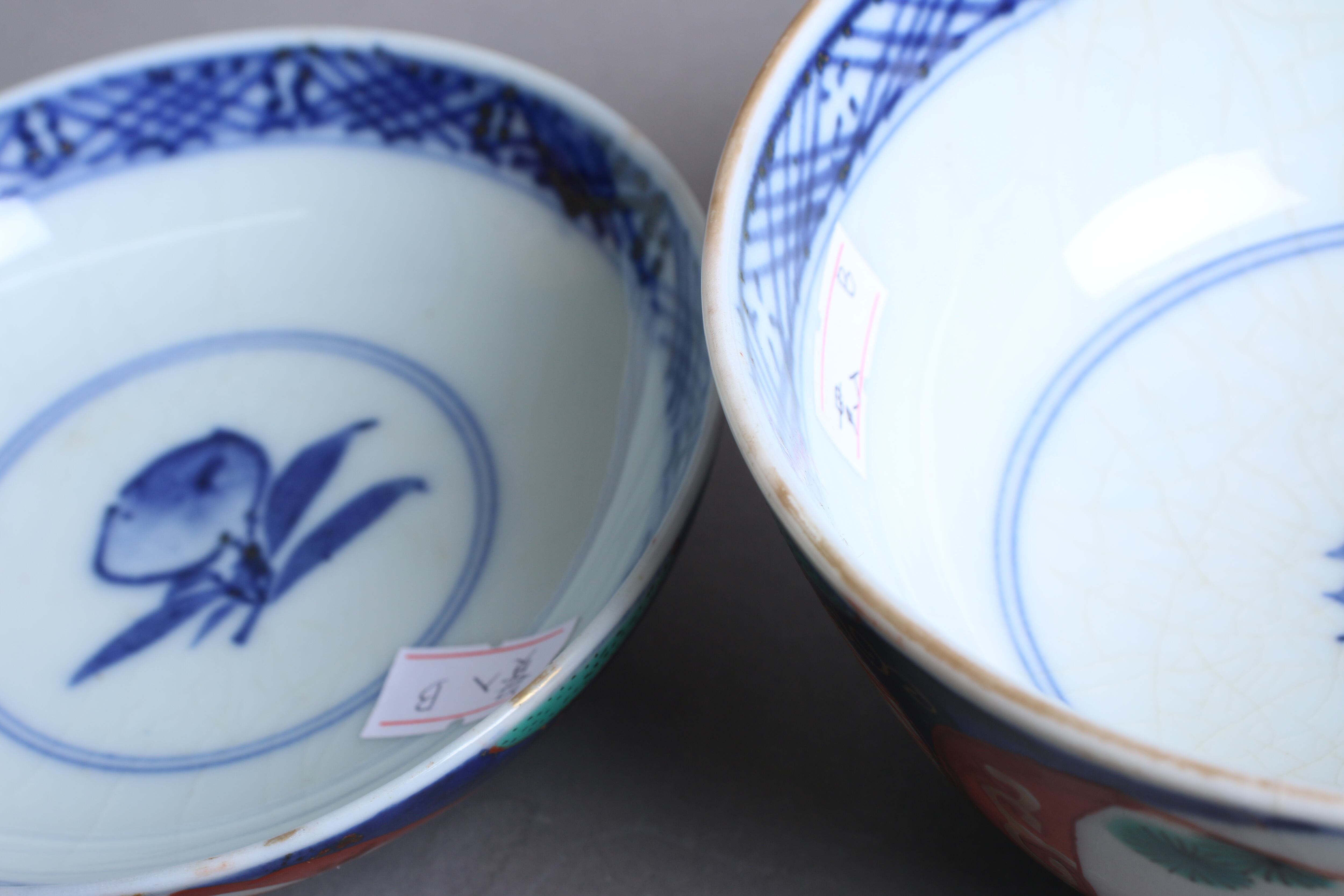 焼成時に窯の中でできる鉄分、くっつき、かまきず、ピンホール、経年による釉薬の薄れがございます。また、一枚一枚手描き、手作りですので器のサイズ(ミリ)、色味、描かれている文様の大きさなど個体差があり、ひとつとして同じものはございません。そういった時代感、個性をご理解いただき、楽しんでくだされば幸いです。電子レンジや食器洗い乾燥機のご使用はお控えください。