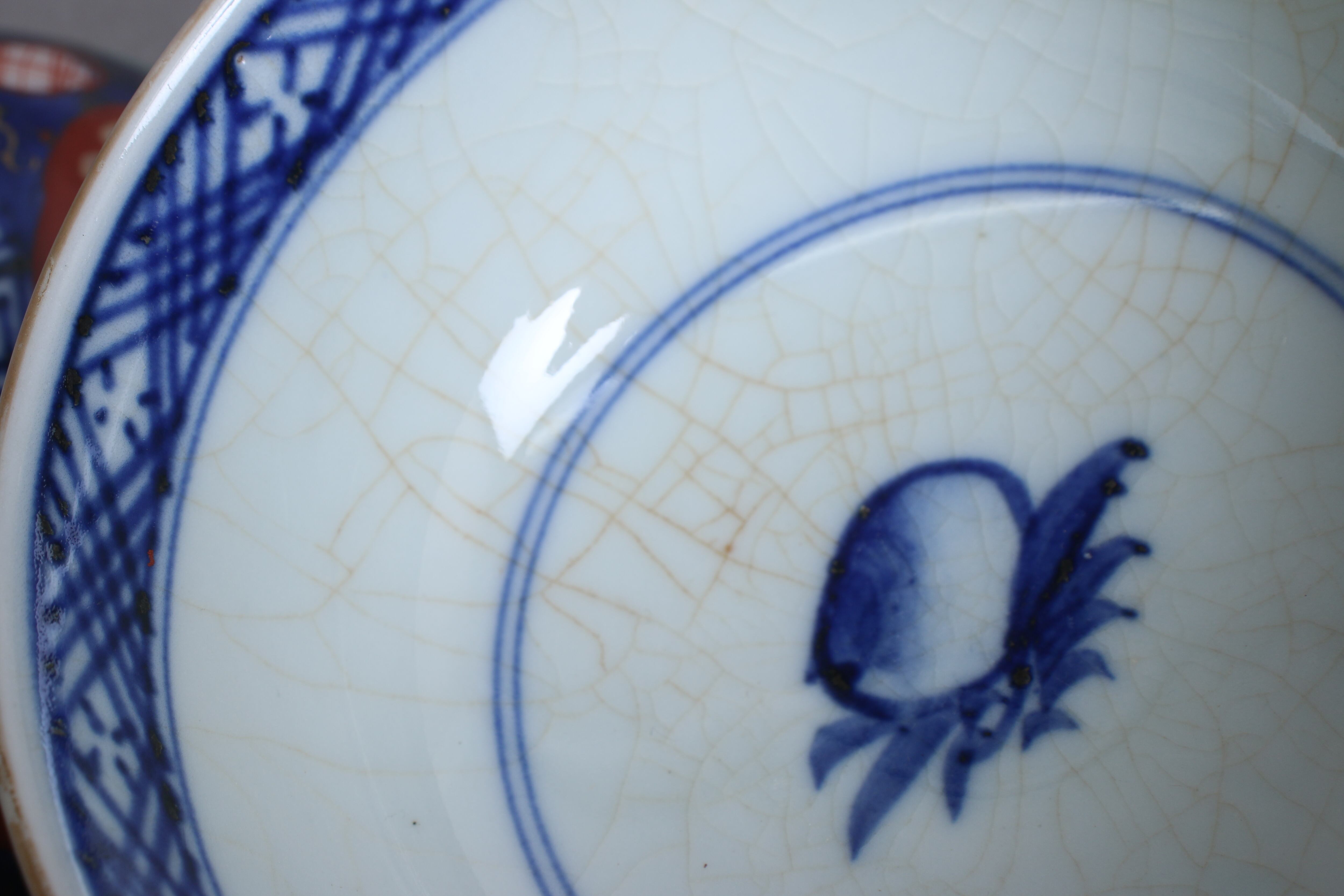 甘手。焼成が不十分なために、器の表面全体に貫入が入ってしまったこと。窯出しの時に、急激に温度が下がると素地と釉薬との収縮率の違いから、起こること。