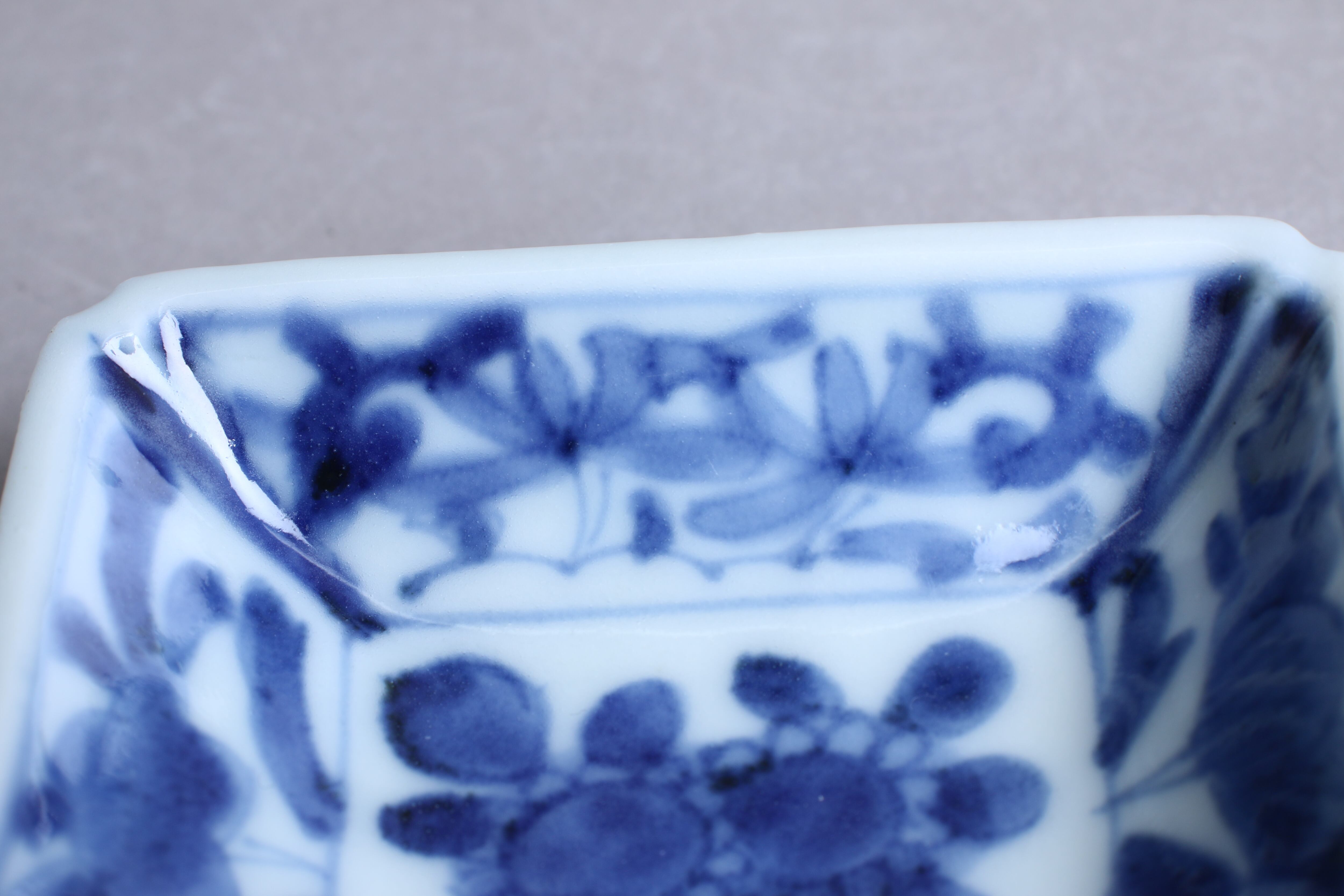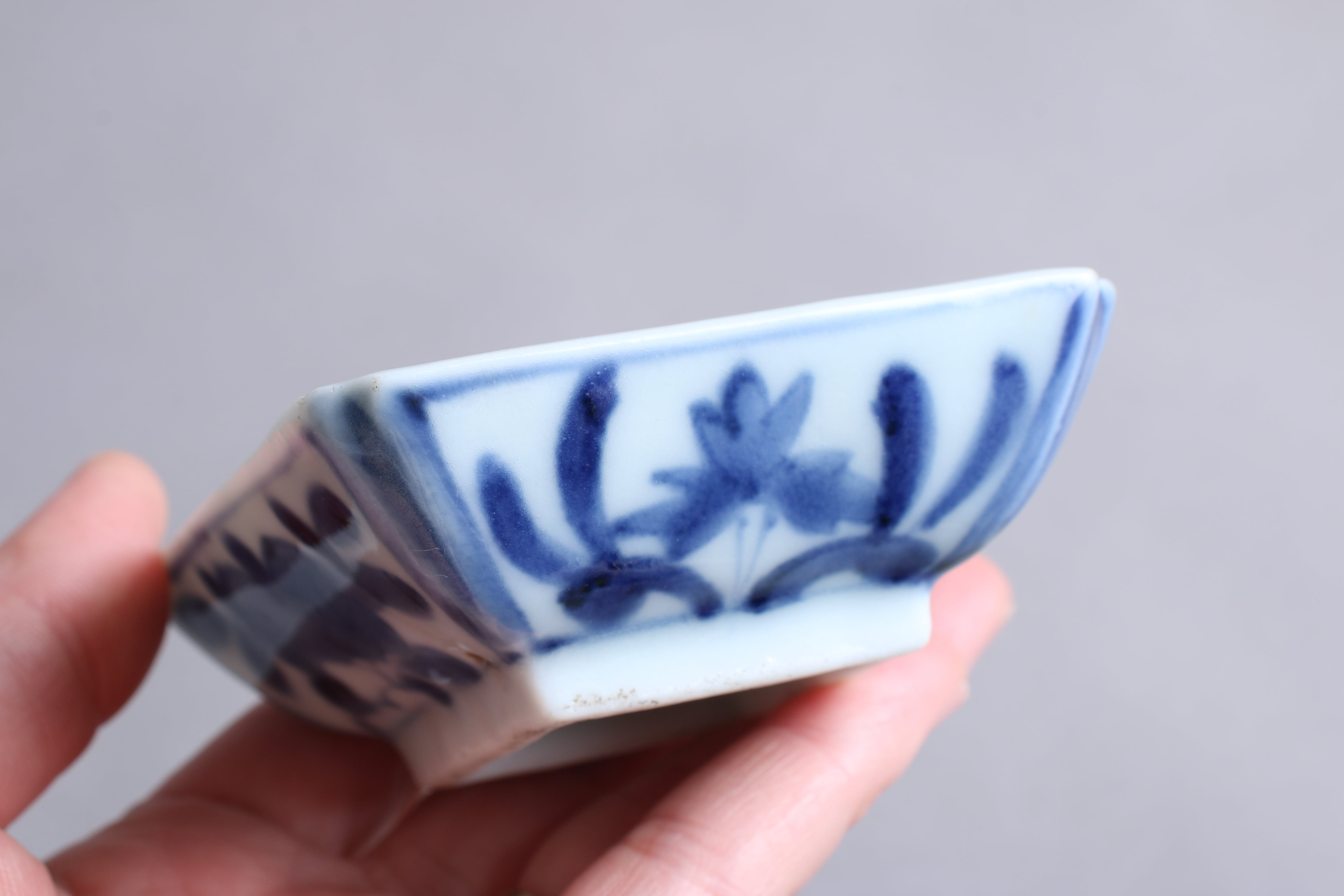 フチソゲ 染付 花文 隅切 豆皿 A アウトレット