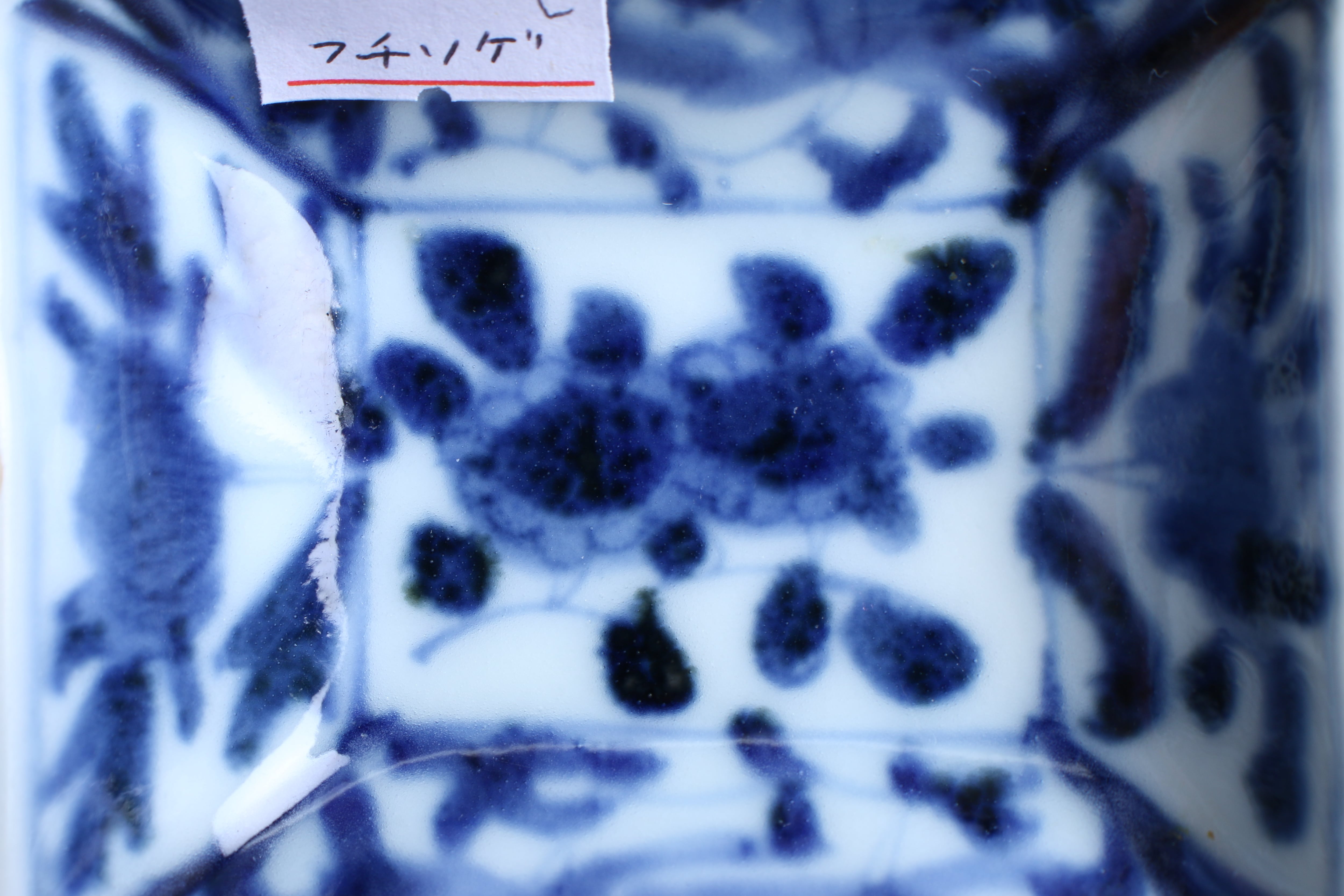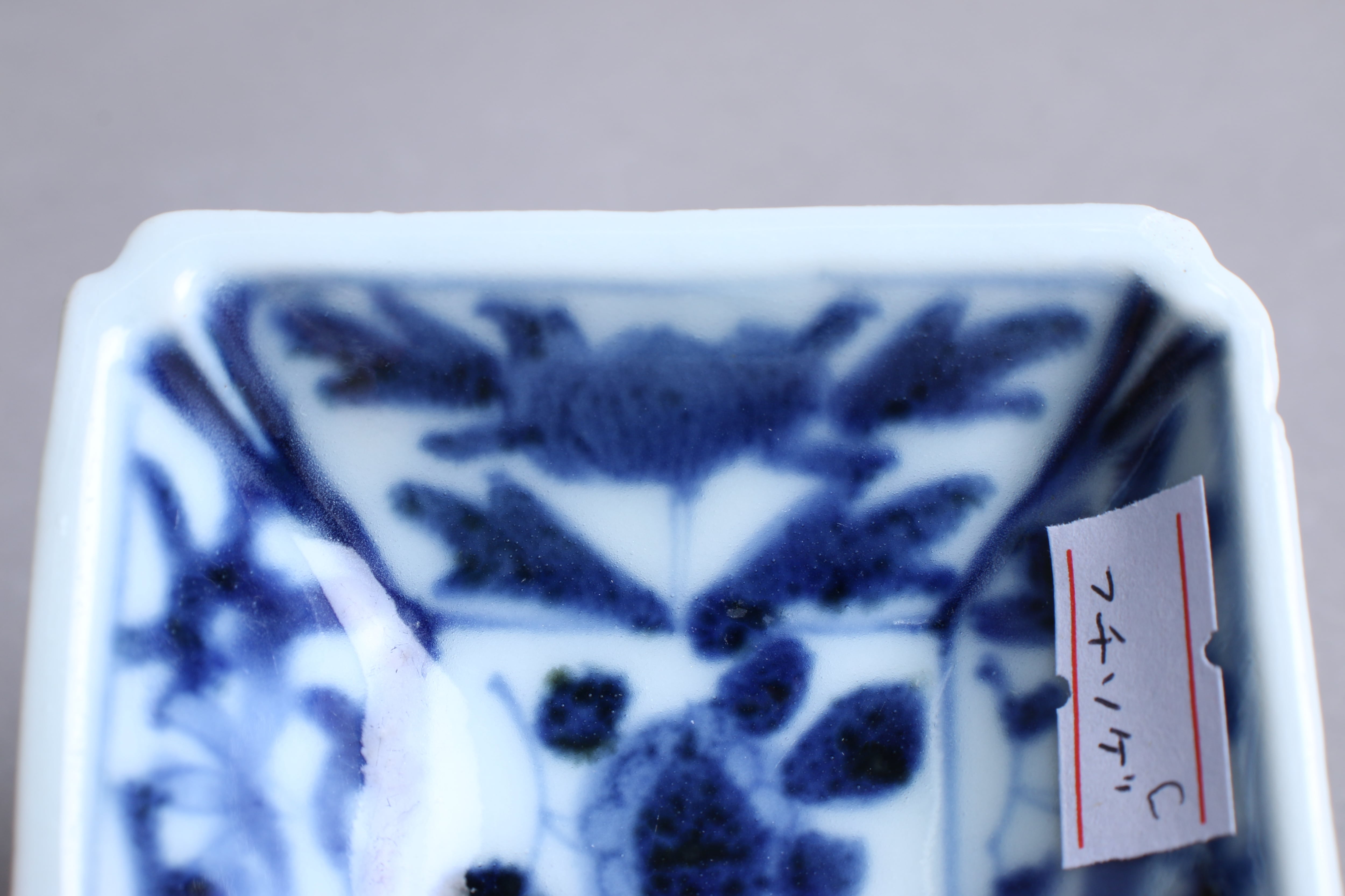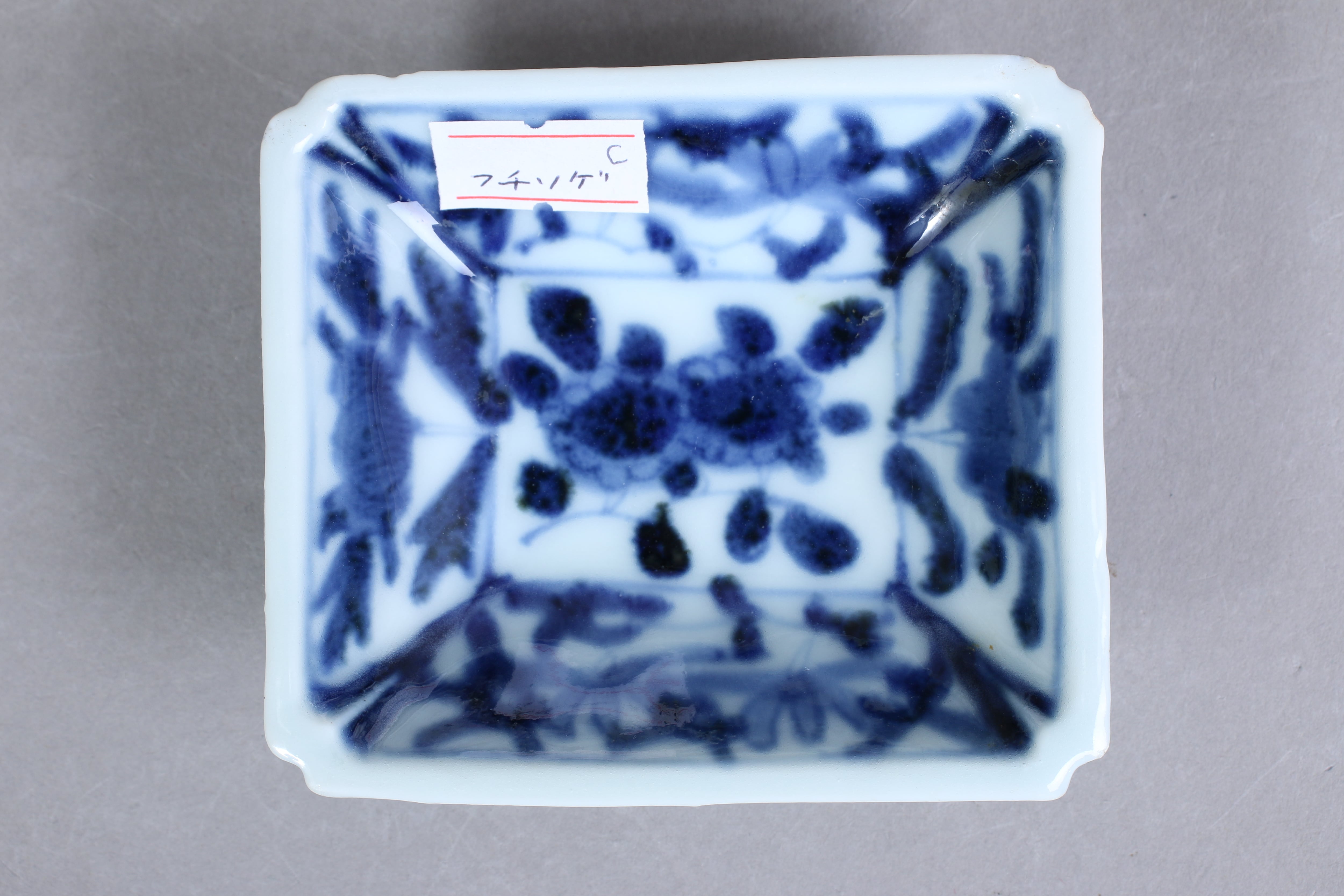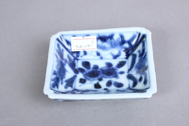 フチソゲ ×4 染付 花文 隅切 豆皿 C アウトレット