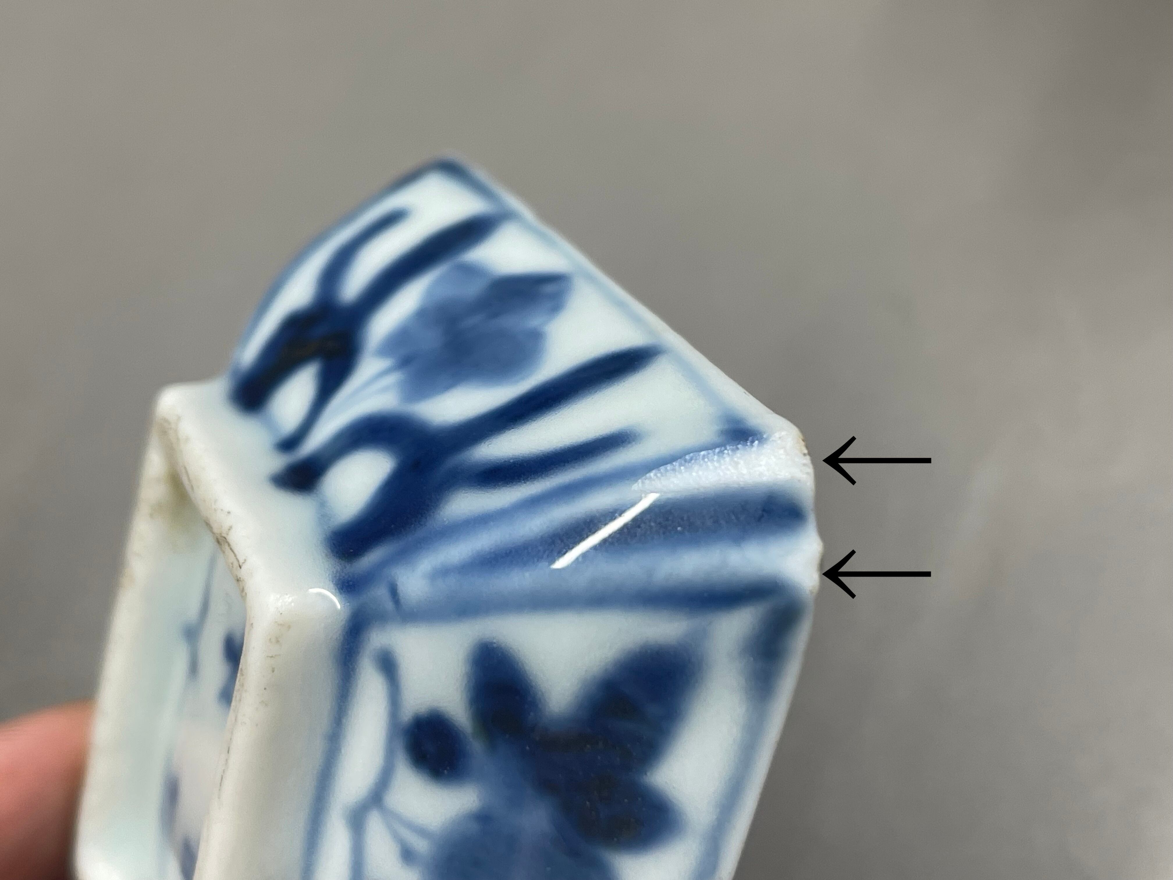 焼成時に窯の中でできる鉄分、くっつき、かまきず、ピンホール、経年による釉薬の薄れがございます。また、一枚一枚手描き、手作りですので器のサイズ(ミリ)、色味、描かれている文様の大きさなど個体差があり、ひとつとして同じものはございません。そういった時代感、個性をご理解いただき、楽しんでくだされば幸いです。電子レンジや食器洗い乾燥機のご使用はお控えください。