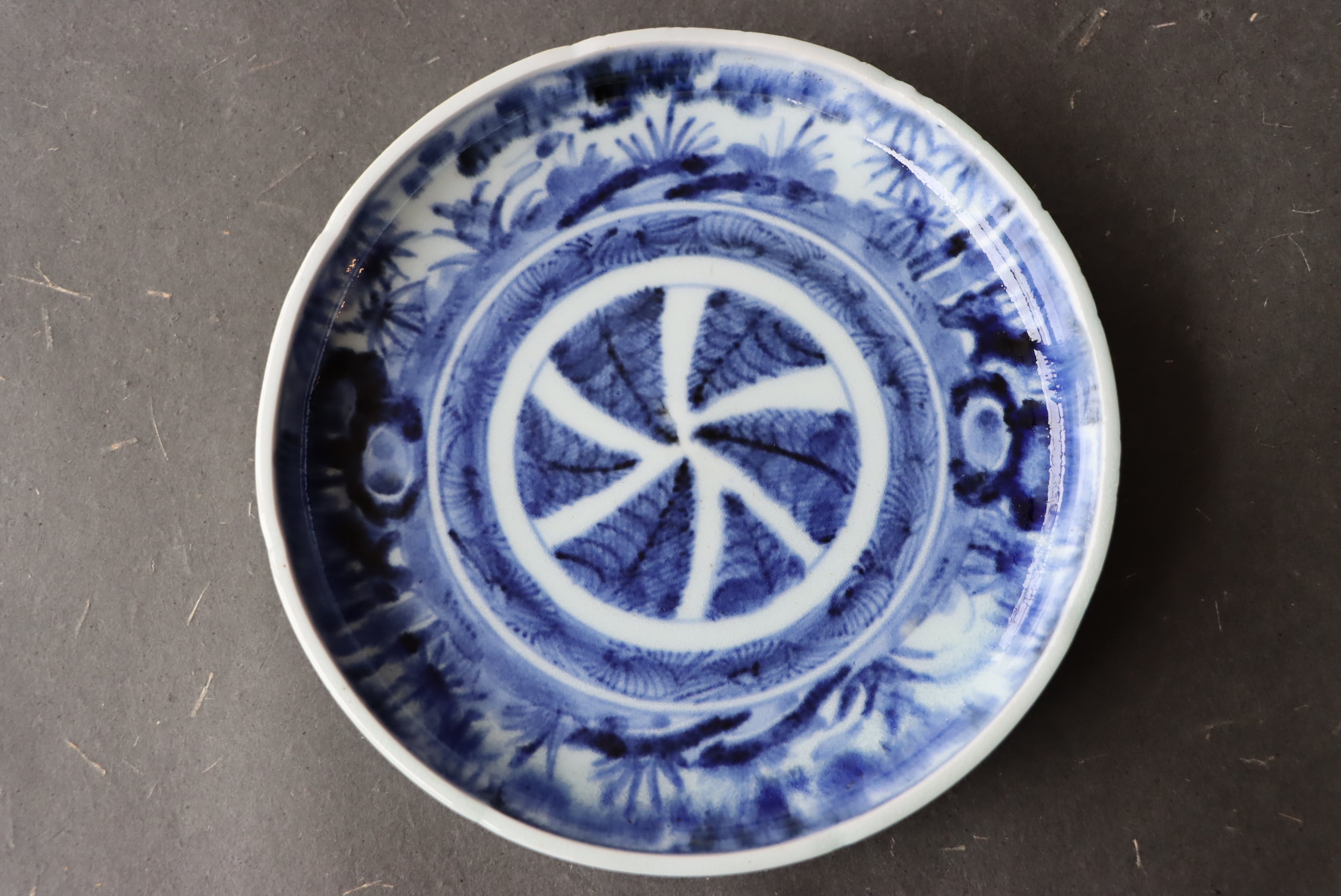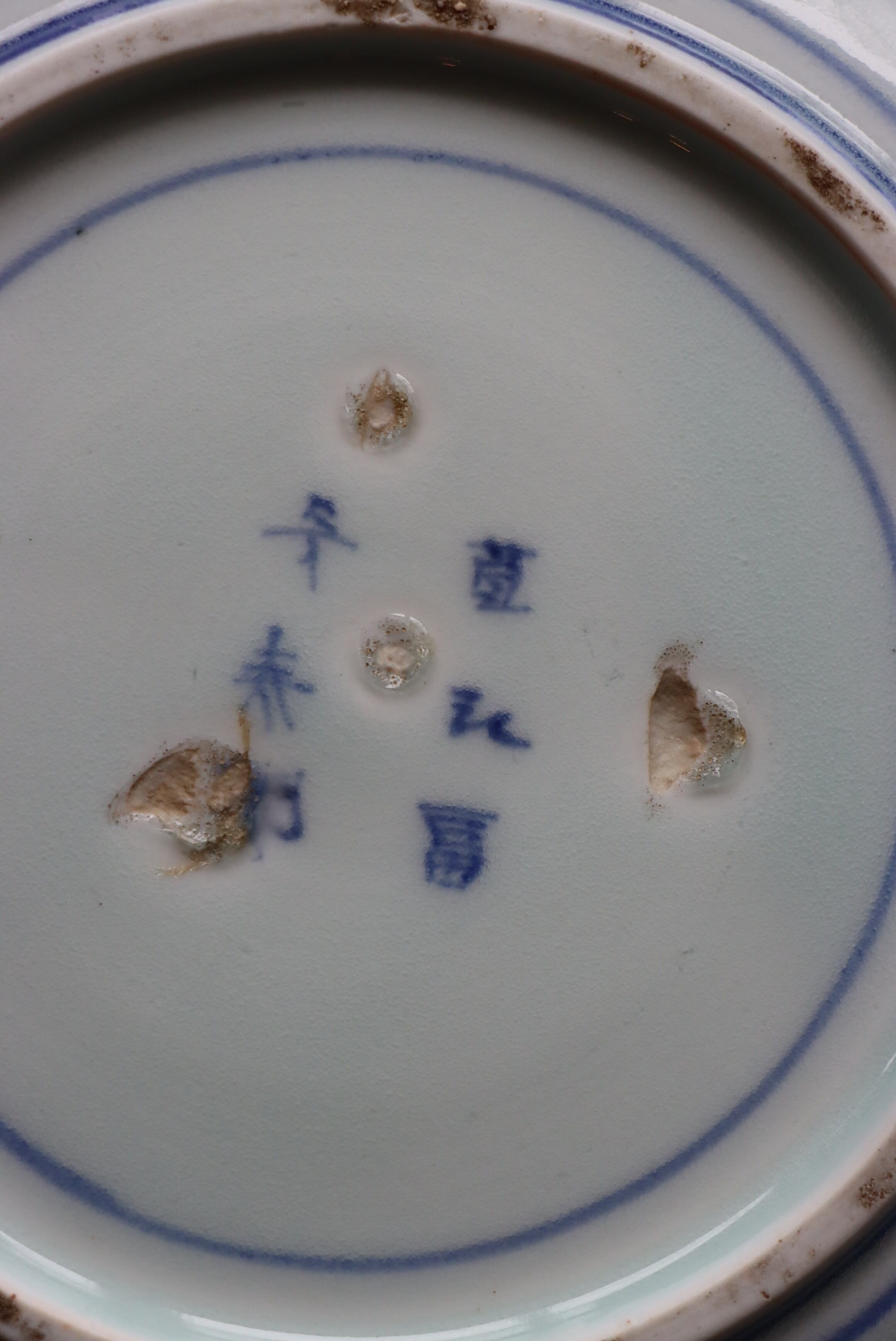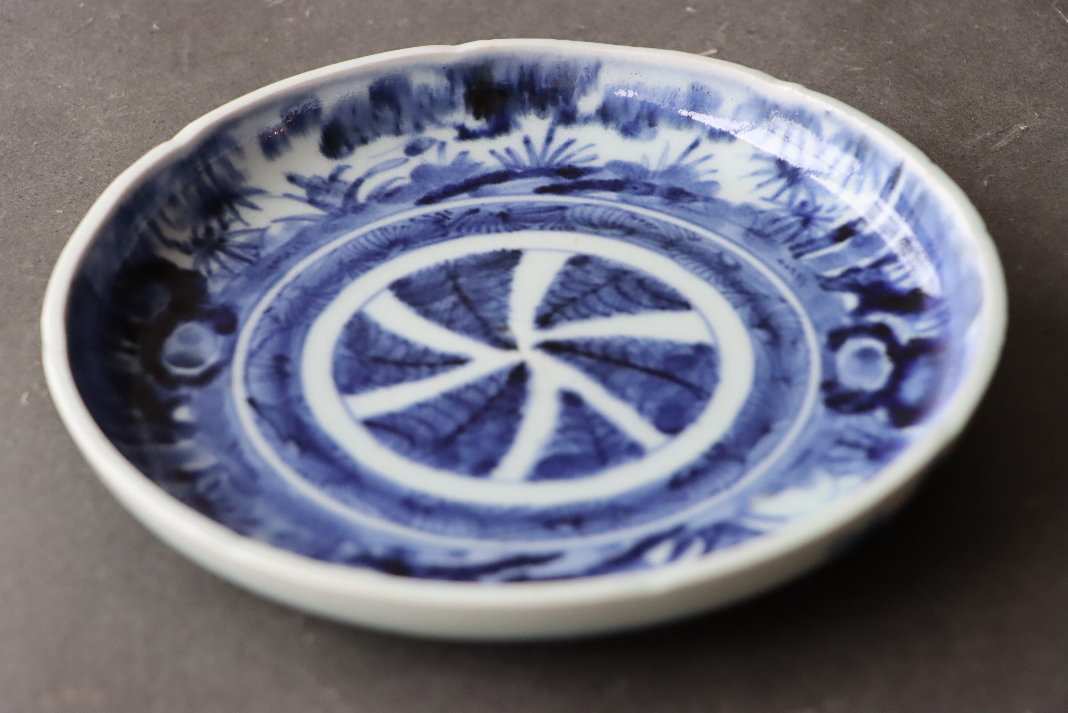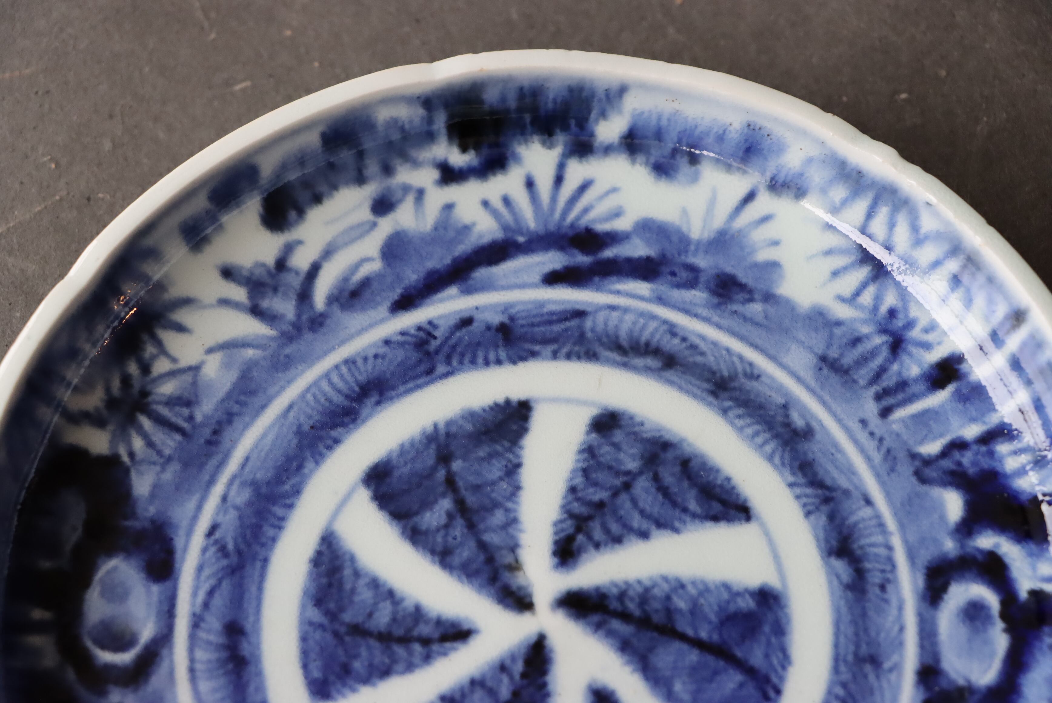 【Old Imari blue and white medium size plate with bamboo and flower design.】