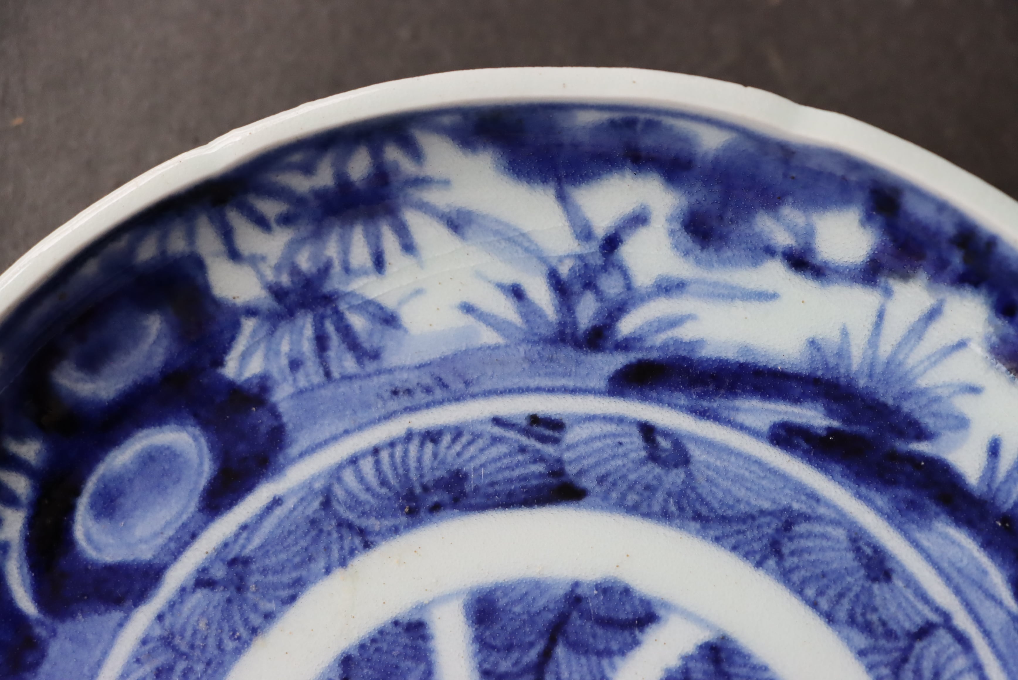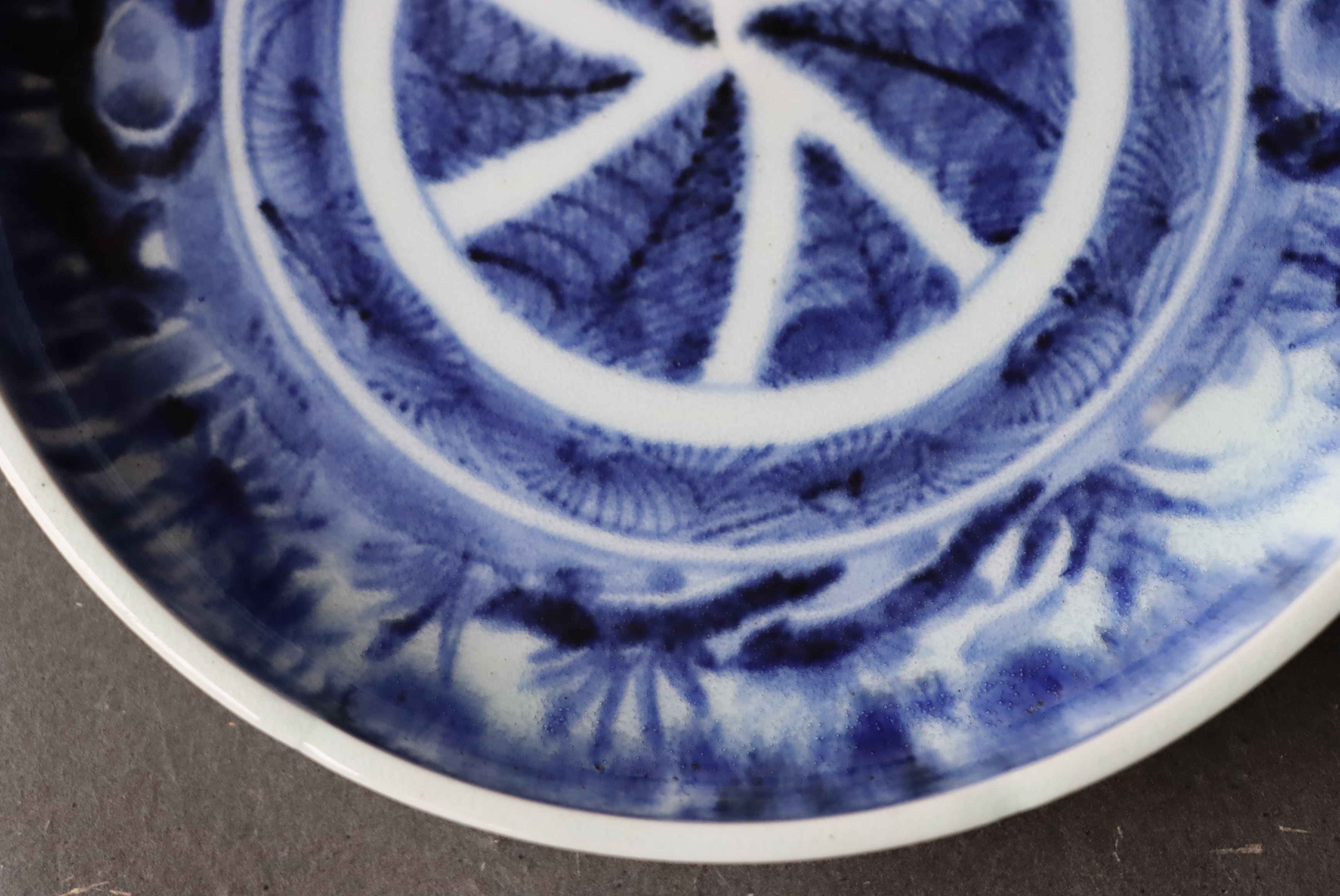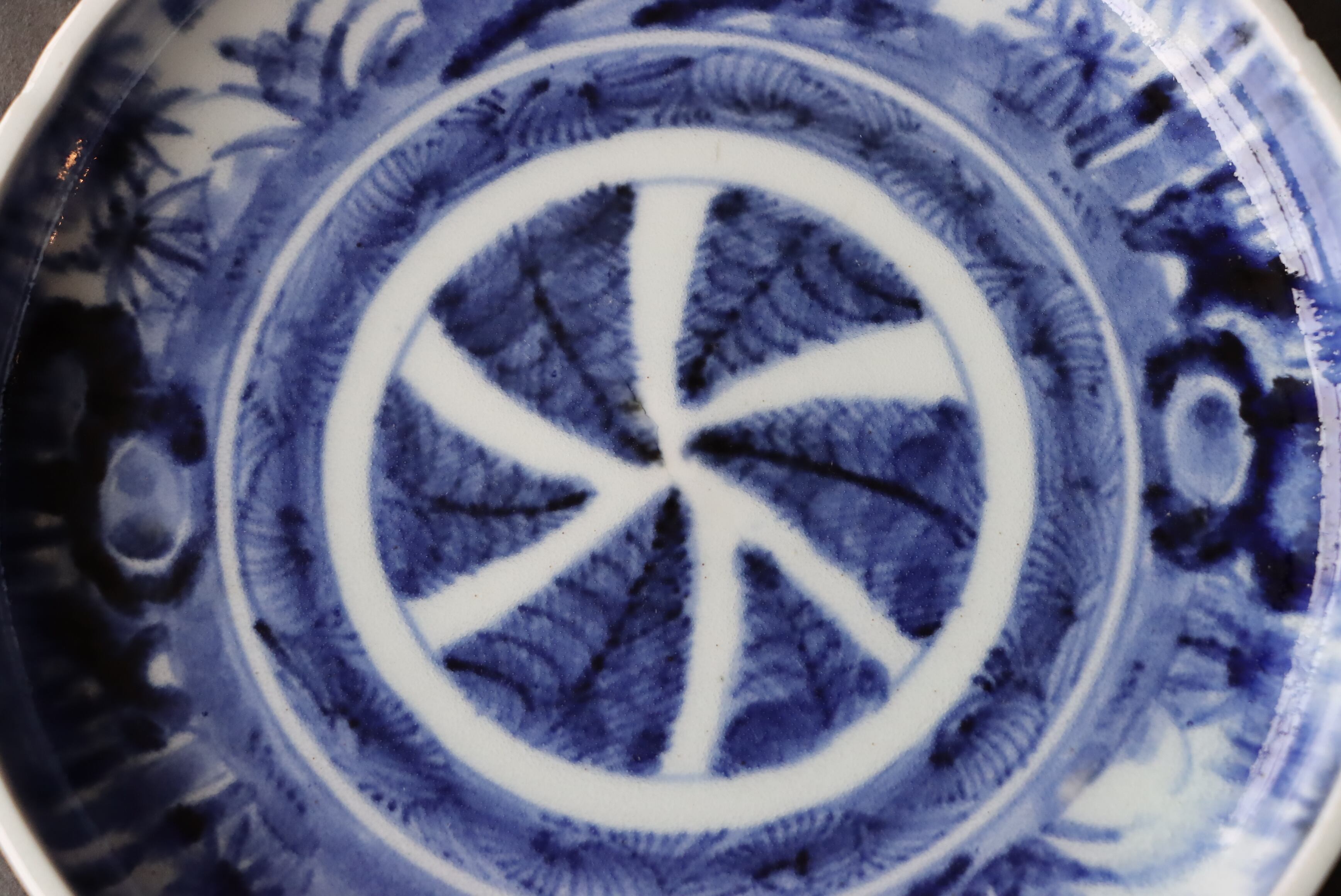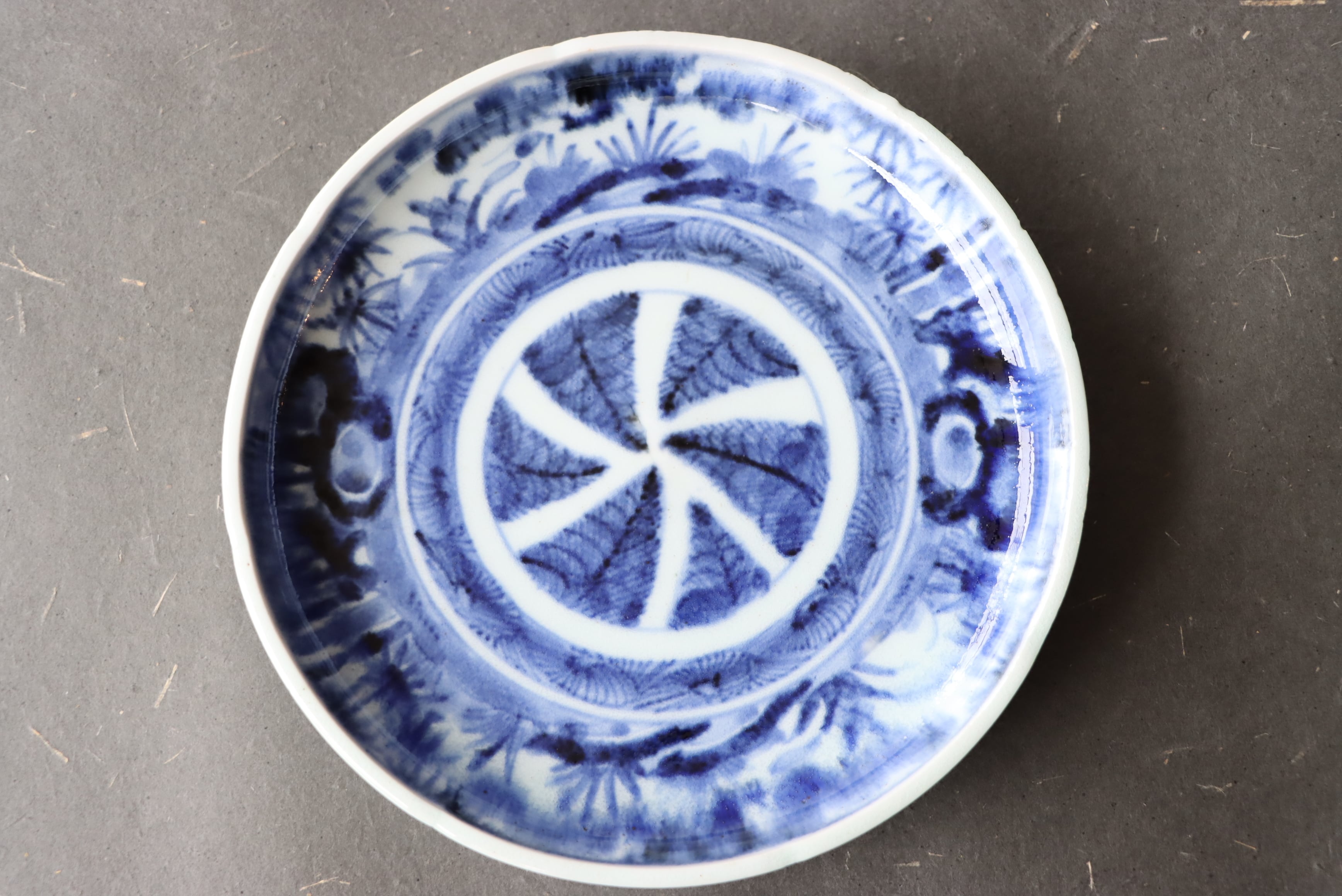 【Old Imari blue and white medium size plate with bamboo and flower design.】