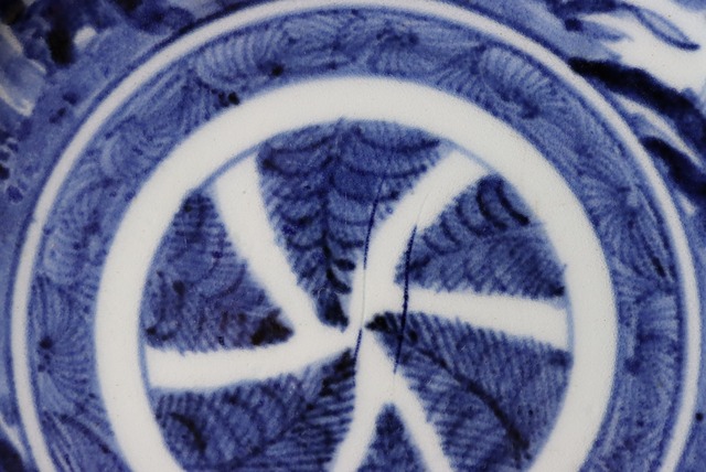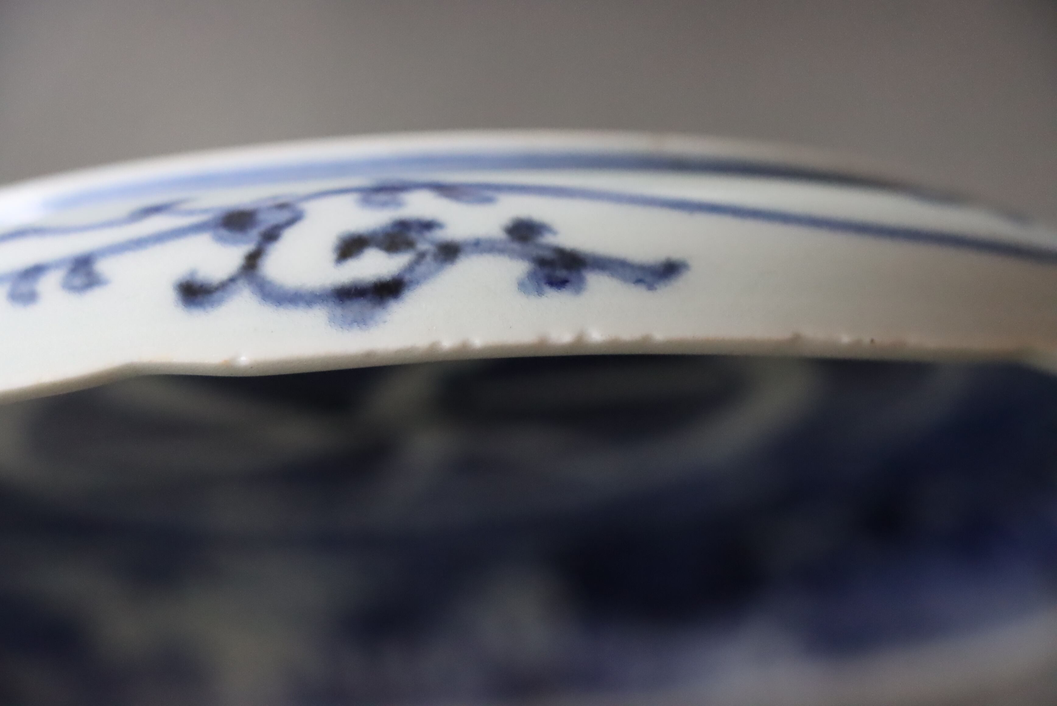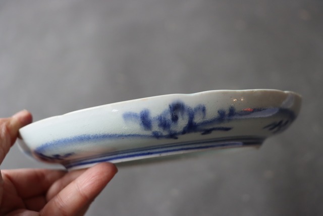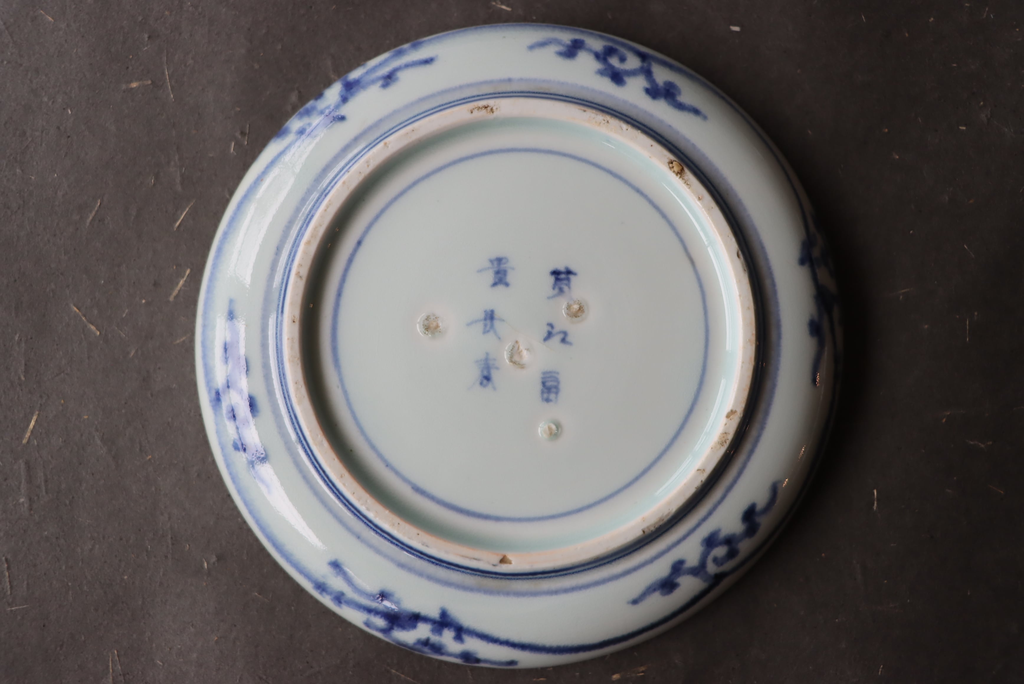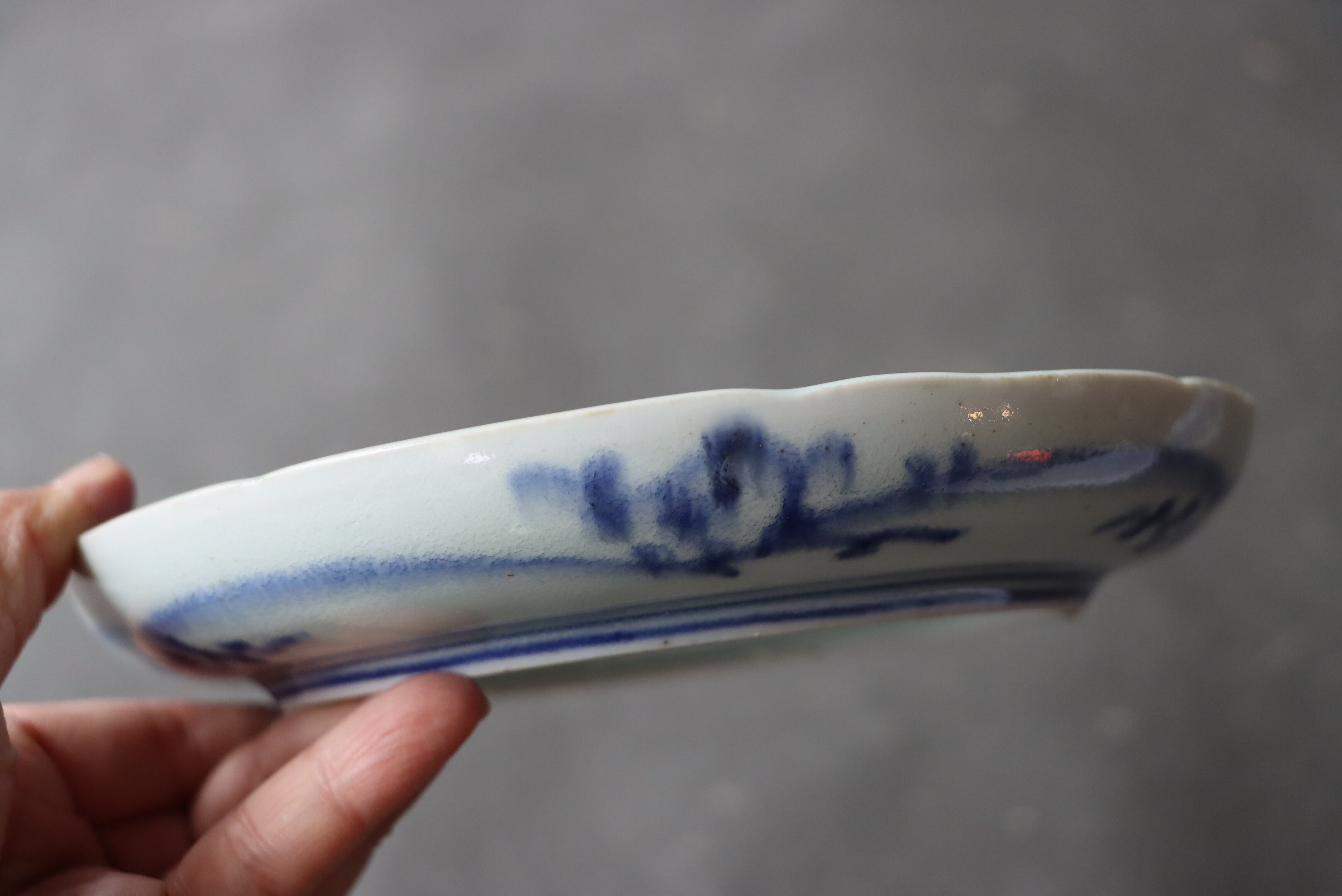 【Old Imari blue and white medium size plate with bamboo and flower design.】