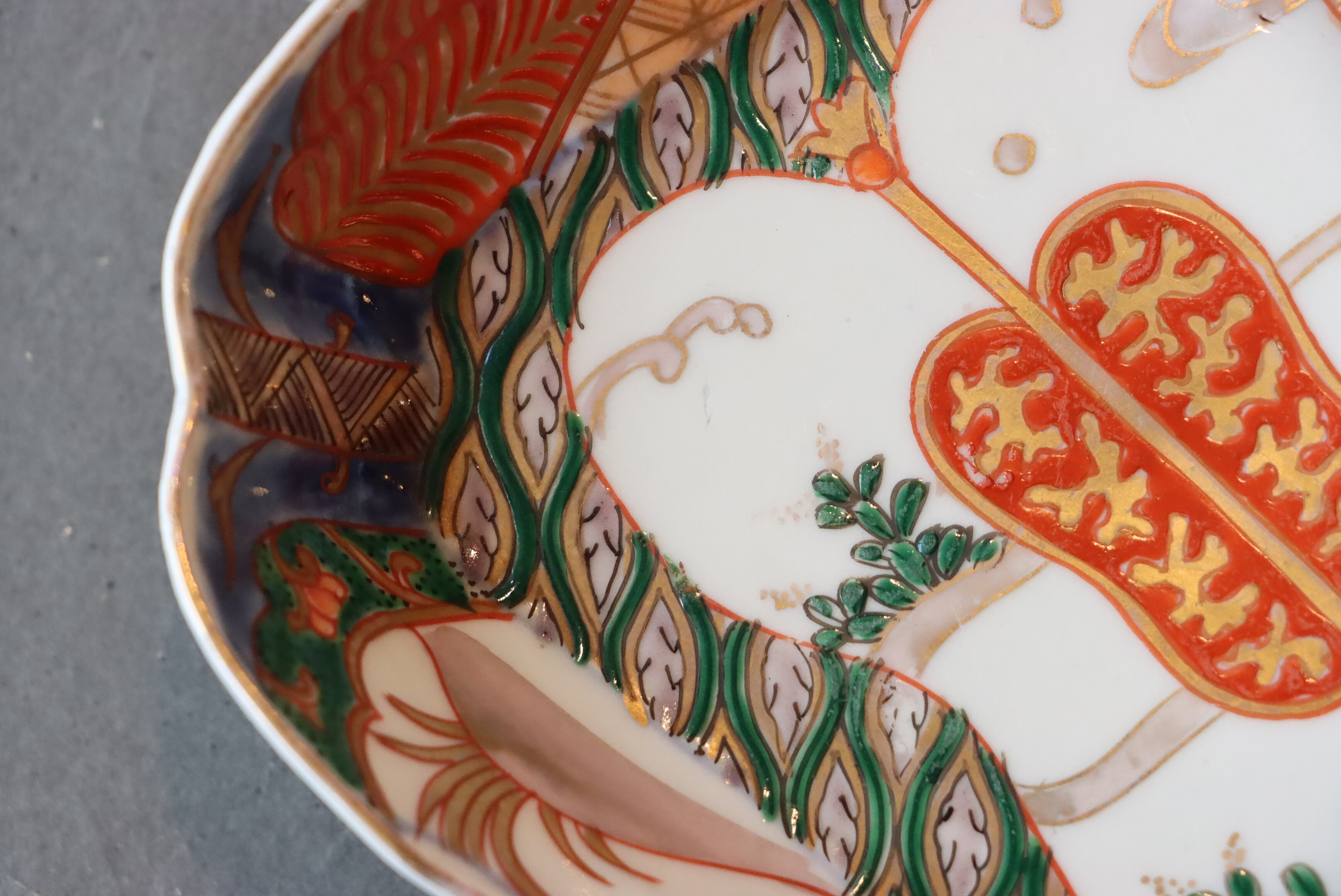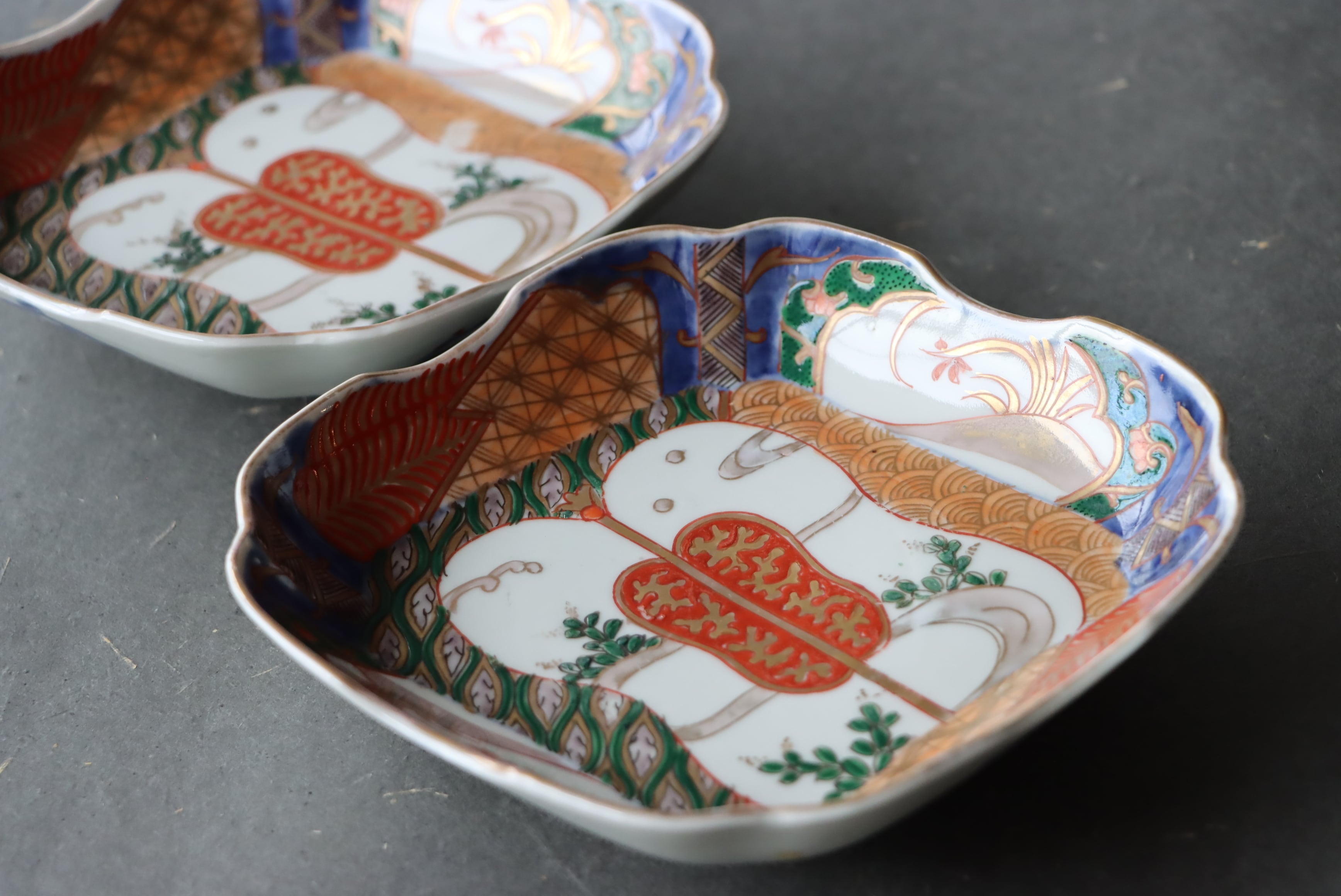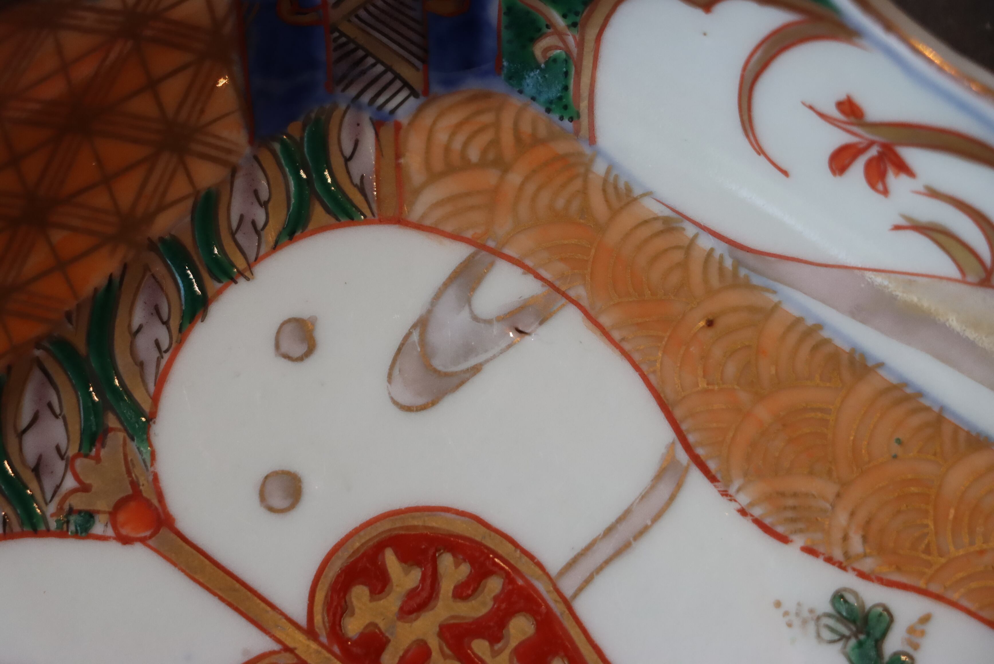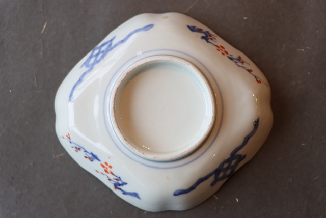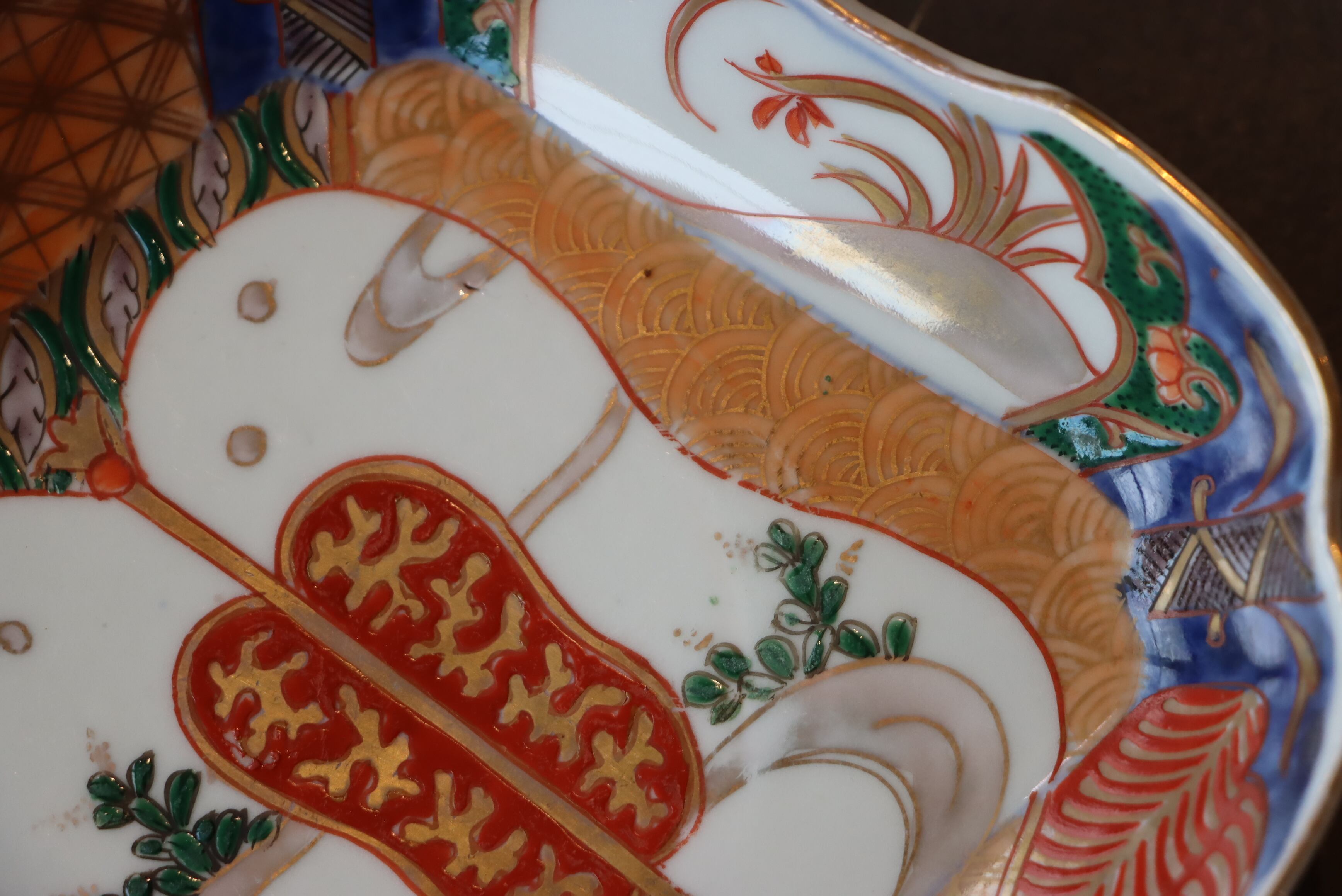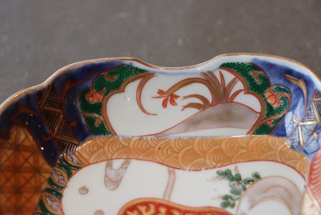 【Imari diamond shaped plate with military leader's fan design in overglaze enamels.】