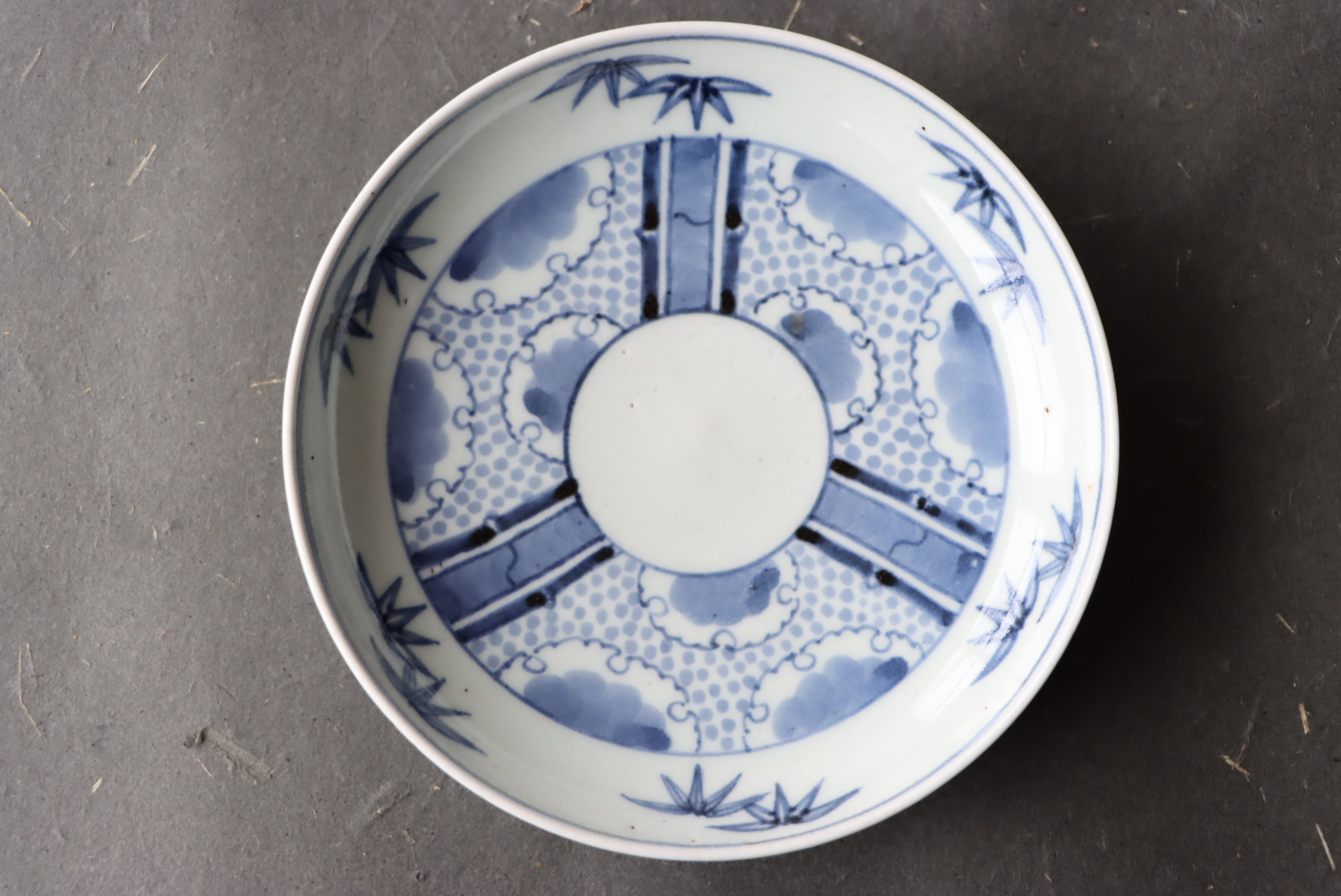 古伊万里 染付 雪輪竹文 中皿 六寸