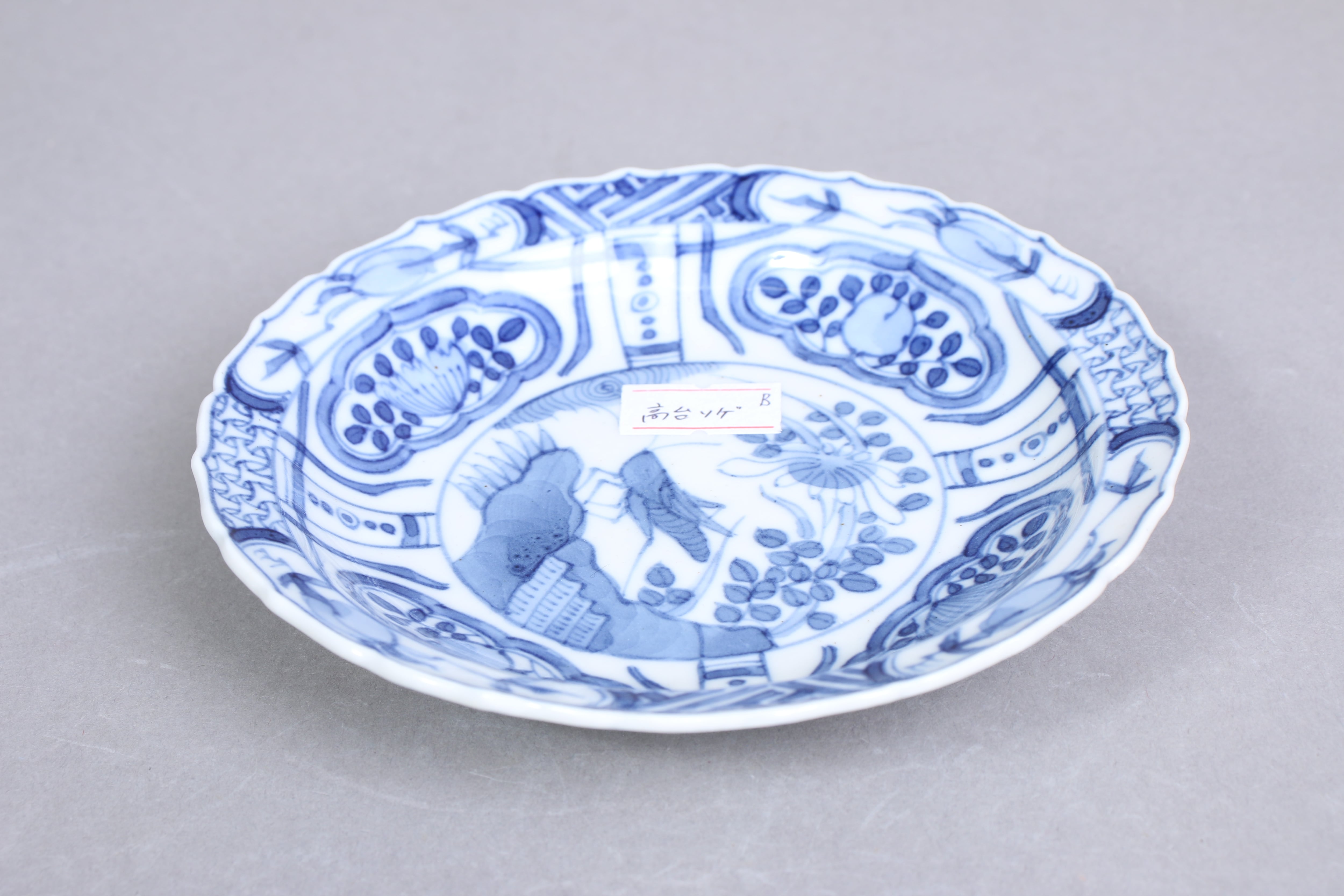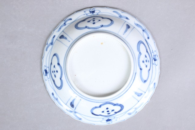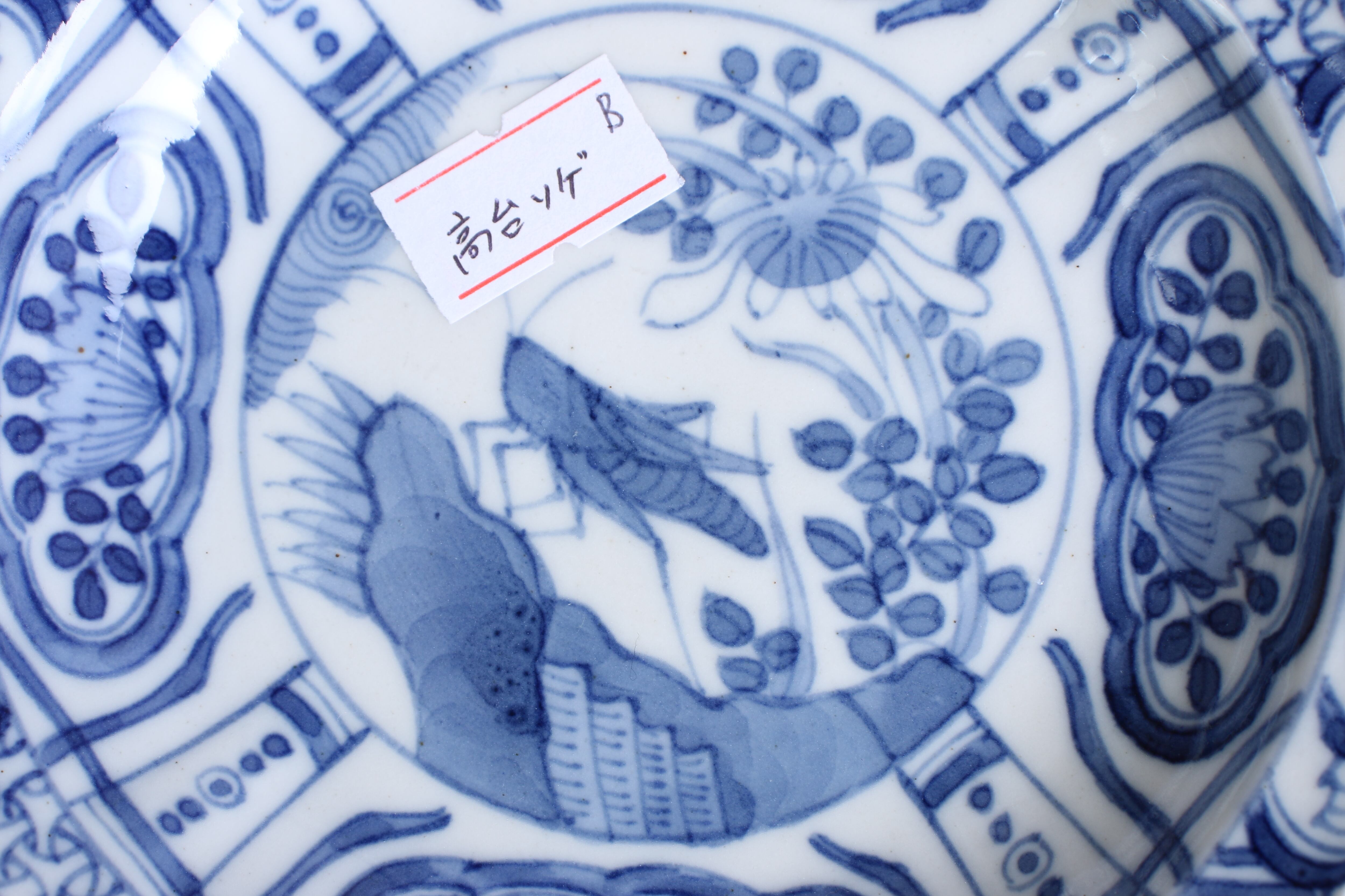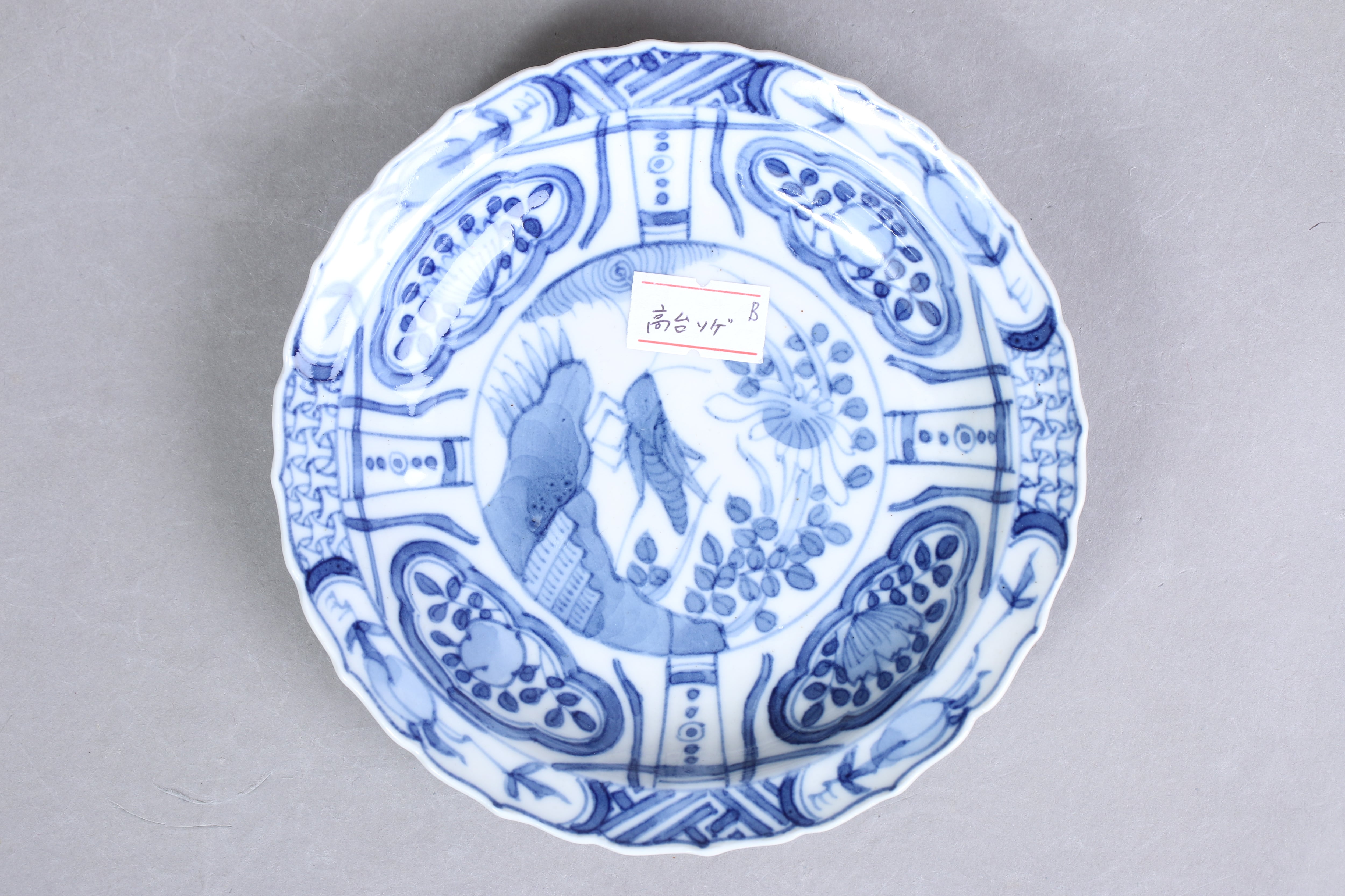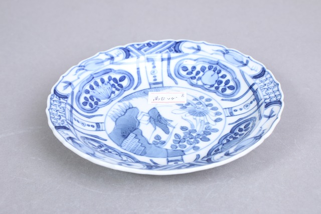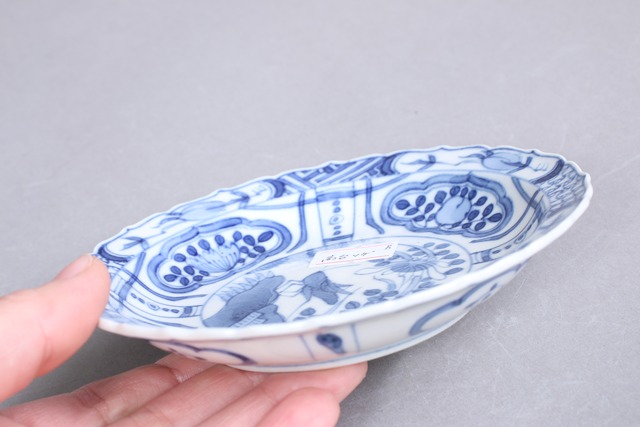 高台ソゲ 九谷焼 染付 芙蓉手 バッタ文 小皿 B アウトレット