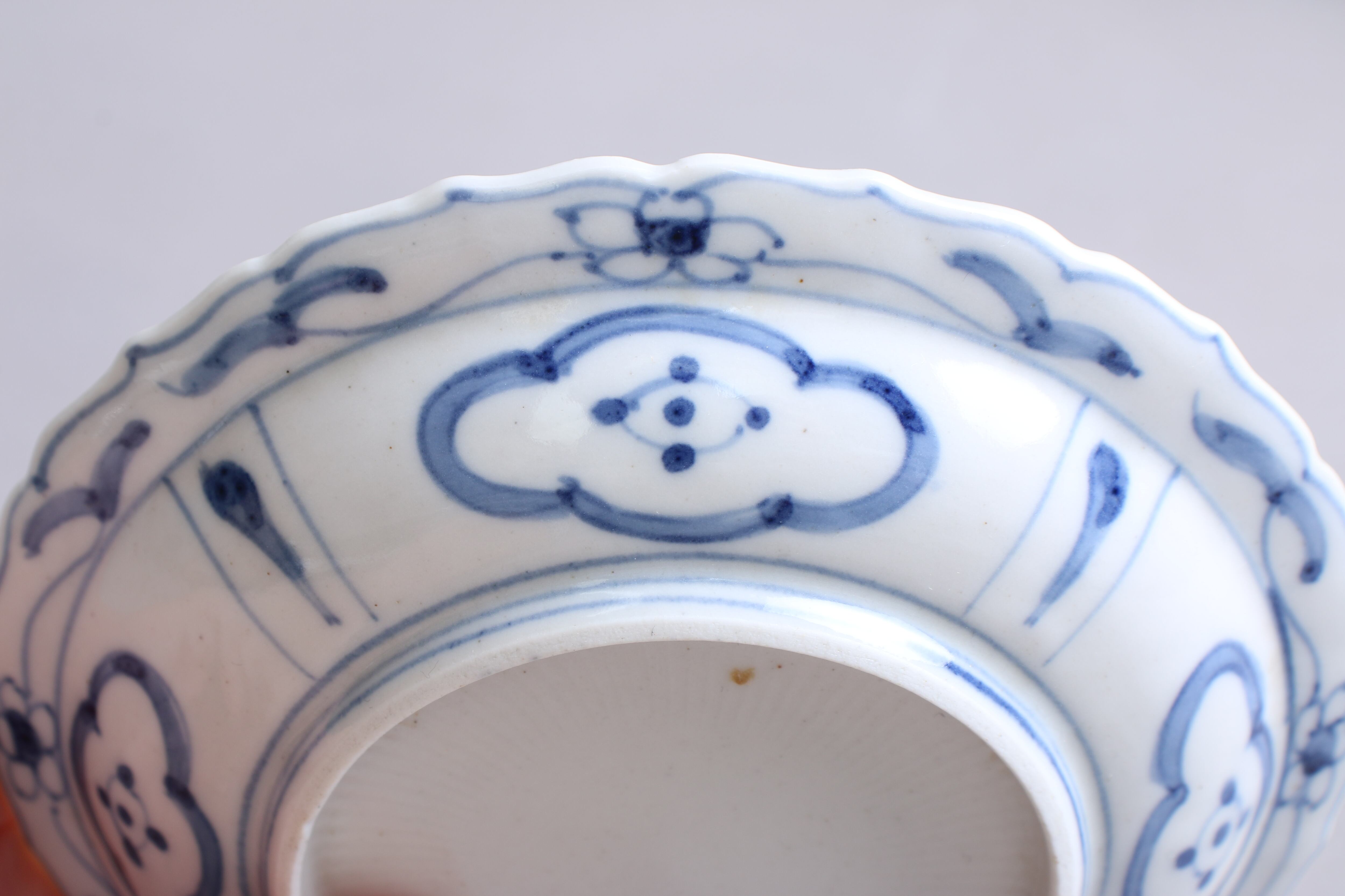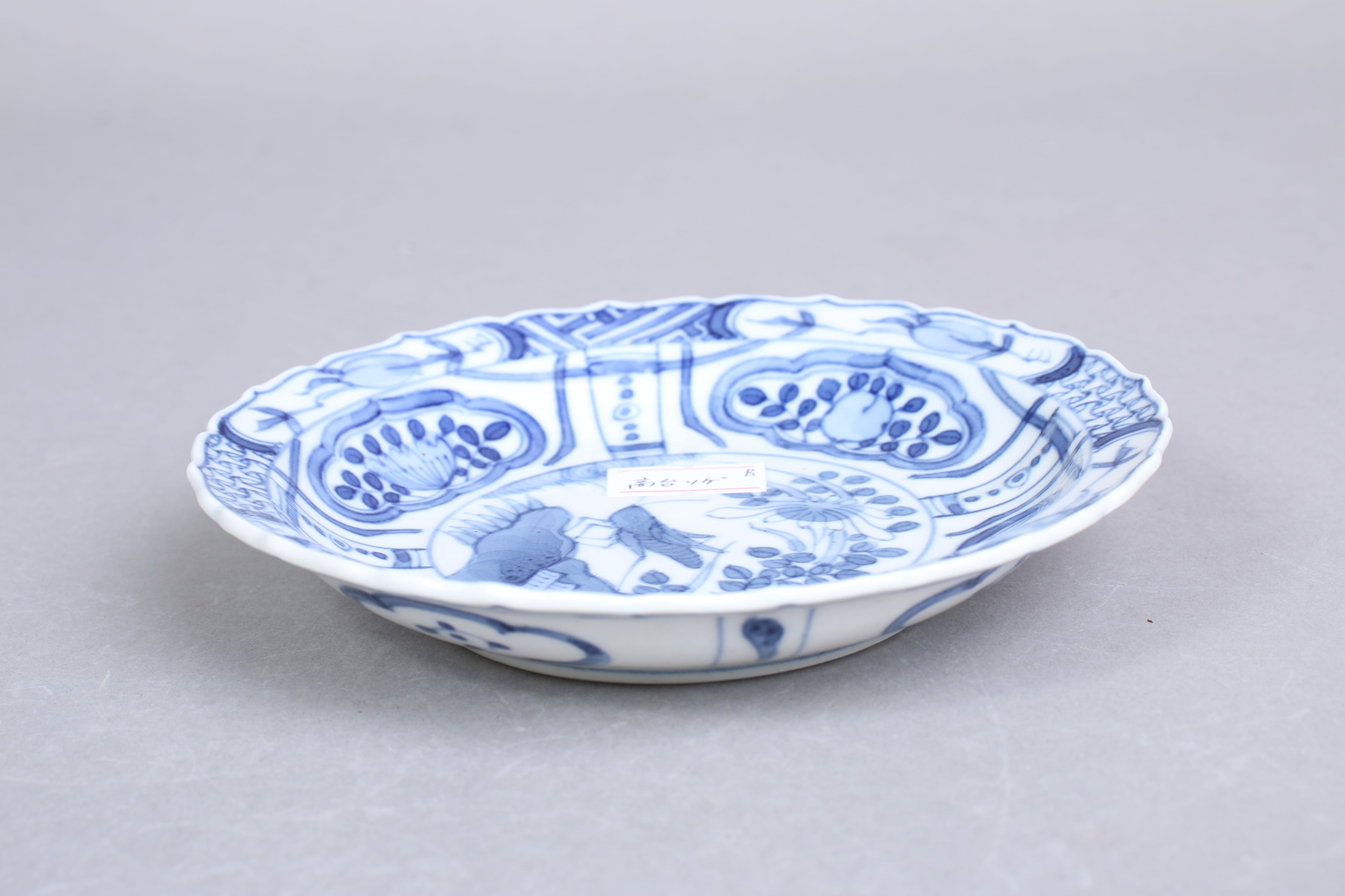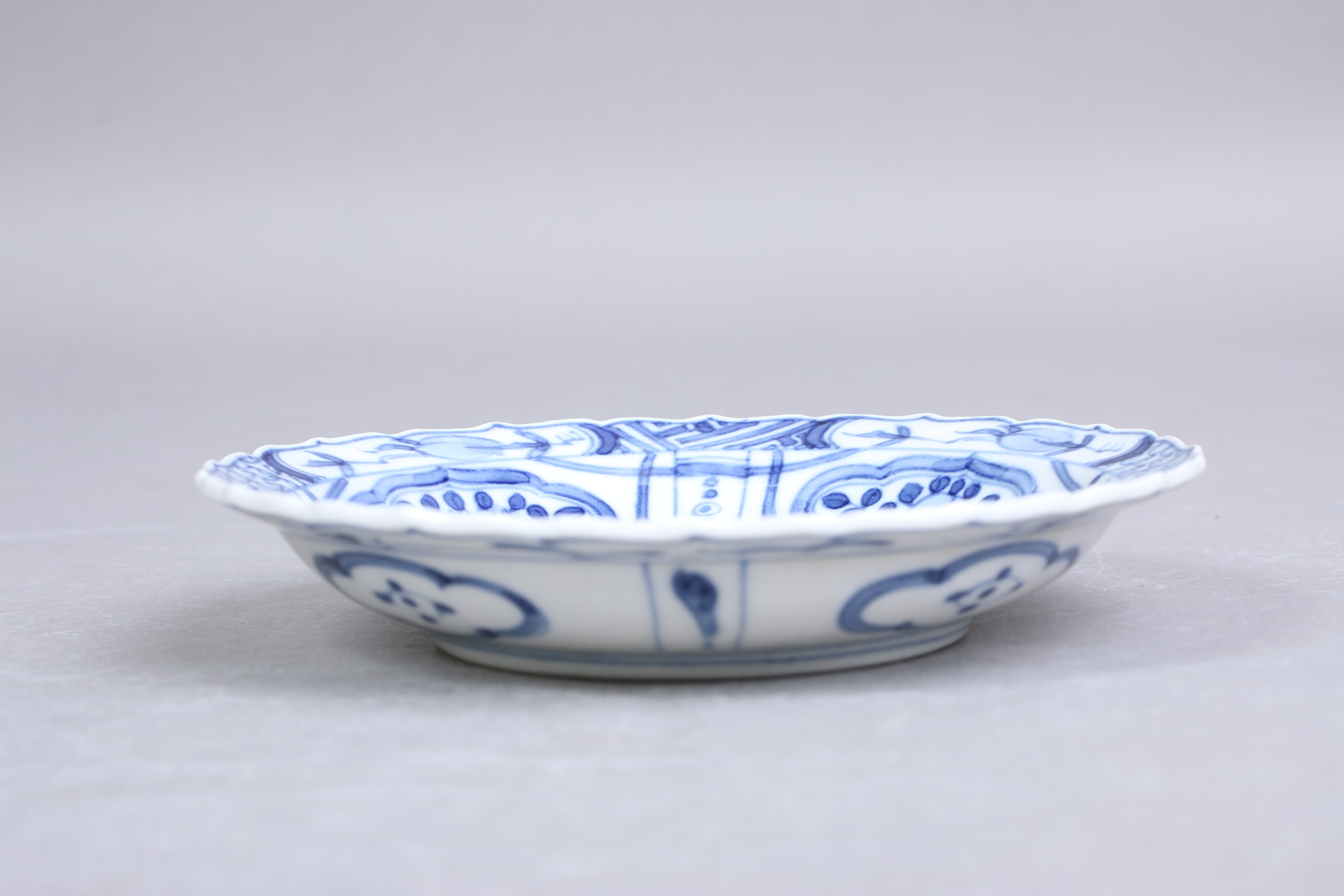 高台ソゲ 九谷焼 染付 芙蓉手 バッタ文 小皿 B アウトレット