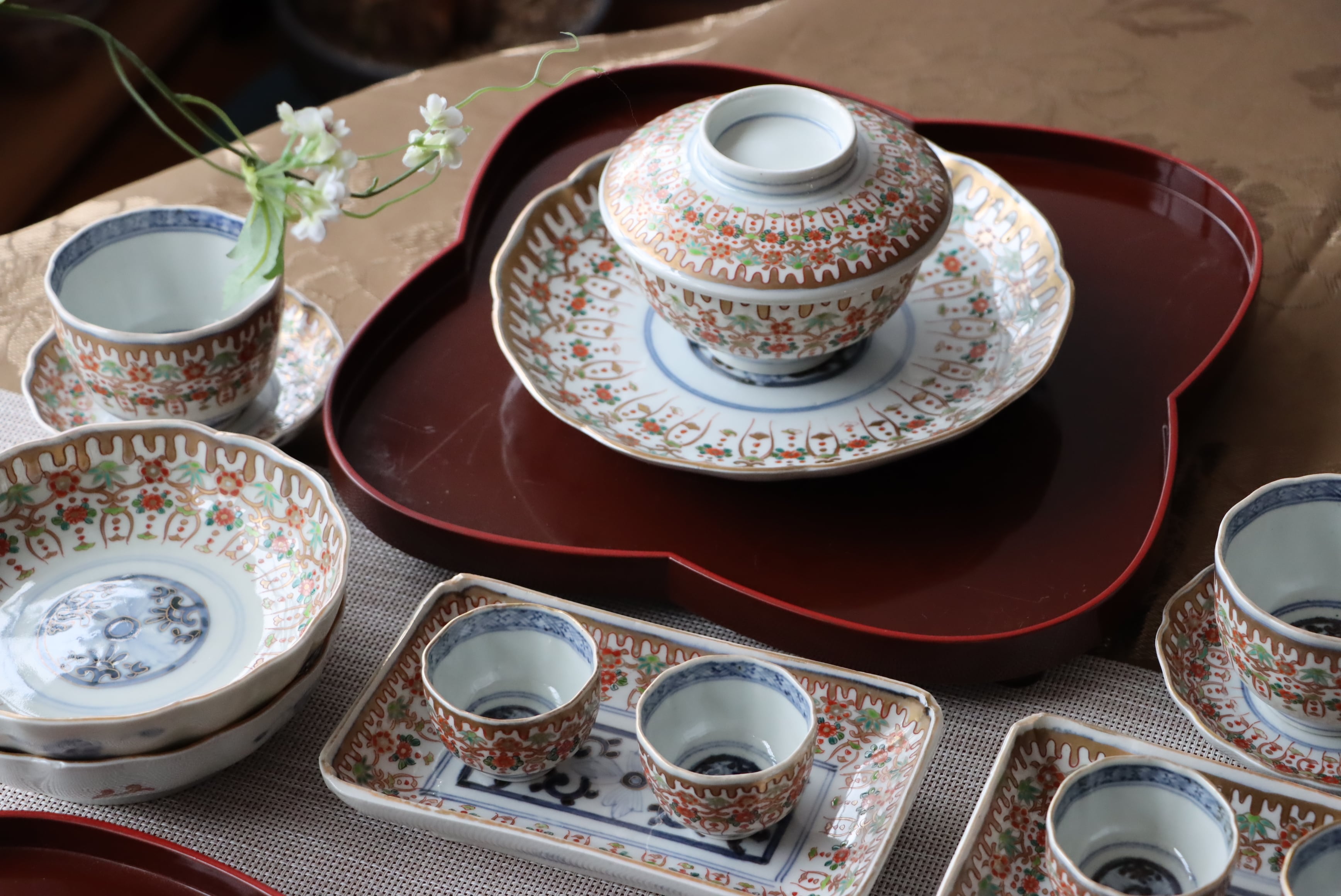 中皿、長皿、膾皿、蓋茶碗、蒸し茶碗、小皿、湯呑、猪口。