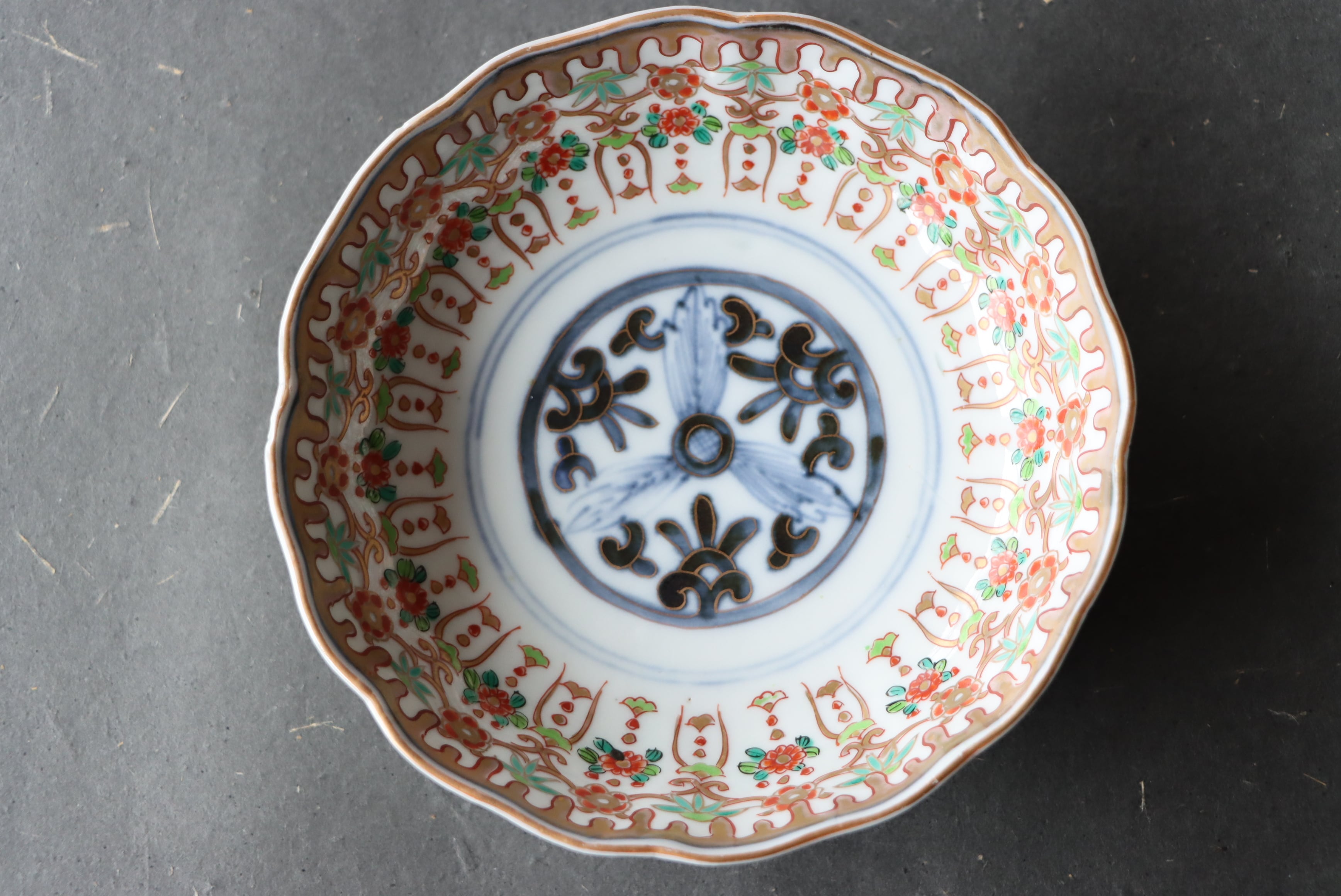 伊万里焼 色絵 壺垂花瓔珞文 膾皿 通りもの/Imari "Namasu" bowl