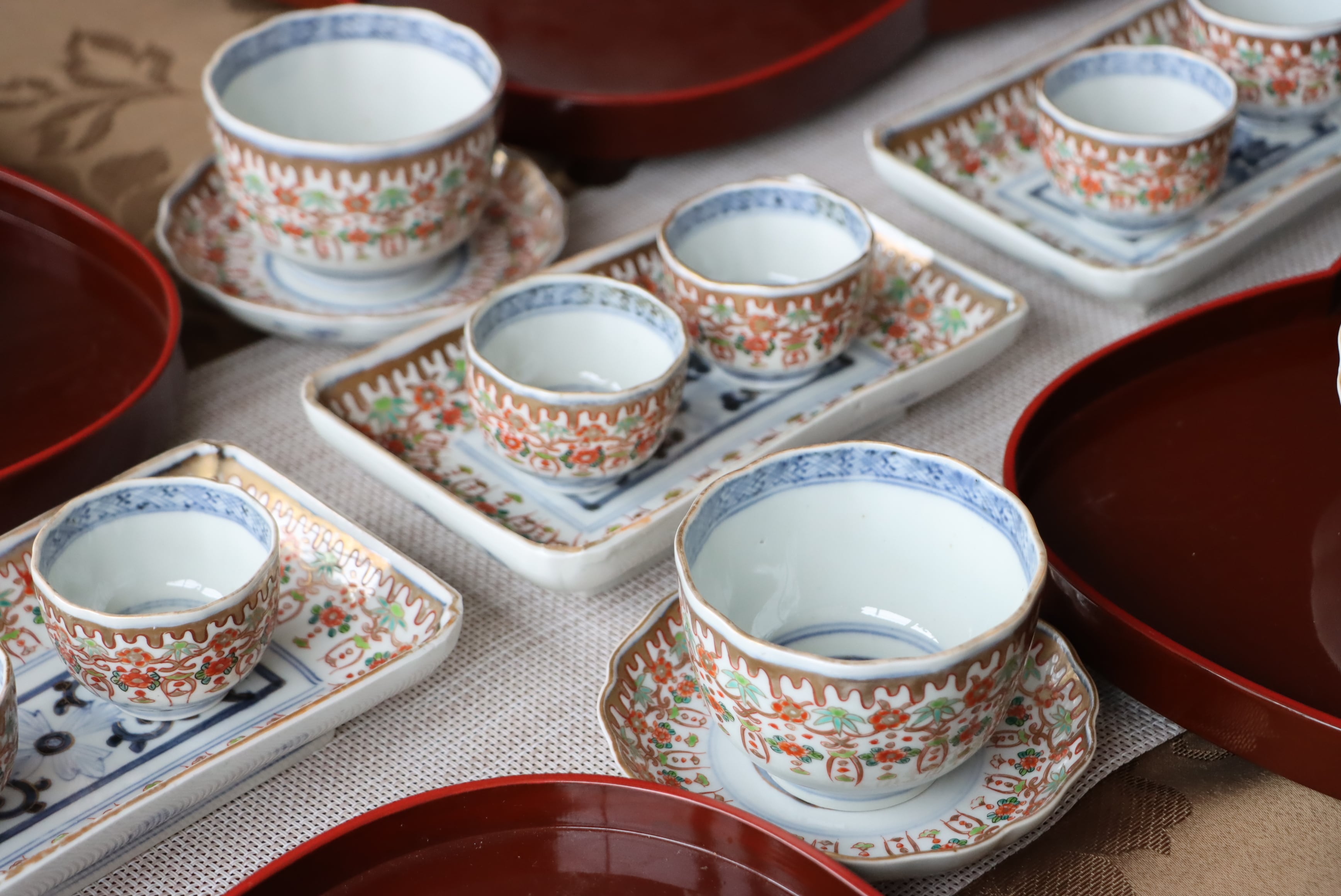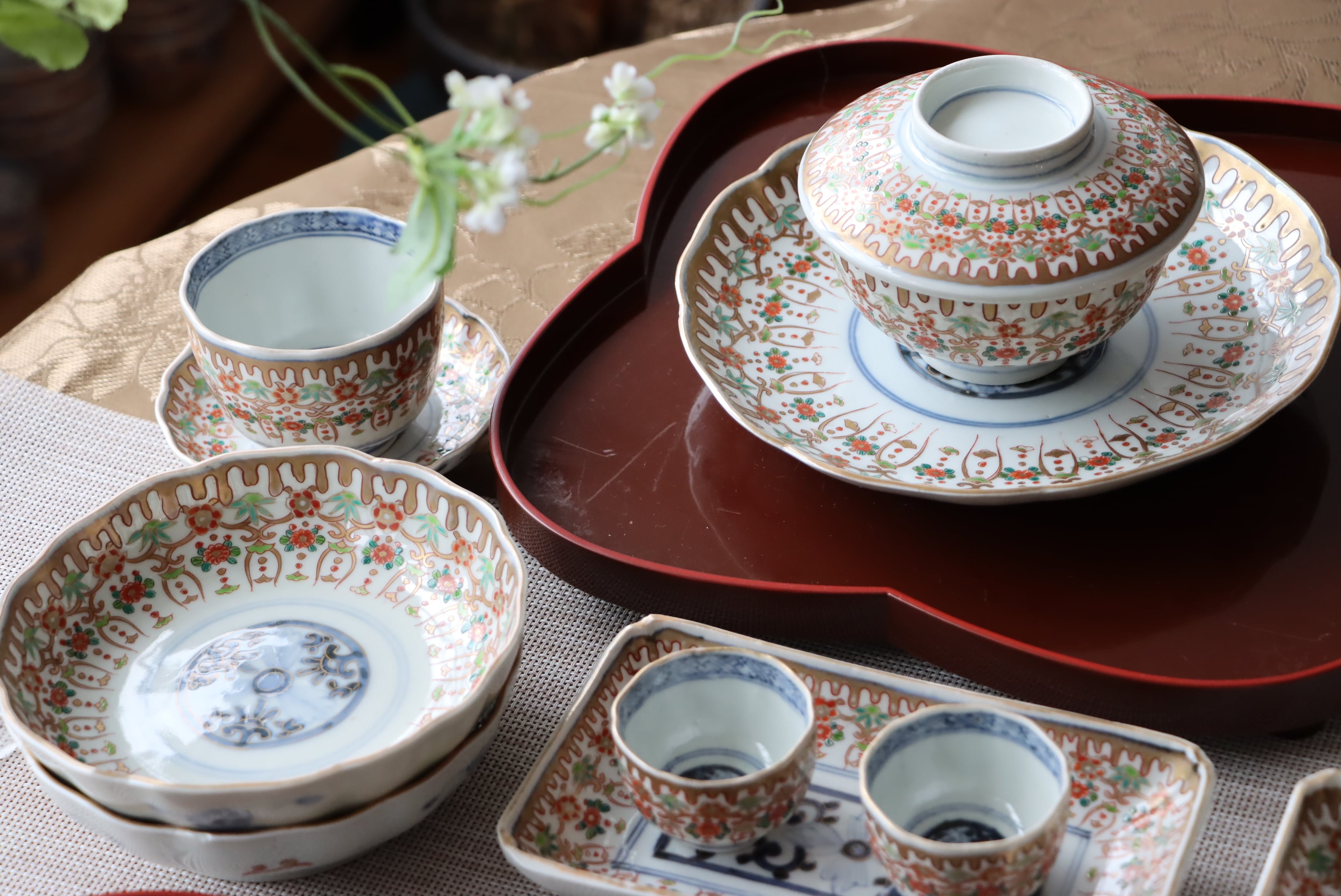 中皿、長皿、膾皿、蓋茶碗、蒸し茶碗、小皿、湯呑、猪口。