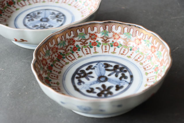 縁には金彩をあしらった壺垂文をはじめ松梅文、花瓔珞文が丁寧に描かれとても華やかな通りものです✨