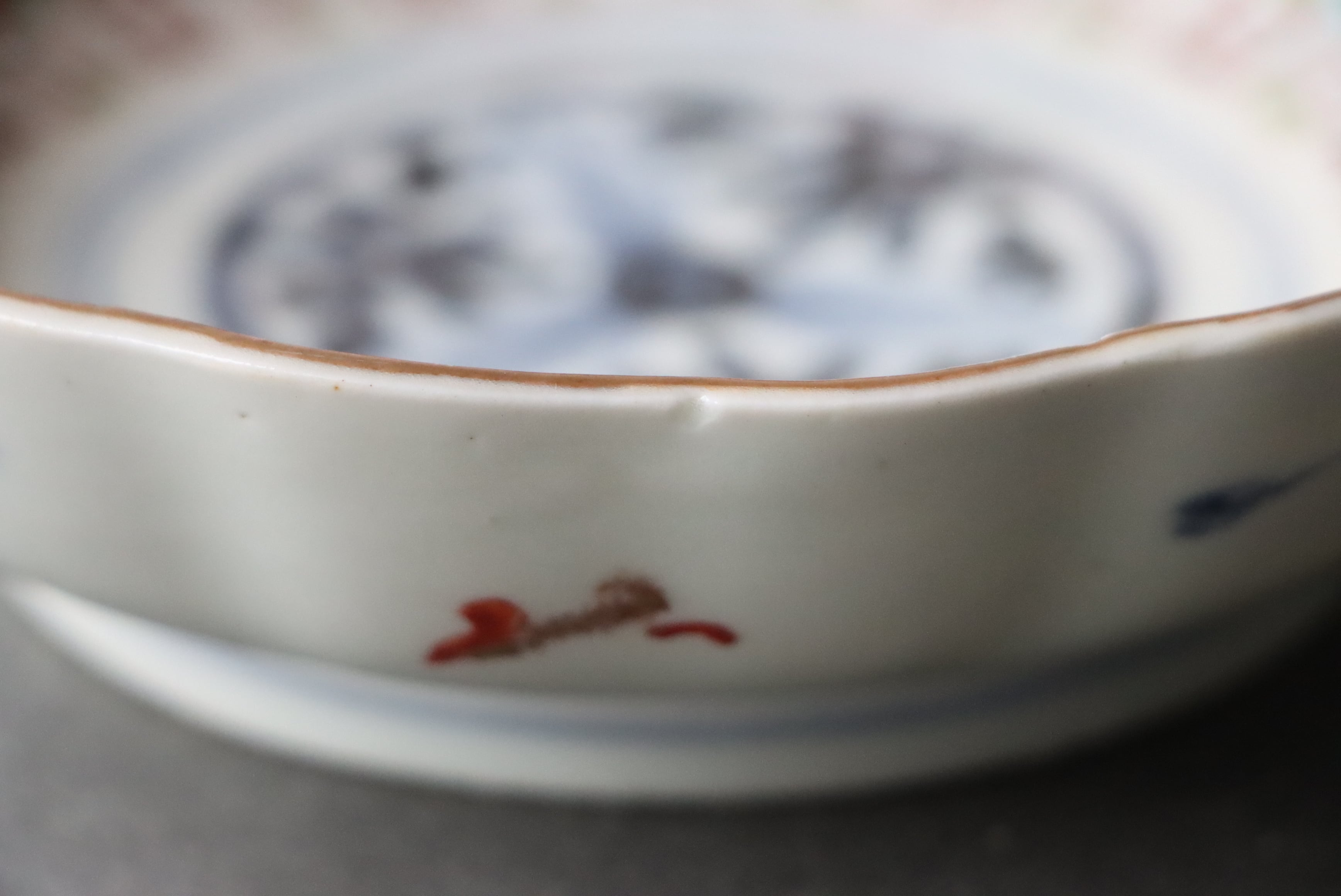 焼成時に窯の中でできる鉄分、くっつき、かまきず、ピンホール、経年による釉薬の薄れがございます。また、一枚一枚手描き、手作りですので器のサイズ(ミリ)、色味、描かれている文様の大きさなど個体差があり、ひとつとして同じものはございません。そういった時代感、個性をご理解いただき、楽しんでくだされば幸いです。電子レンジや食器洗い乾燥機のご使用はお控えください。