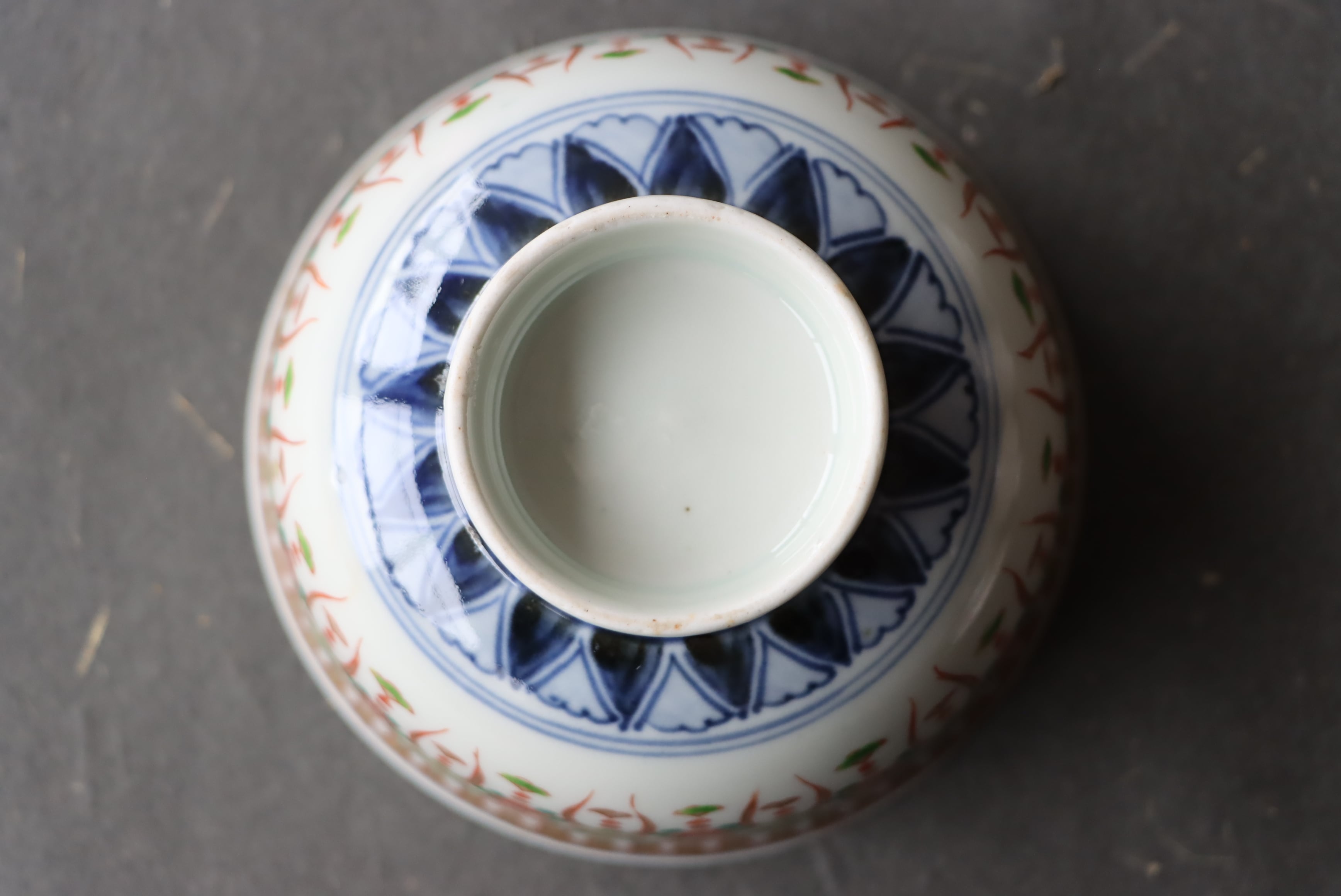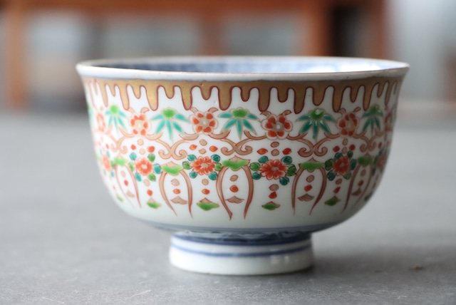 伊万里焼 色絵 壺垂花瓔珞文 蓋茶碗 通りもの/Imari covered bowl
