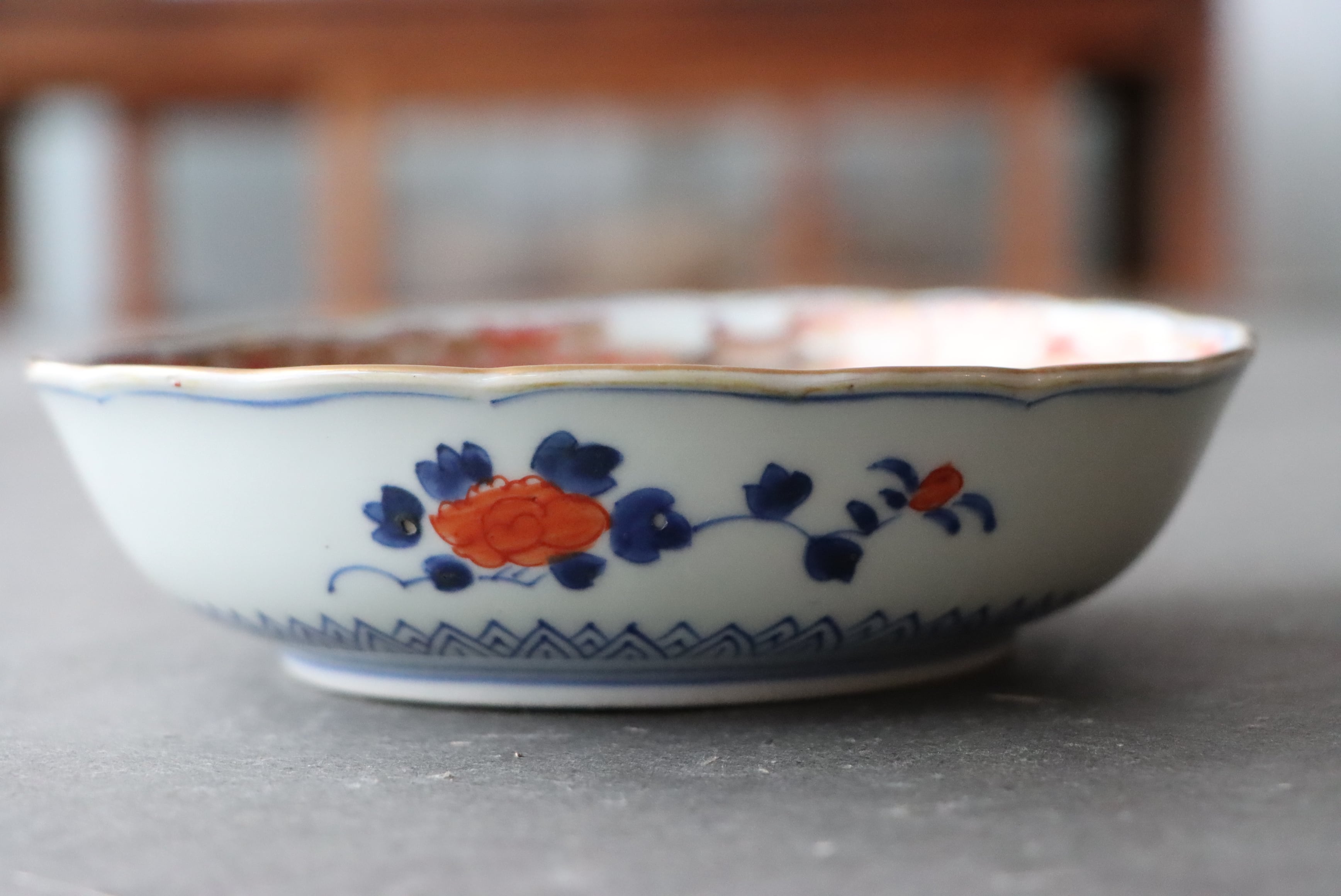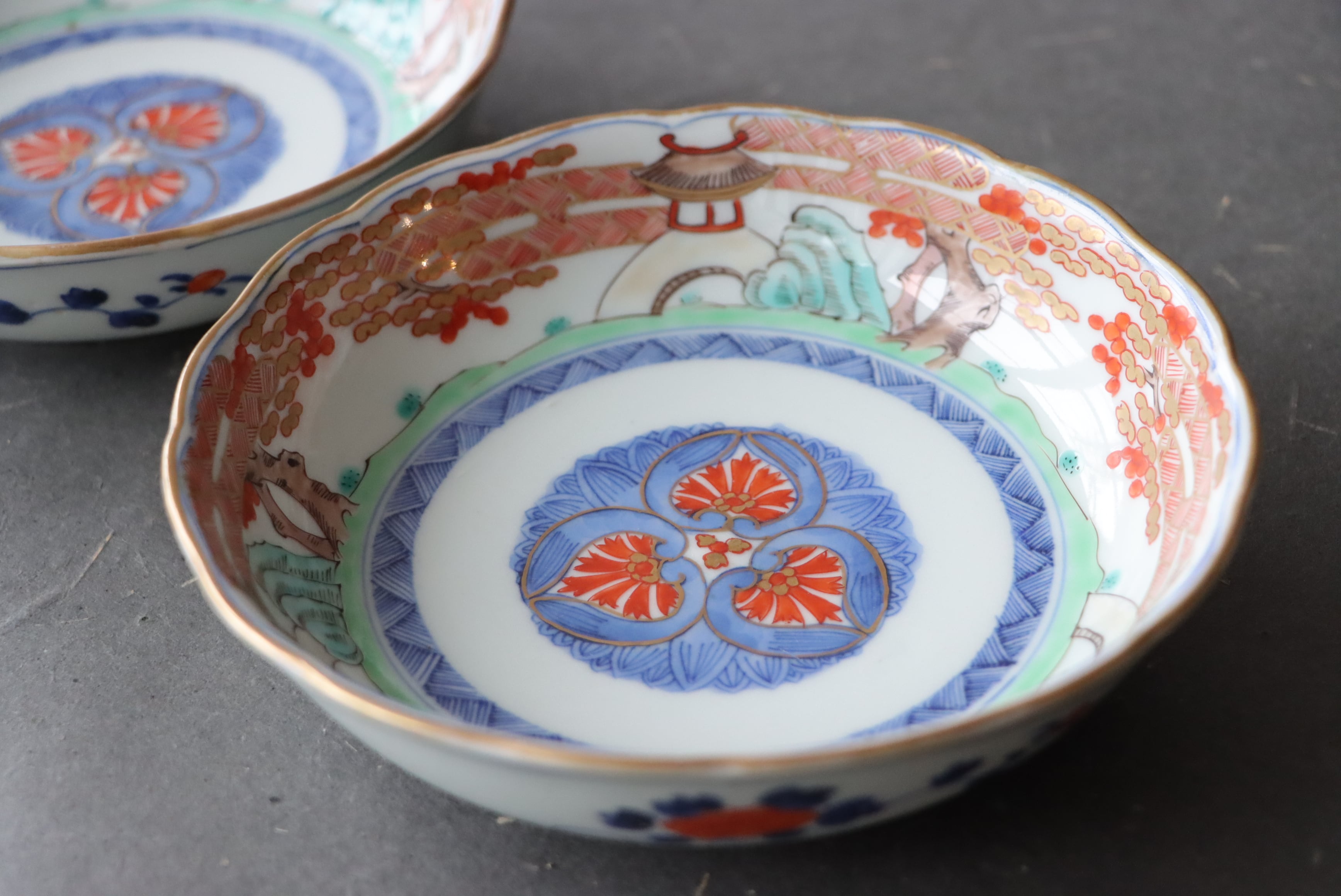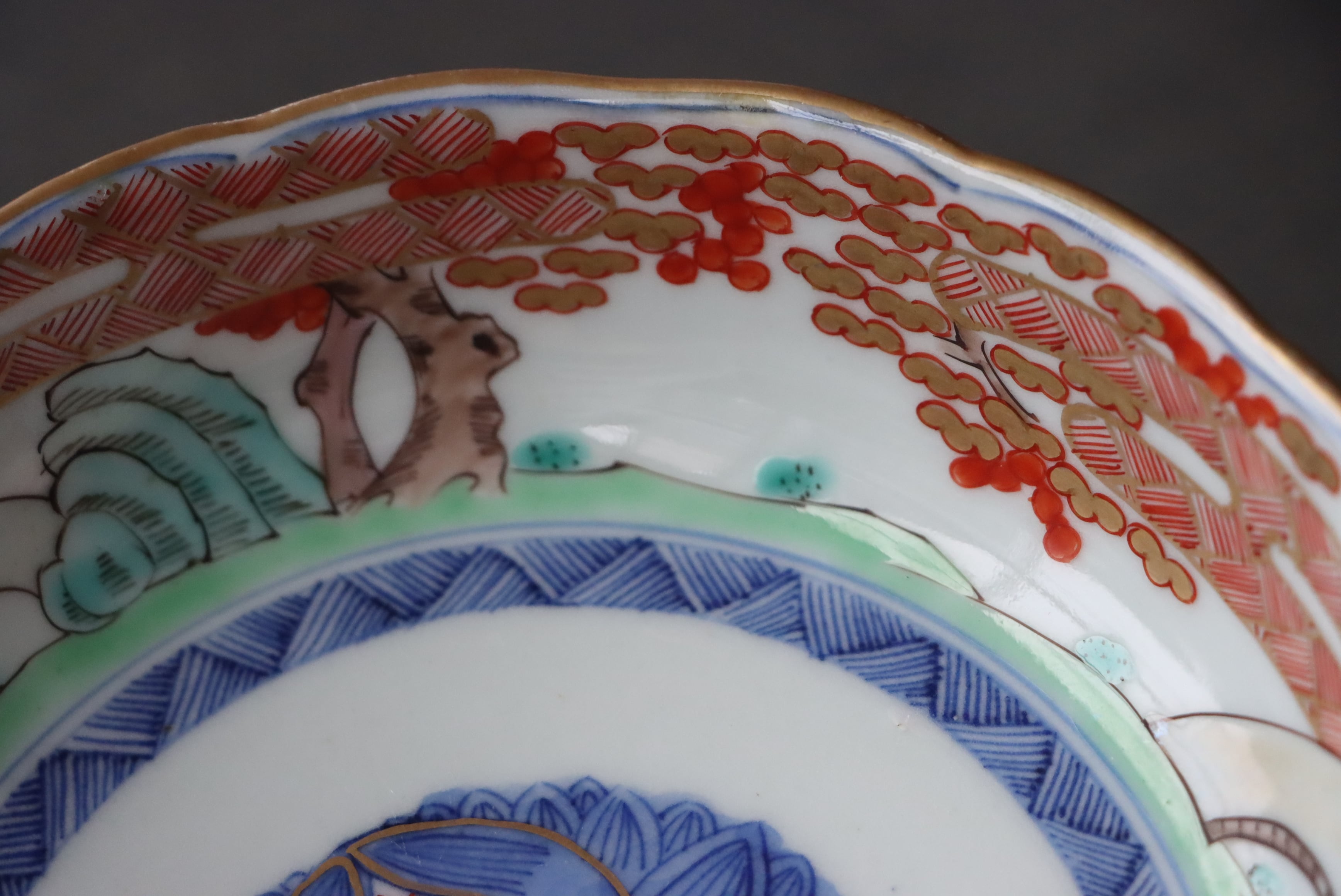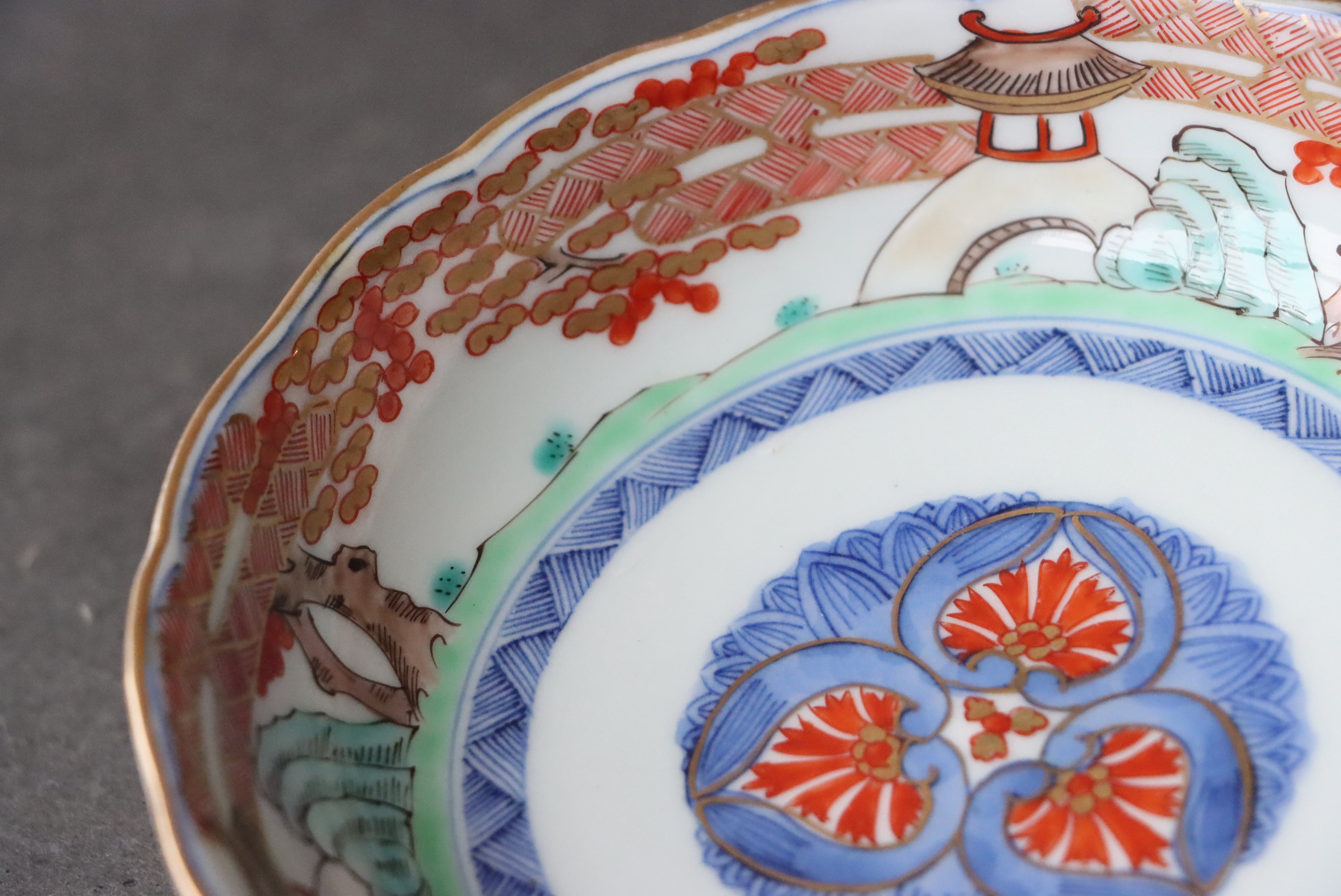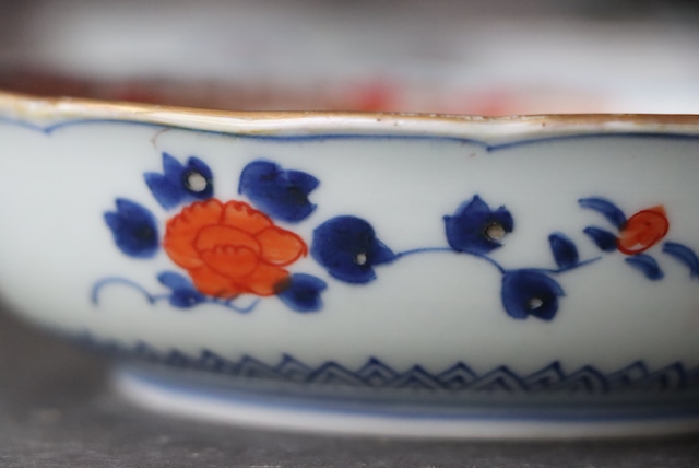 伊万里焼 色絵 松霞文 輪花 膾皿/ Imari "Namasu" bowl