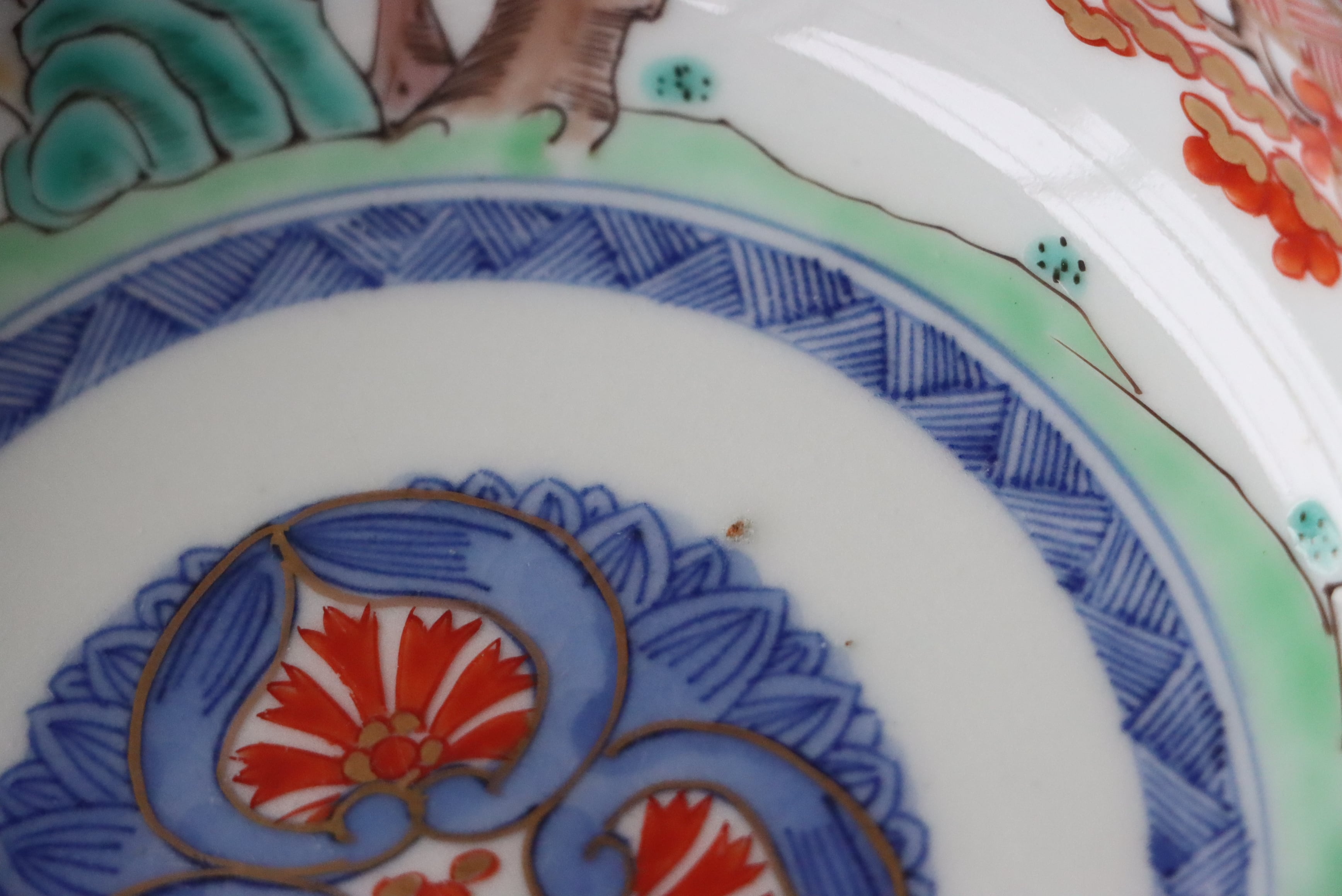 【Imari "Namasu" bowl with kasumi and pine design in overglaze enamels.】