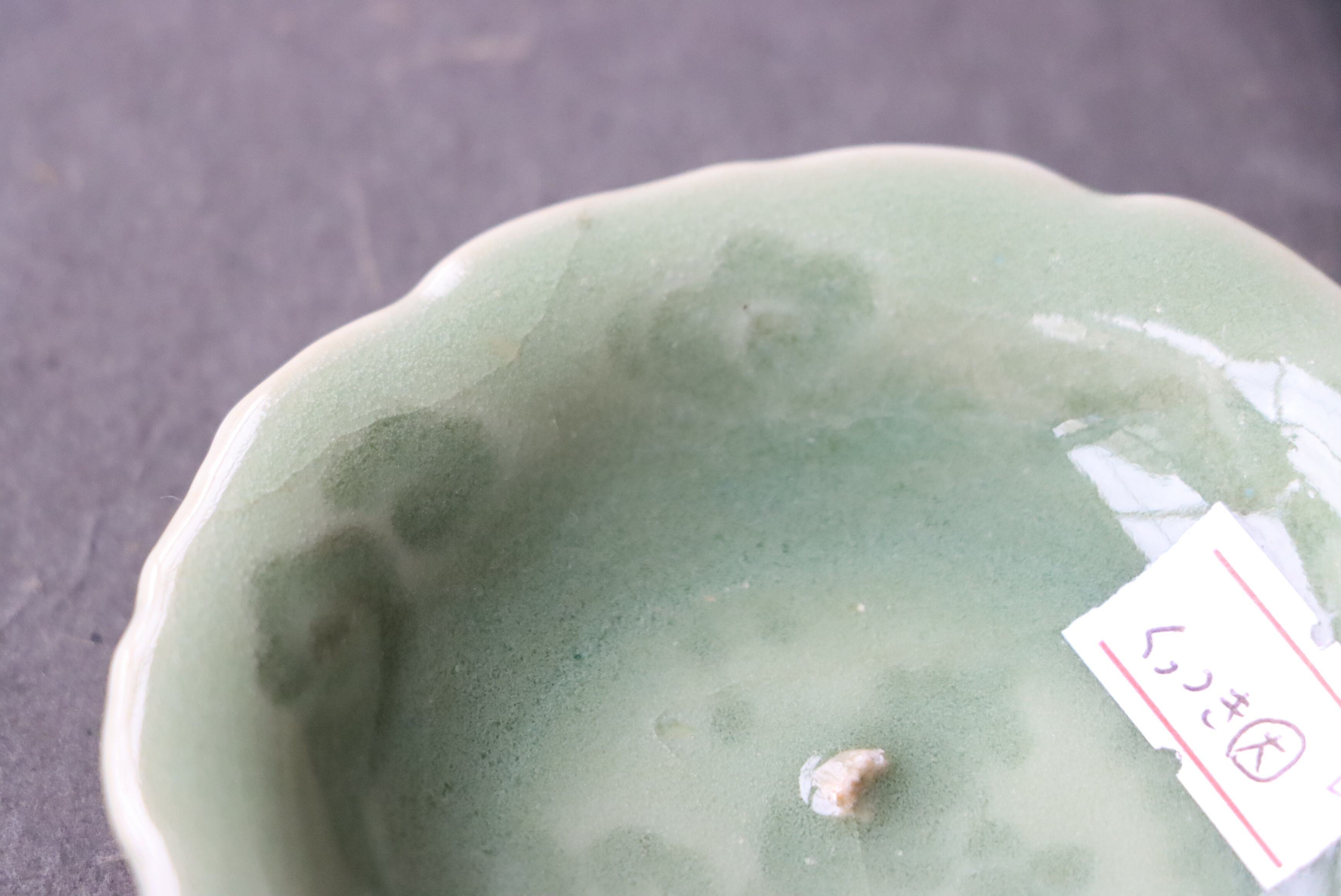 焼成時に窯の中でできる鉄分、くっつき、かまきず、ピンホール、経年による釉薬の薄れがございます。また、一枚一枚手描き、手作りですので器のサイズ(ミリ)、色味、描かれている文様の大きさなど個体差があり、ひとつとして同じものはございません。そういった時代感、個性をご理解いただき、楽しんでくだされば幸いです。電子レンジや食器洗い乾燥機のご使用はお控えください。