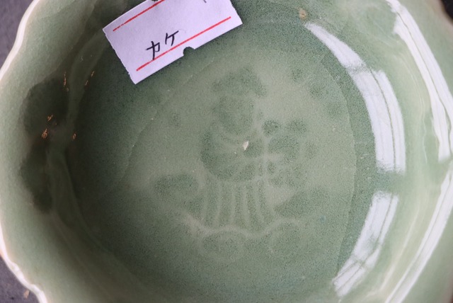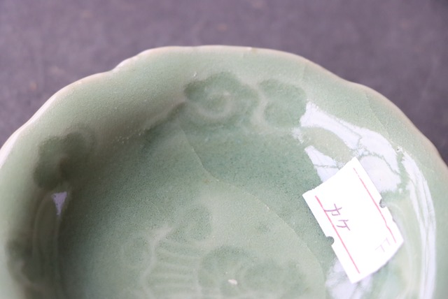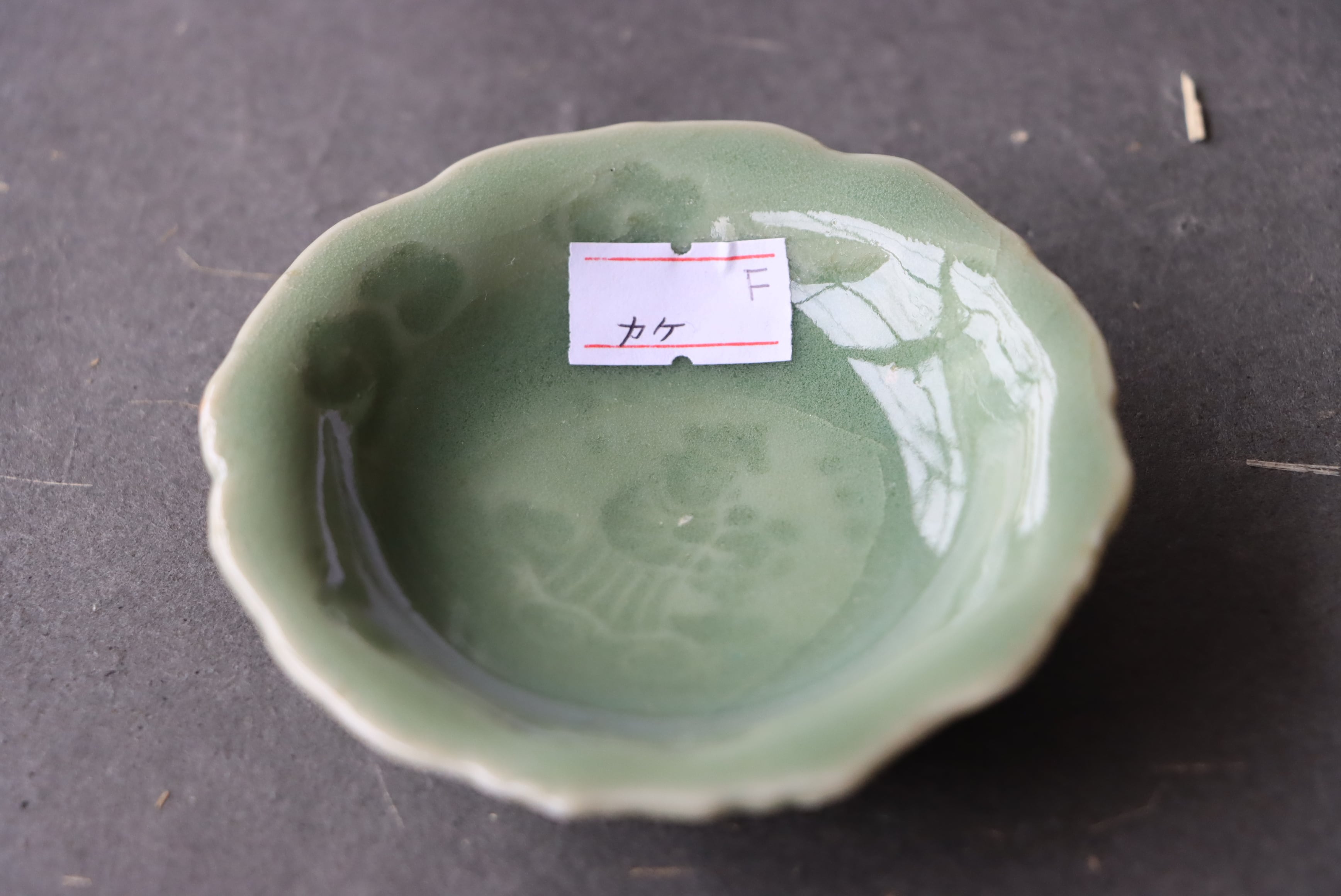 状態:カケ(約2センチ)あり。その他、貫入、高台部分にカマキズあり。お写真にて状態をご確認ください。金継ぎ用に。