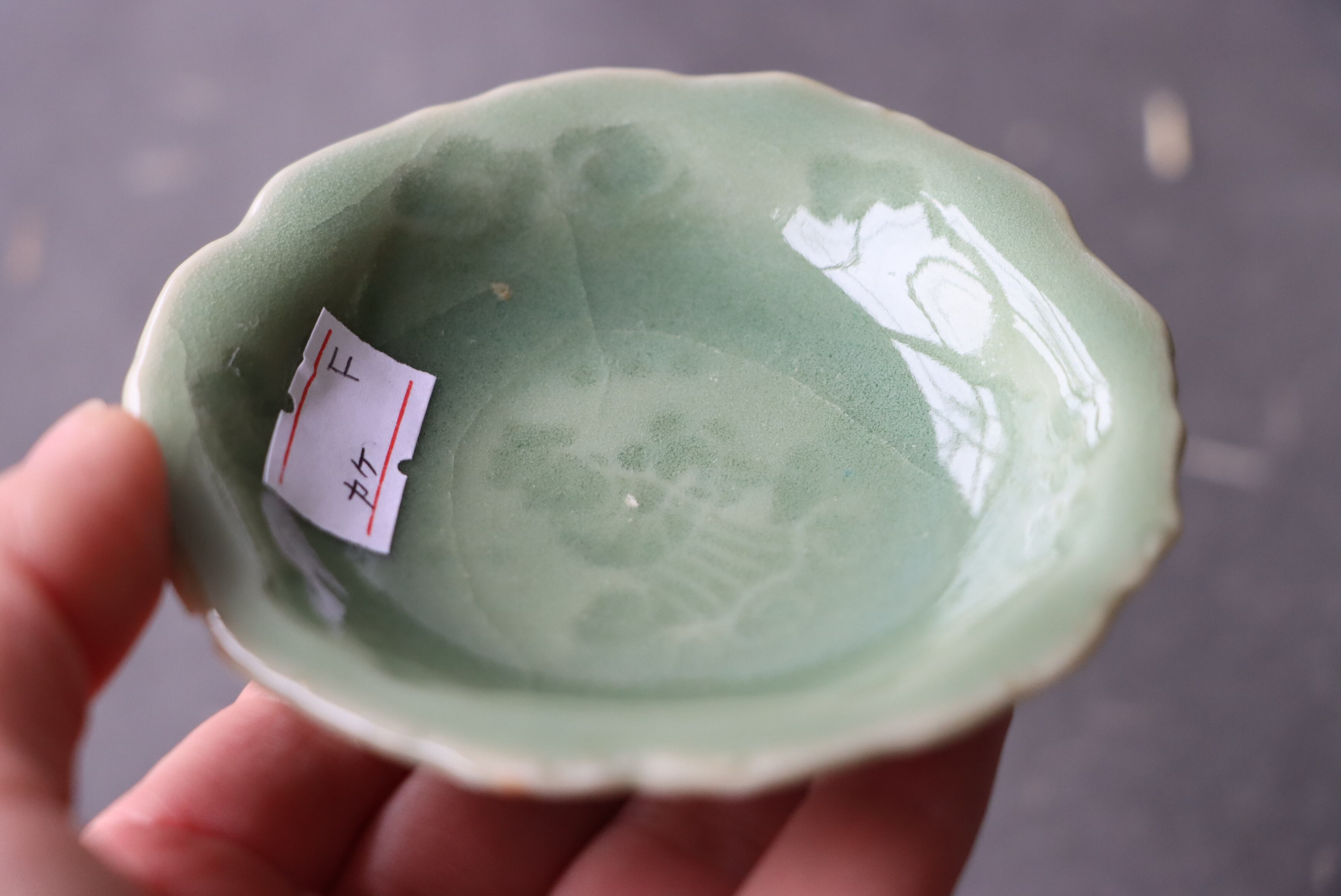 焼成時に窯の中でできる鉄分、くっつき、かまきず、ピンホール、経年による釉薬の薄れがございます。また、一枚一枚手描き、手作りですので器のサイズ(ミリ)、色味、描かれている文様の大きさなど個体差があり、ひとつとして同じものはございません。そういった時代感、個性をご理解いただき、楽しんでくだされば幸いです。電子レンジや食器洗い乾燥機のご使用はお控えください。