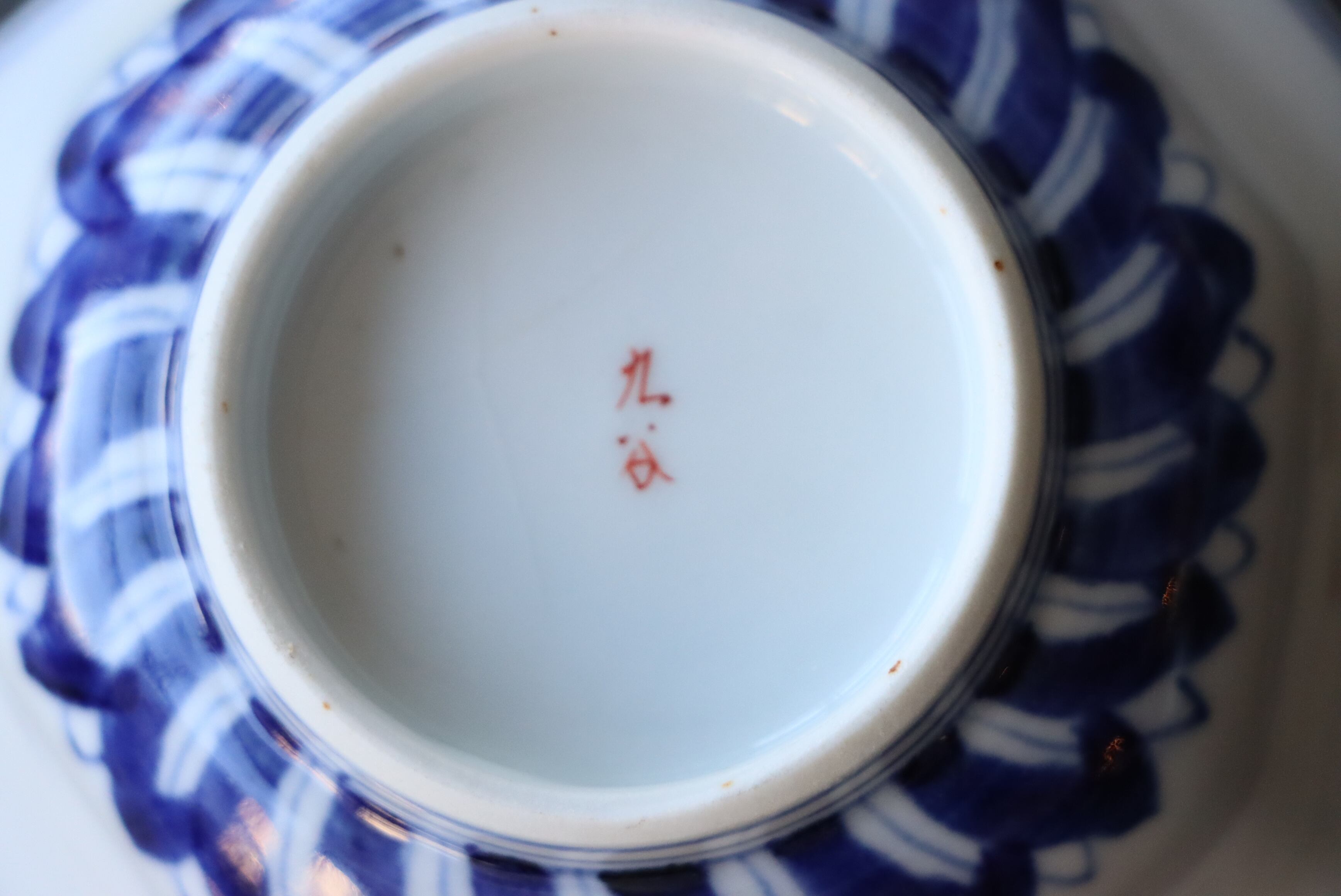 焼成時に窯の中でできる鉄分、くっつき、かまきず、ピンホール、経年による釉薬の薄れがございます。また、一枚一枚手描き、手作りですので器のサイズ(ミリ)、色味、描かれている文様の大きさなど個体差があり、ひとつとして同じものはございません。そういった時代感、個性をご理解いただき、楽しんでくだされば幸いです。電子レンジや食器洗い乾燥機のご使用はお控えください。