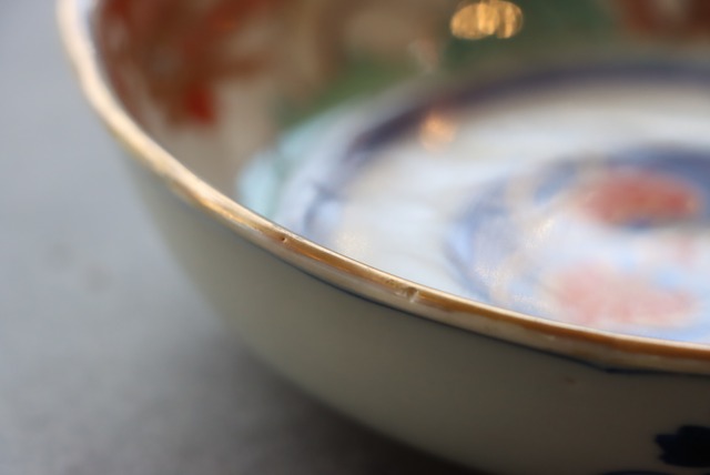 焼成時に窯の中でできる鉄分、くっつき、かまきず、ピンホール、経年による釉薬の薄れがございます。また、一枚一枚手描き、手作りですので器のサイズ(ミリ)、色味、描かれている文様の大きさなど個体差があり、ひとつとして同じものはございません。そういった時代感、個性をご理解いただき、楽しんでくだされば幸いです。電子レンジや食器洗い乾燥機のご使用はお控えください。