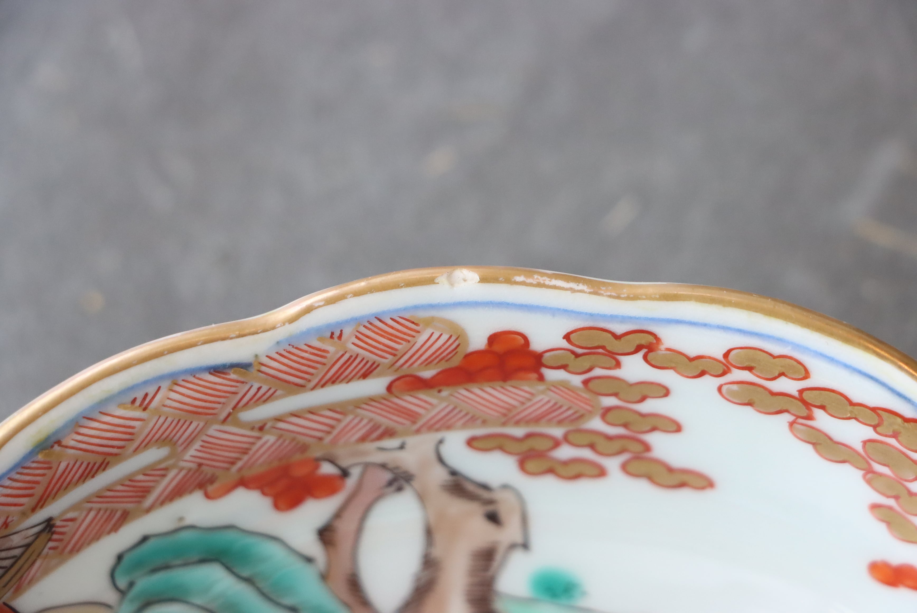 状態:フチソゲ×2あり。その他、金彩の剥離している箇所があります。気をつけて使用すれば普段使い可能です。もしくは金継ぎ用に。