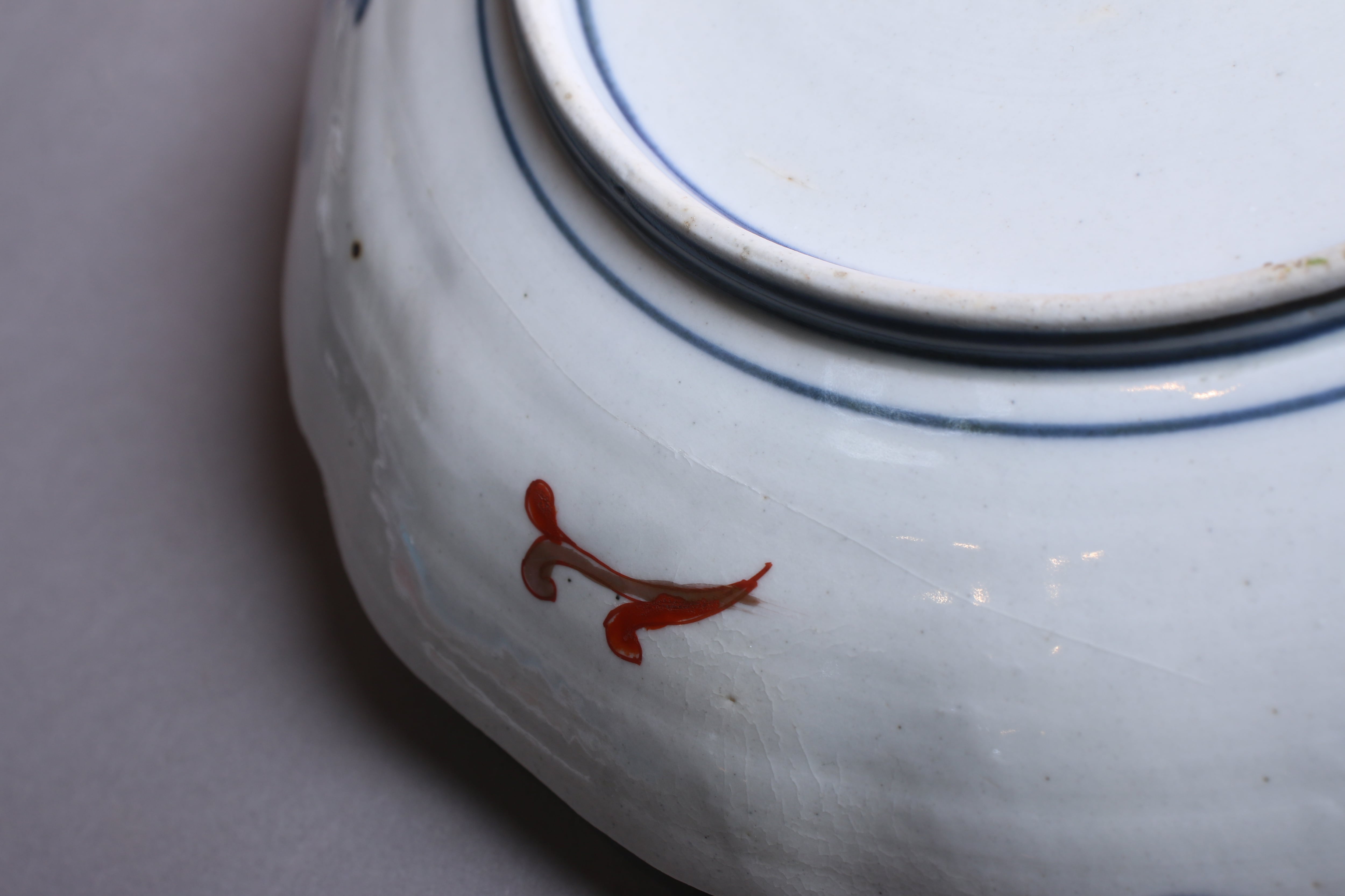 焼成時に窯の中でできる鉄分、くっつき、かまきず、ピンホール、経年による釉薬の薄れがございます。また、一枚一枚手描き、手作りですので器のサイズ(ミリ)、色味、描かれている文様の大きさなど個体差があり、ひとつとして同じものはございません。そういった時代感、個性をご理解いただき、楽しんでくだされば幸いです。電子レンジや食器洗い乾燥機のご使用はお控えください。