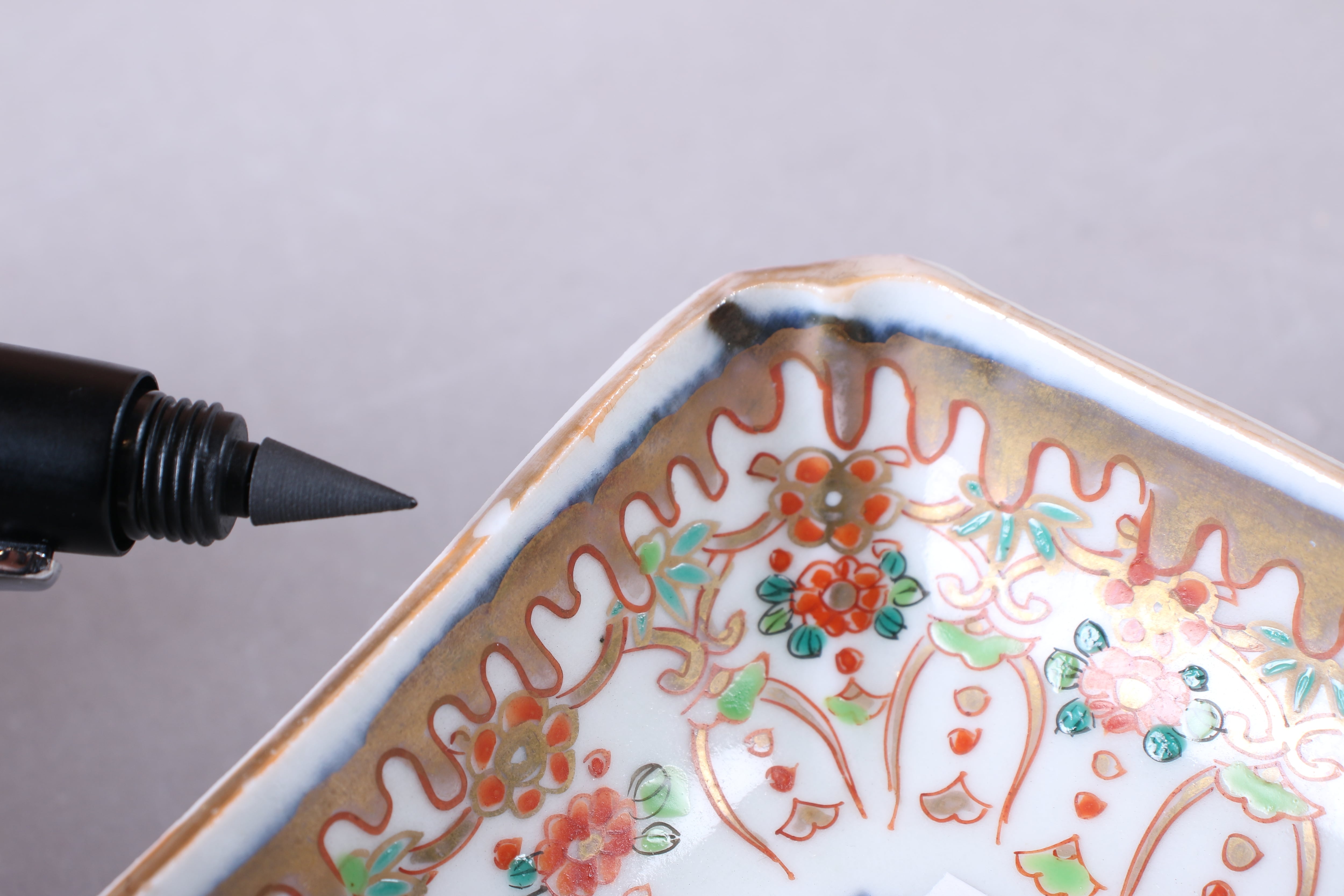 焼成時に窯の中でできる鉄分、くっつき、かまきず、ピンホール、経年による釉薬の薄れがございます。また、一枚一枚手描き、手作りですので器のサイズ(ミリ)、色味、描かれている文様の大きさなど個体差があり、ひとつとして同じものはございません。そういった時代感、個性をご理解いただき、楽しんでくだされば幸いです。電子レンジや食器洗い乾燥機のご使用はお控えください。
