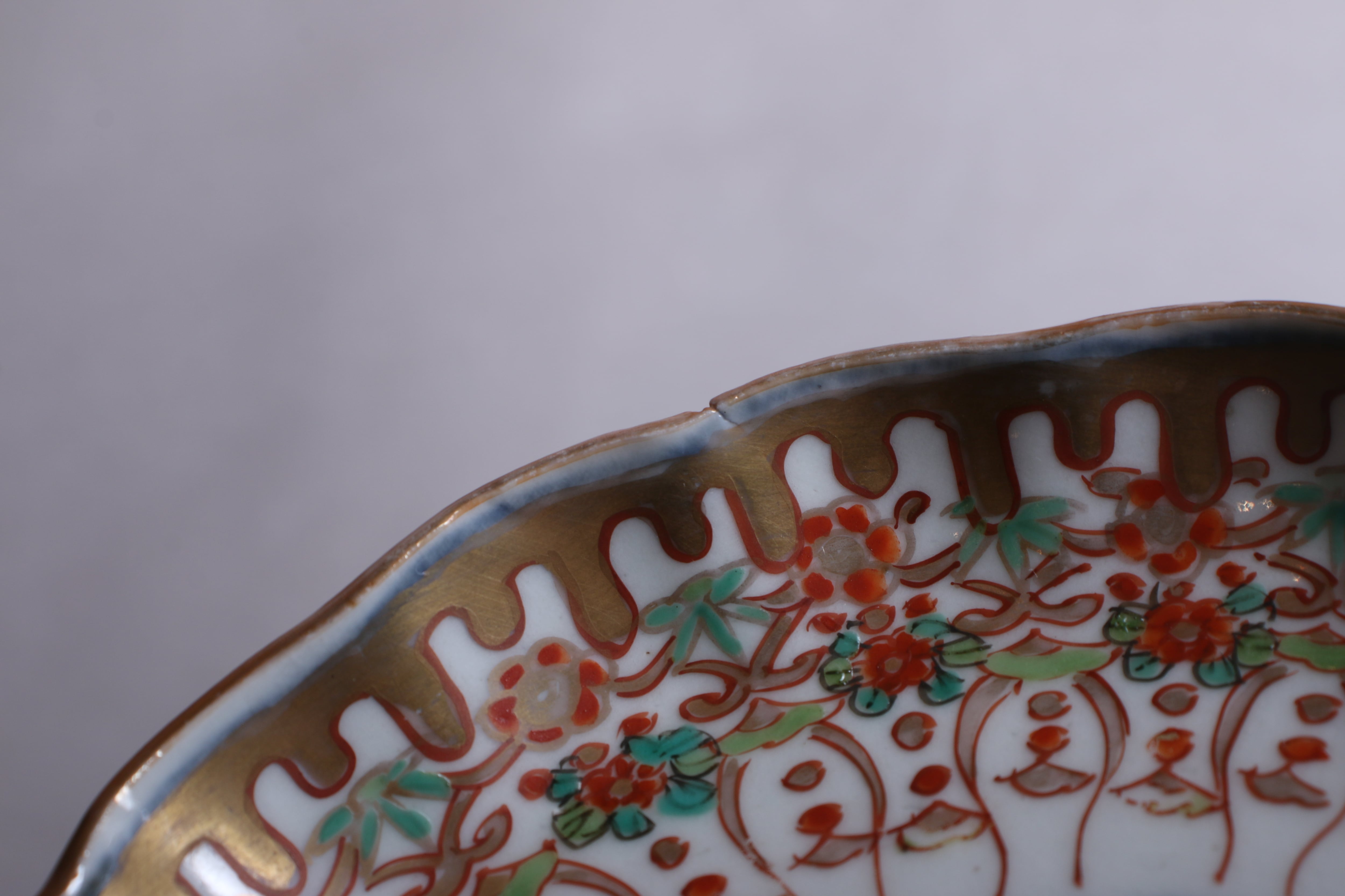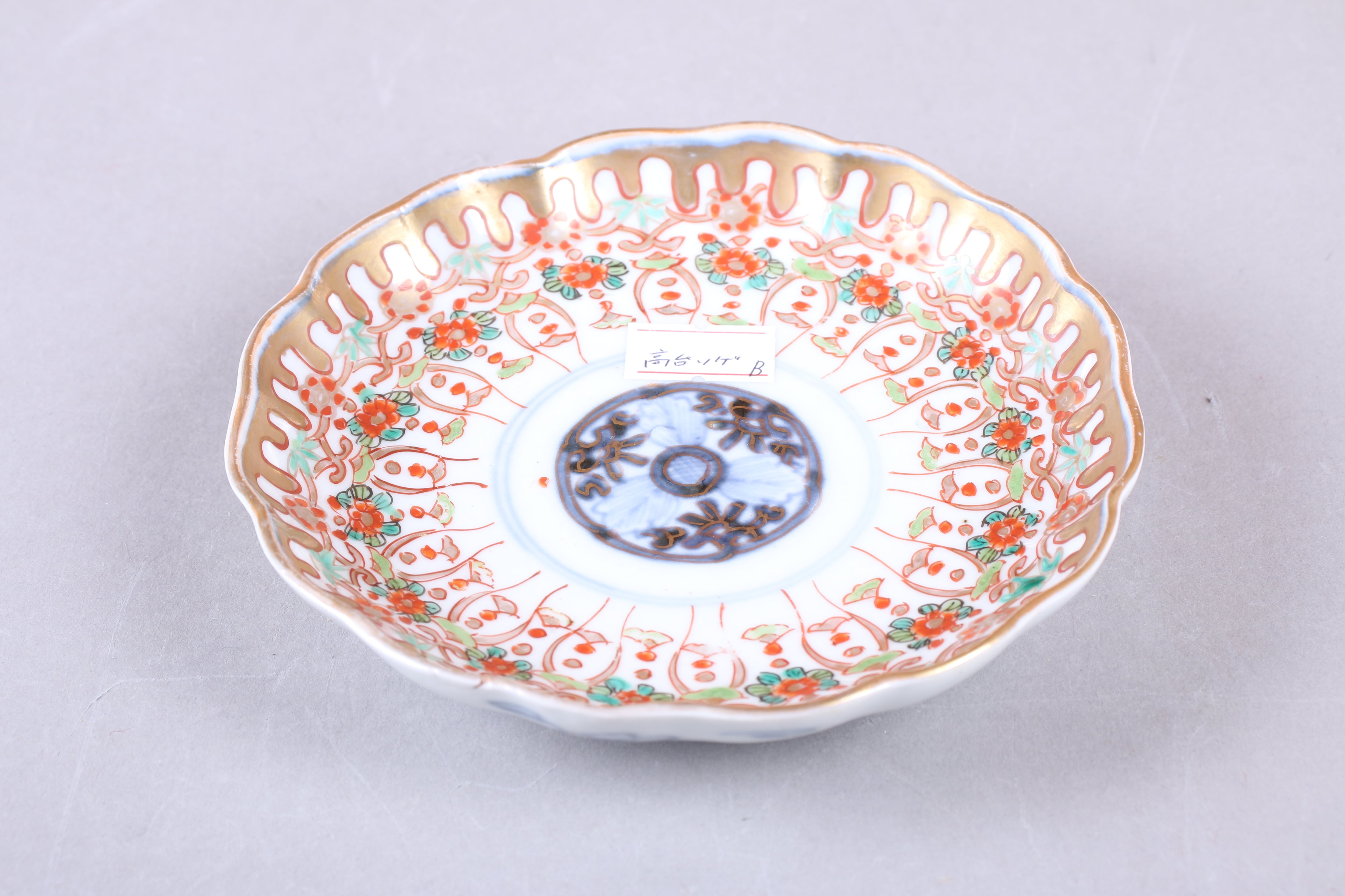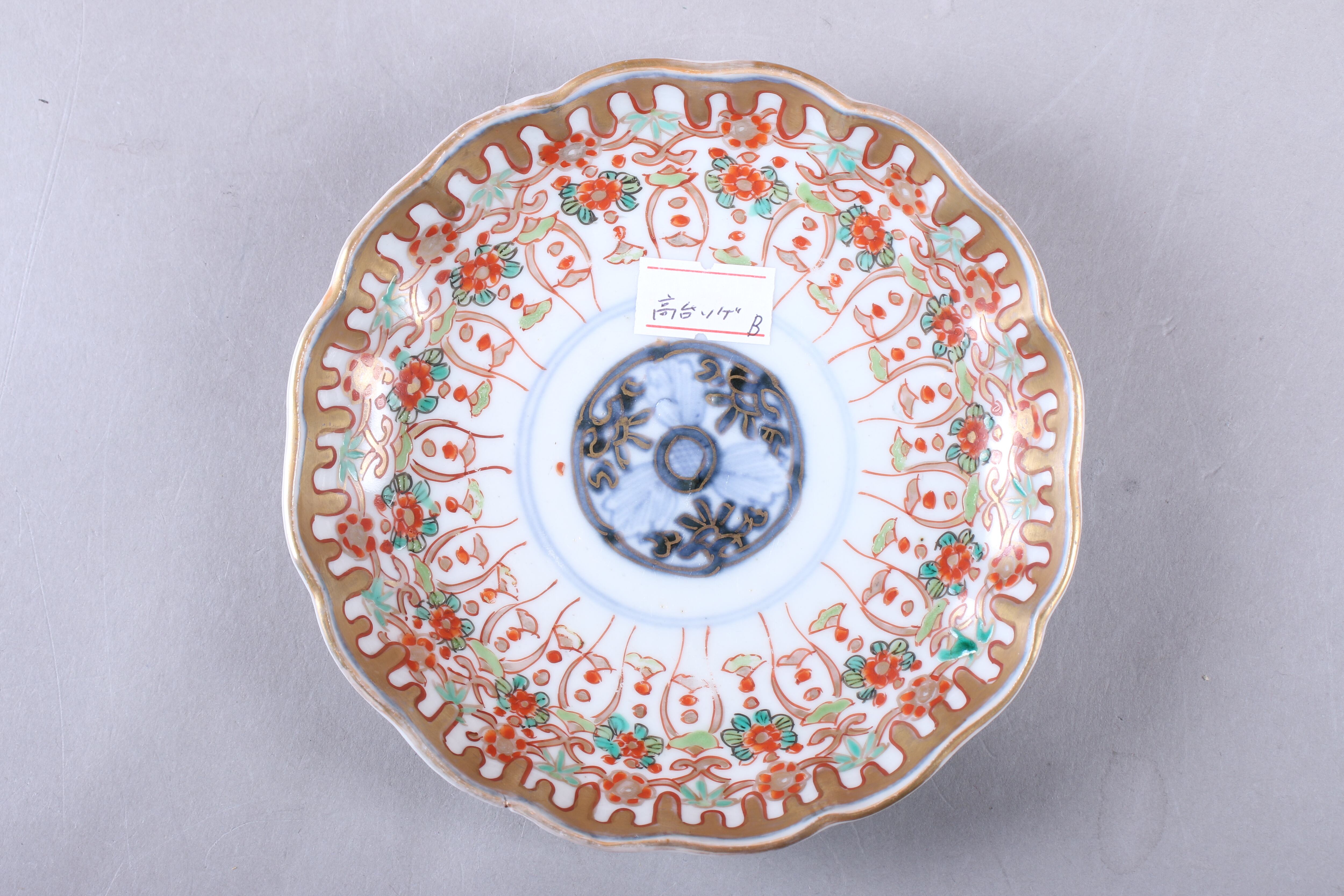 高台ソゲ 伊万里焼 色絵 壺垂花瓔珞文 小皿 通りもの B アウトレット
