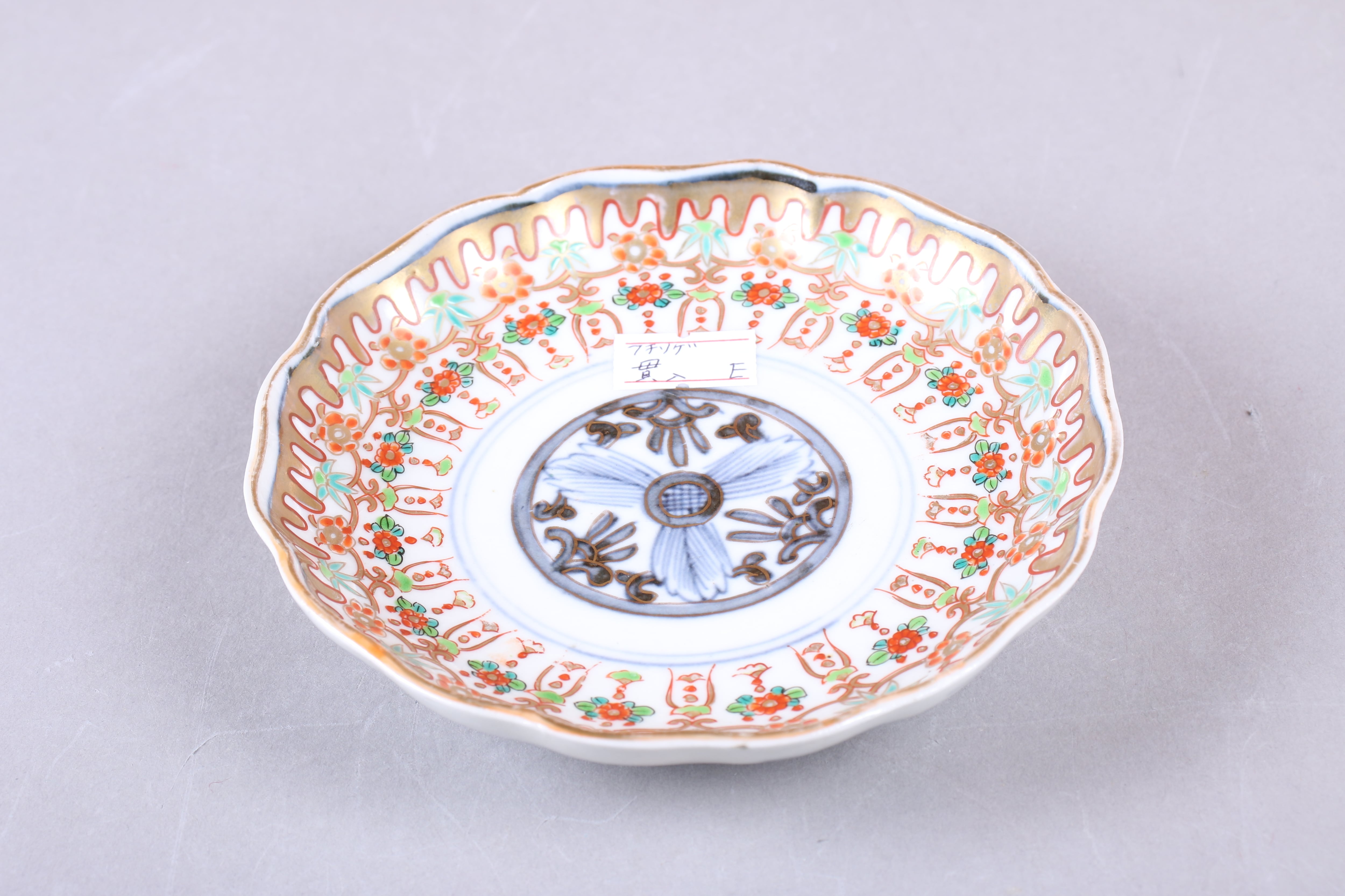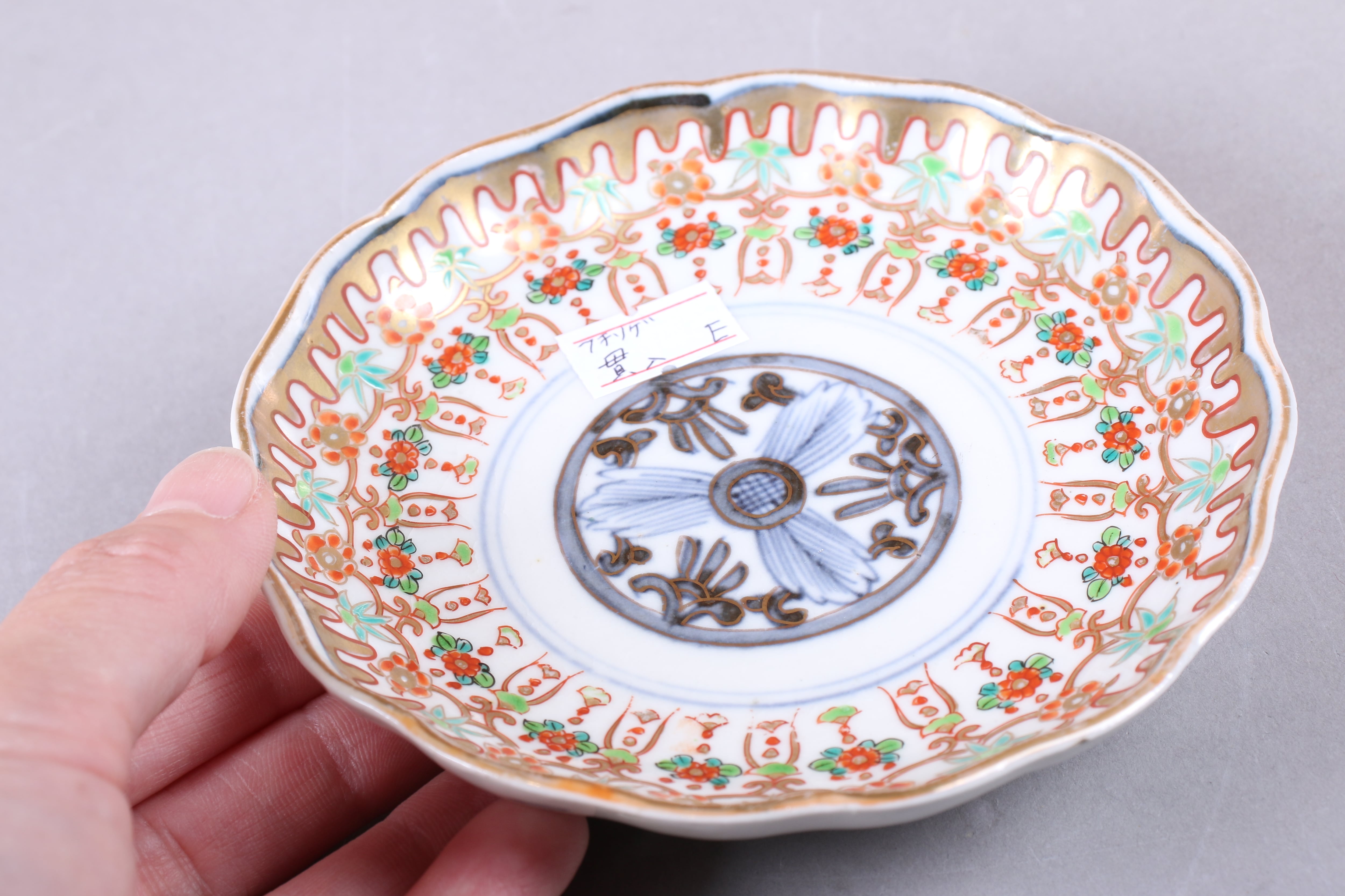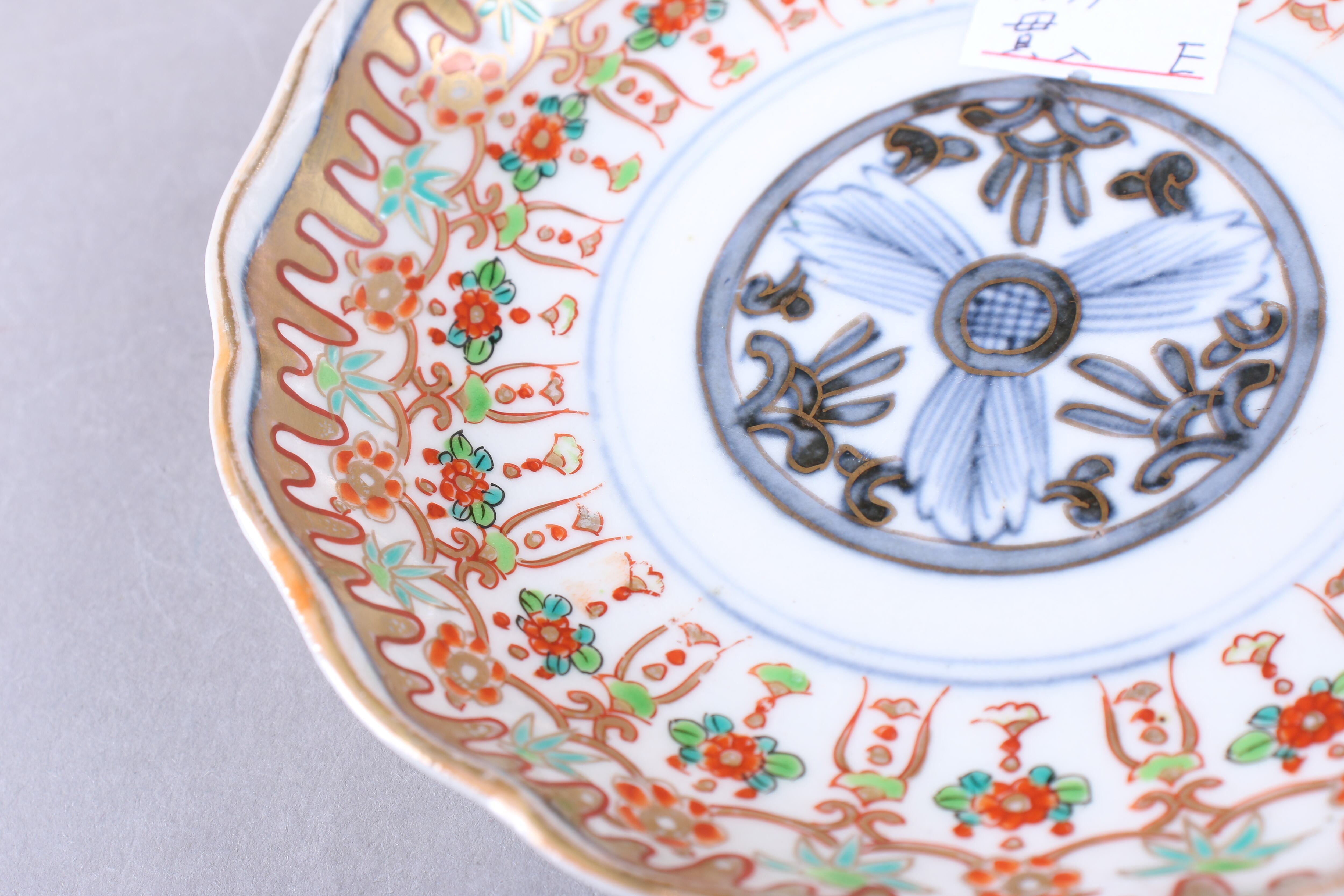 貫入 フチソゲ 伊万里焼 色絵 壺垂花瓔珞文 小皿 通りもの E アウトレット