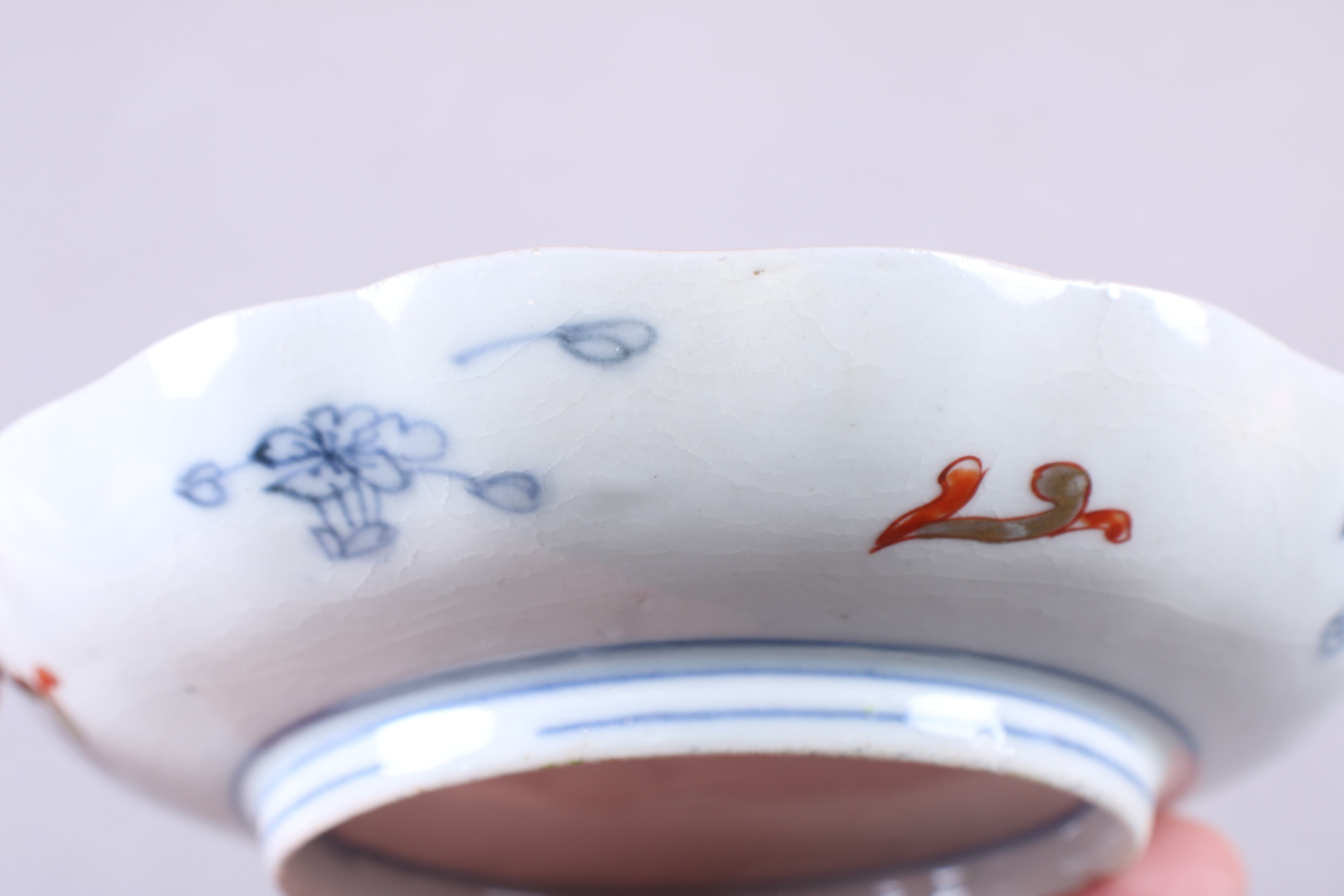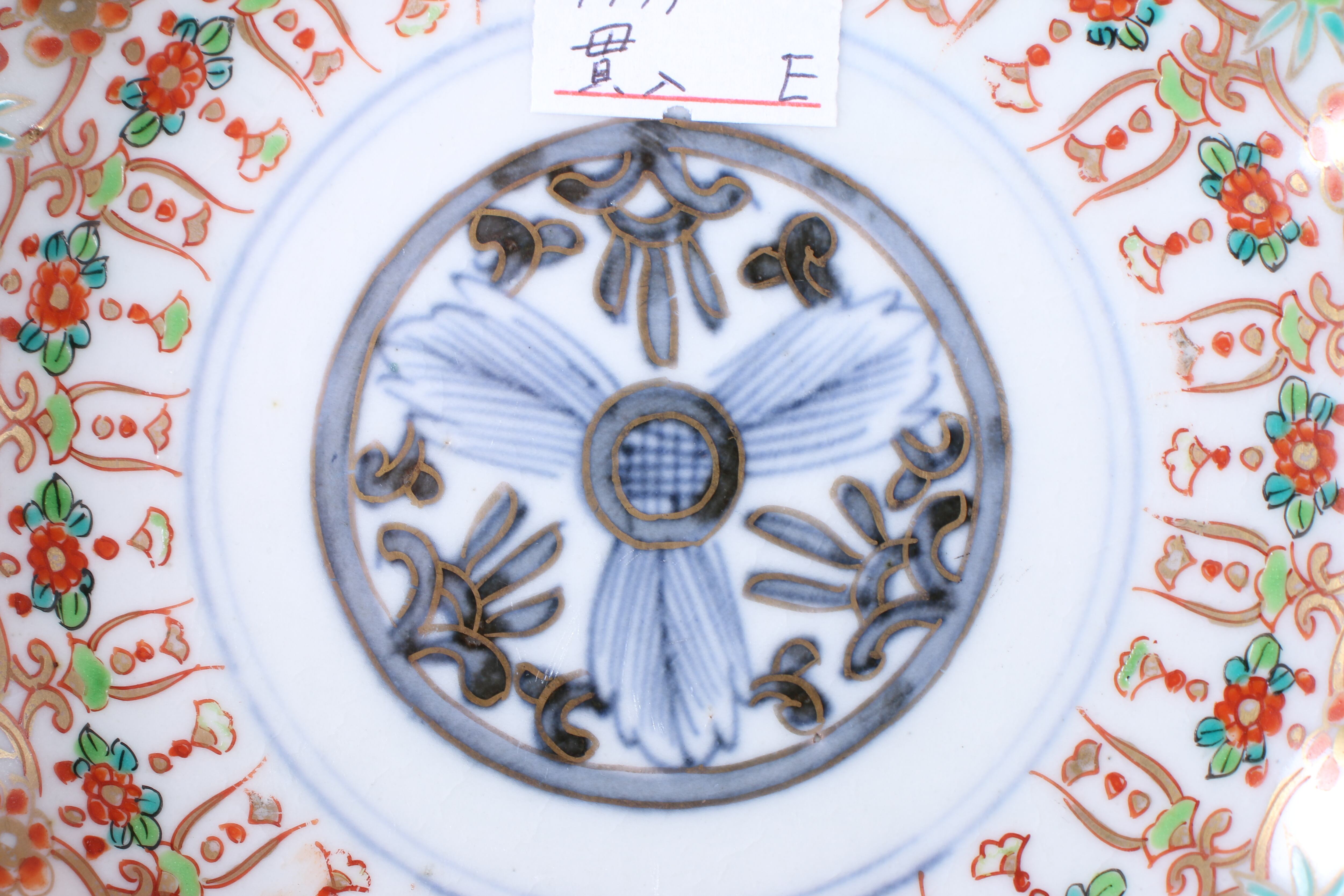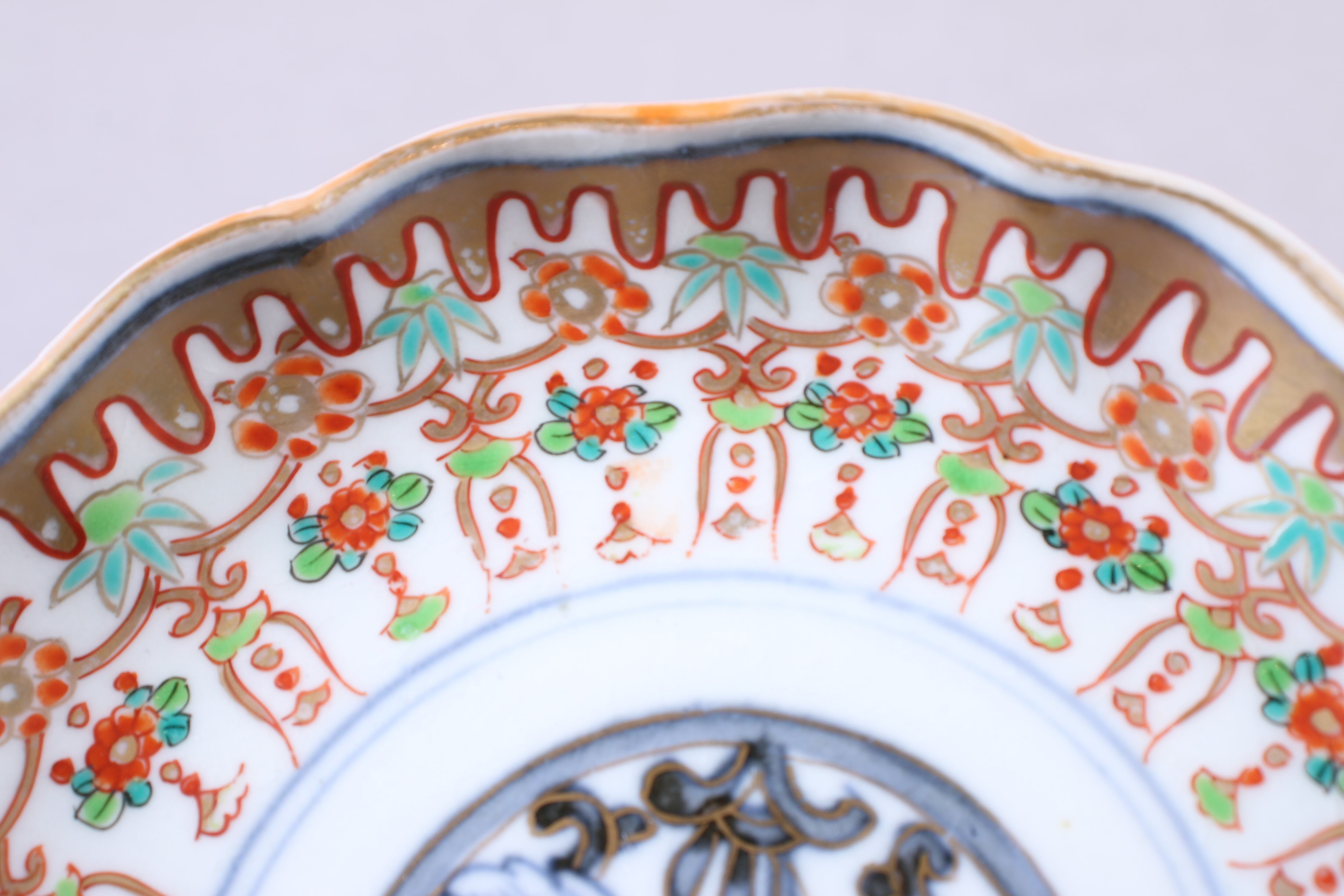 貫入 フチソゲ 伊万里焼 色絵 壺垂花瓔珞文 小皿 通りもの E アウトレット