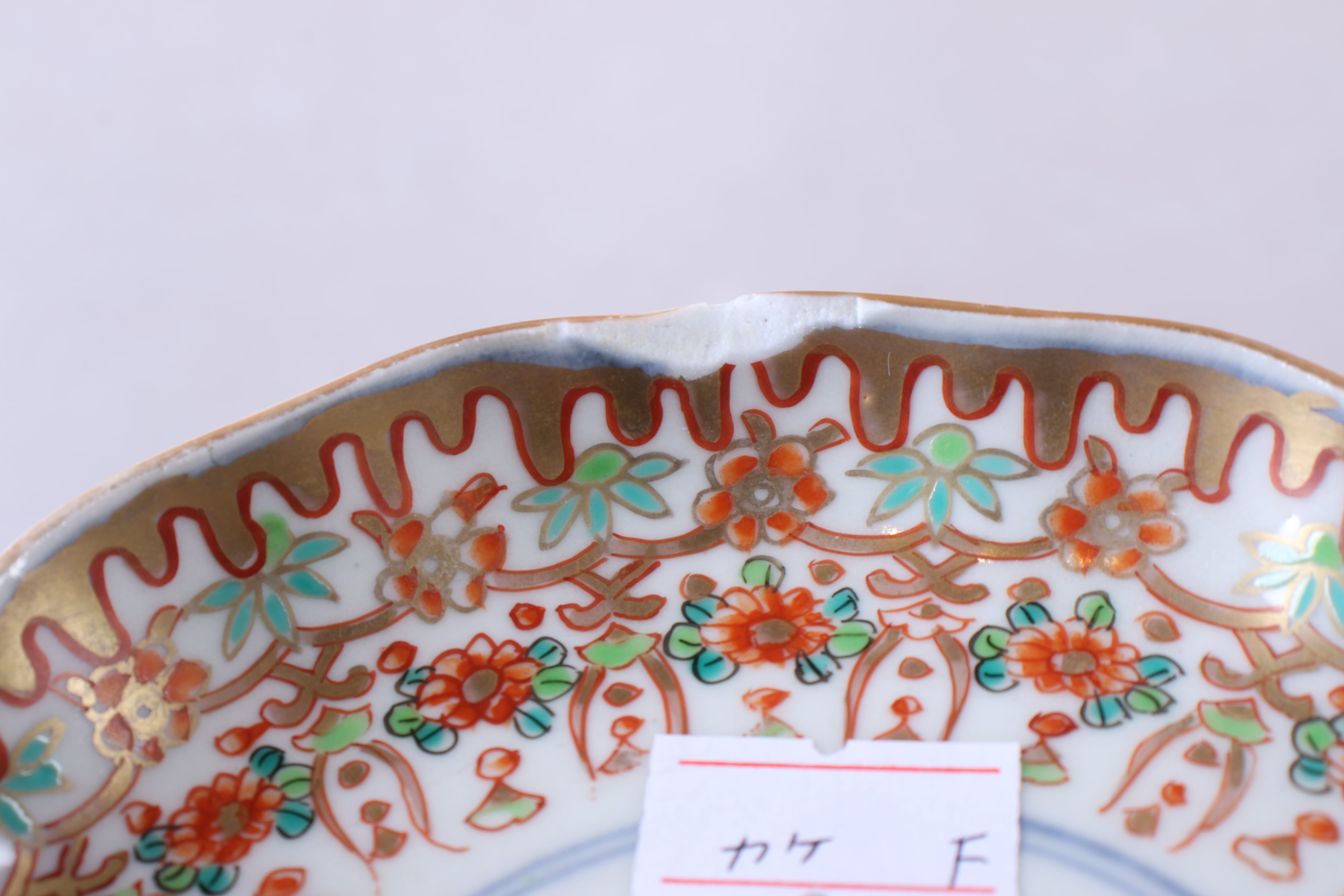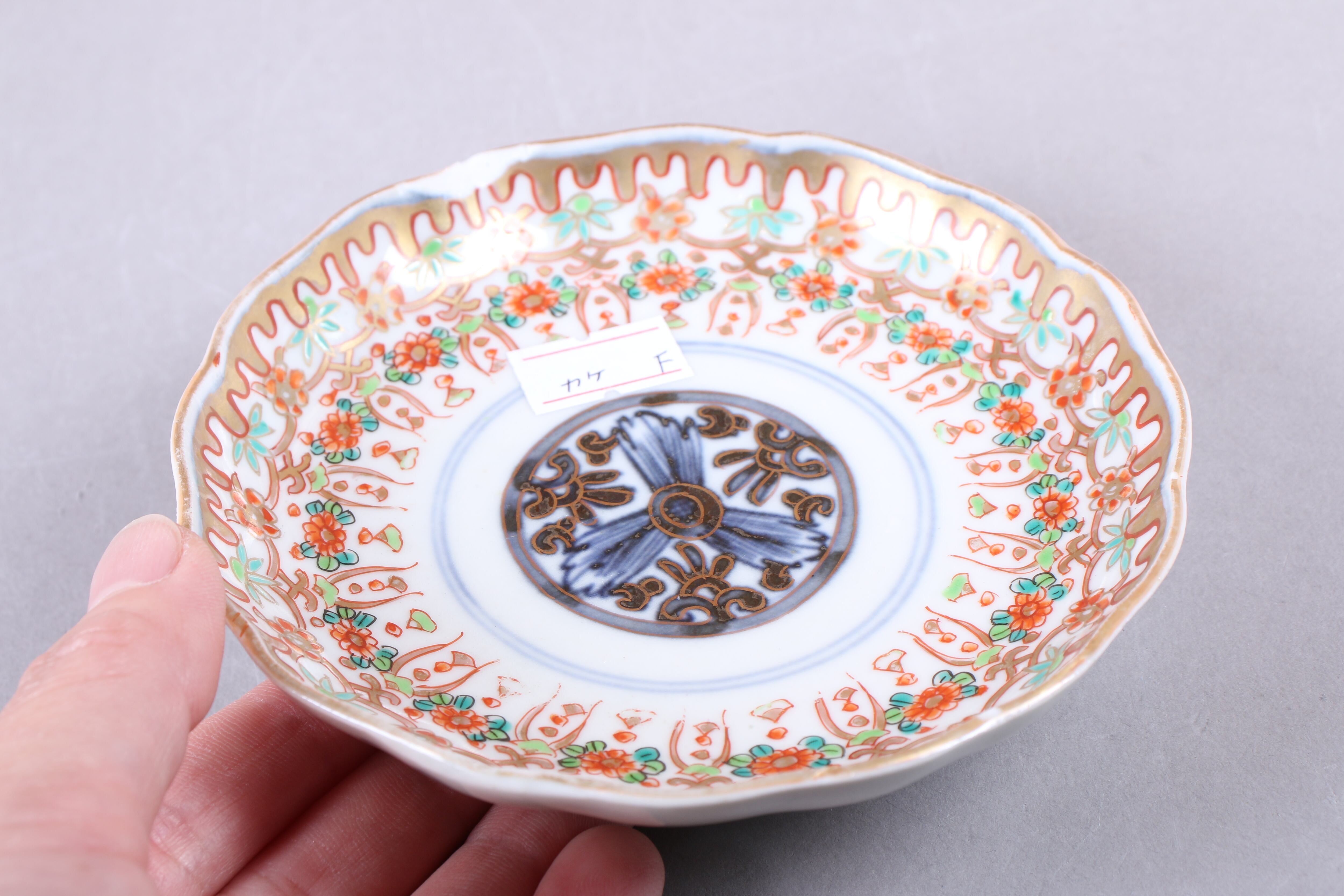 カケ フチソゲ 伊万里焼 色絵 壺垂花瓔珞文 小皿 通りもの F アウトレット