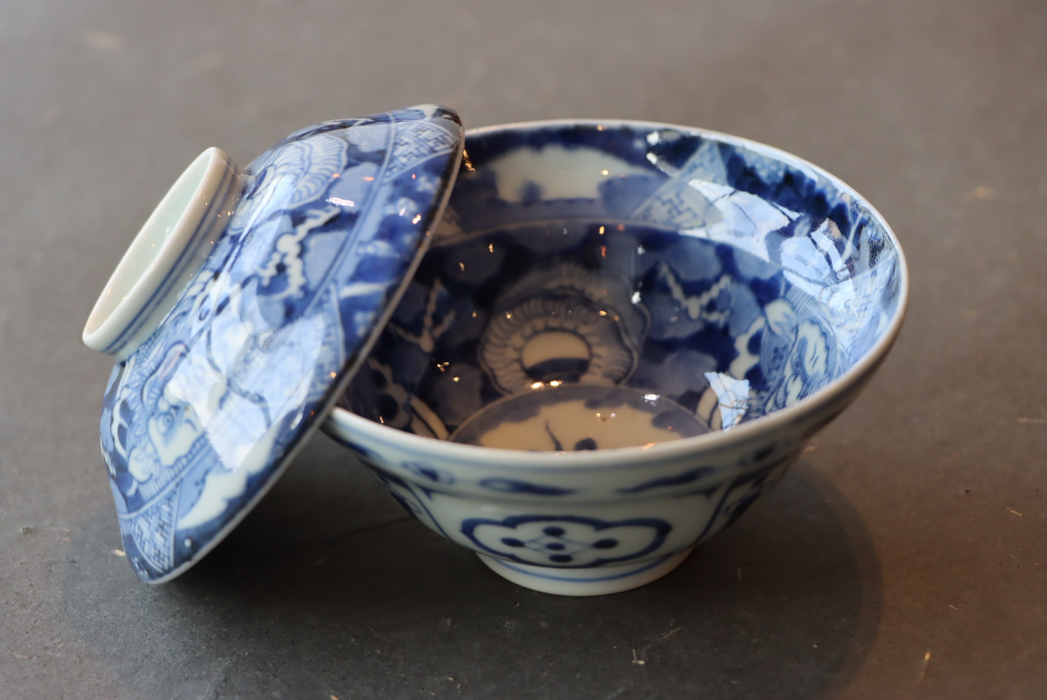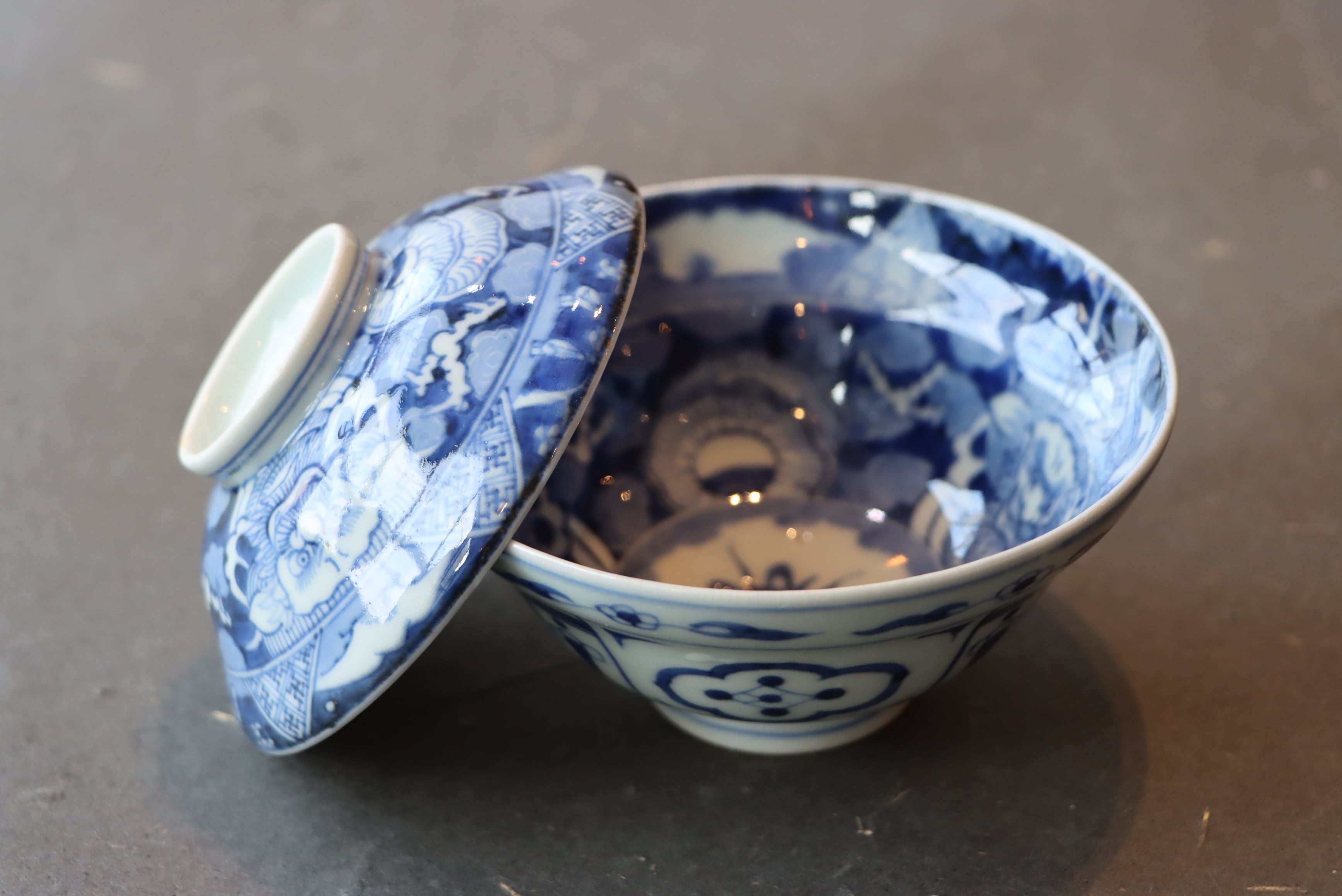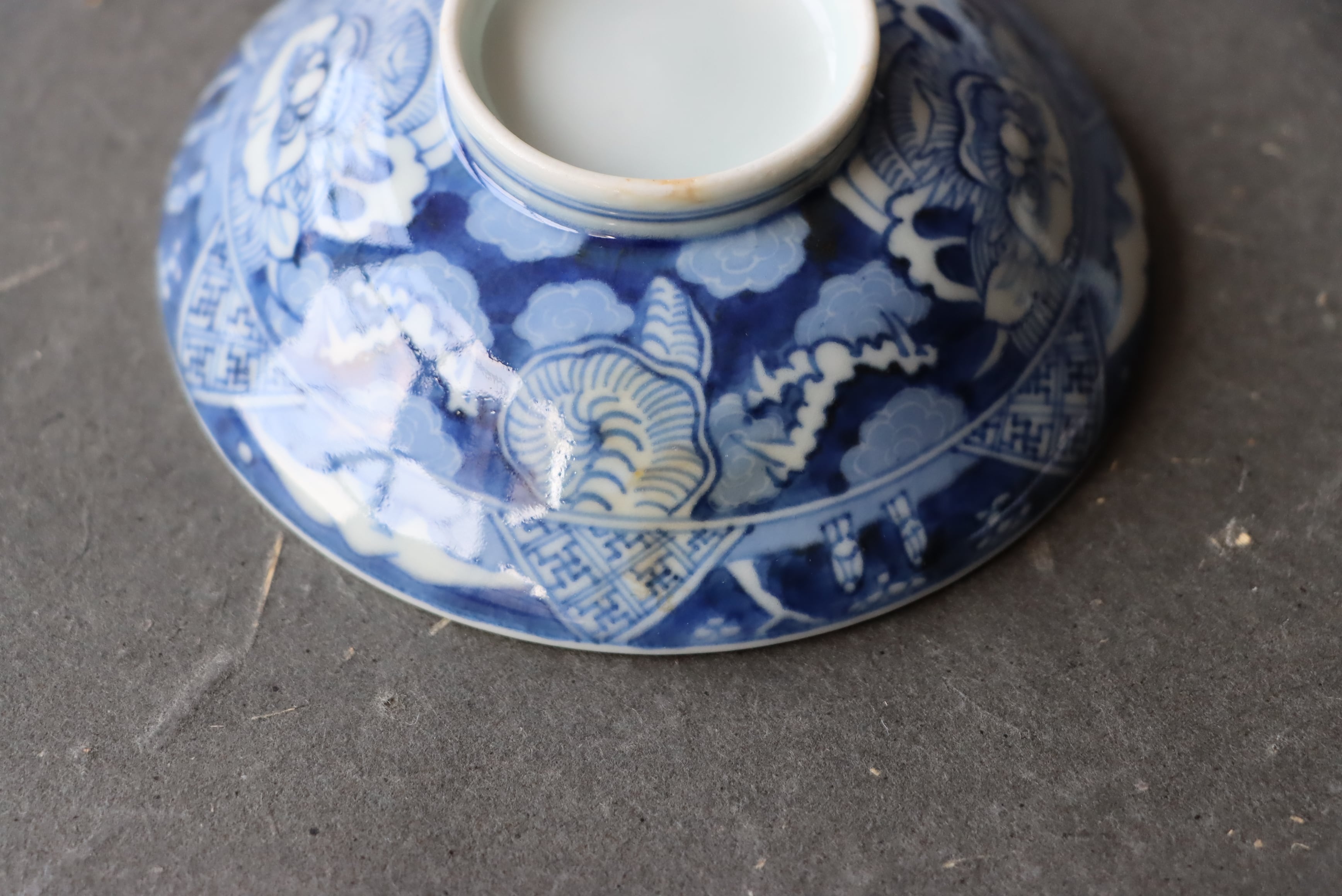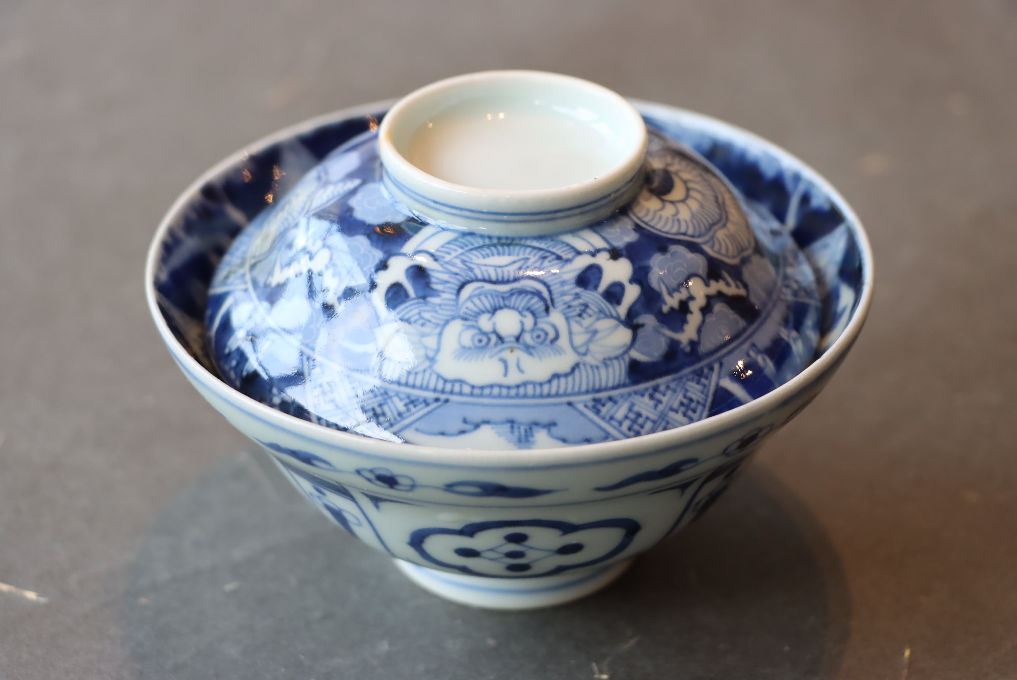 染付 獅子丁子文 蓋茶碗/Blue and white covered bowl