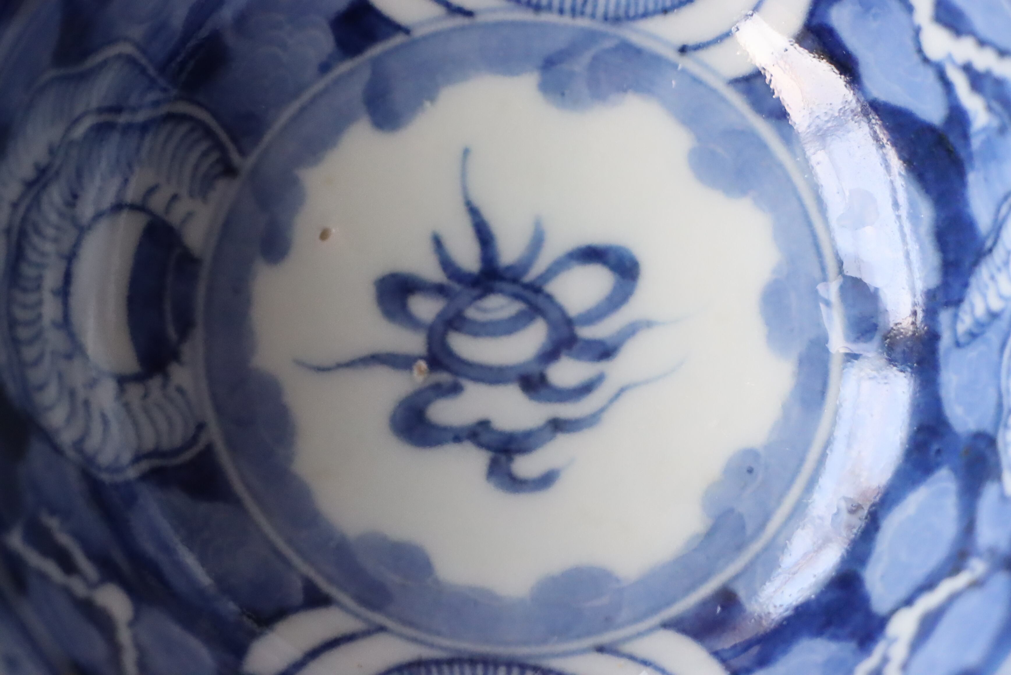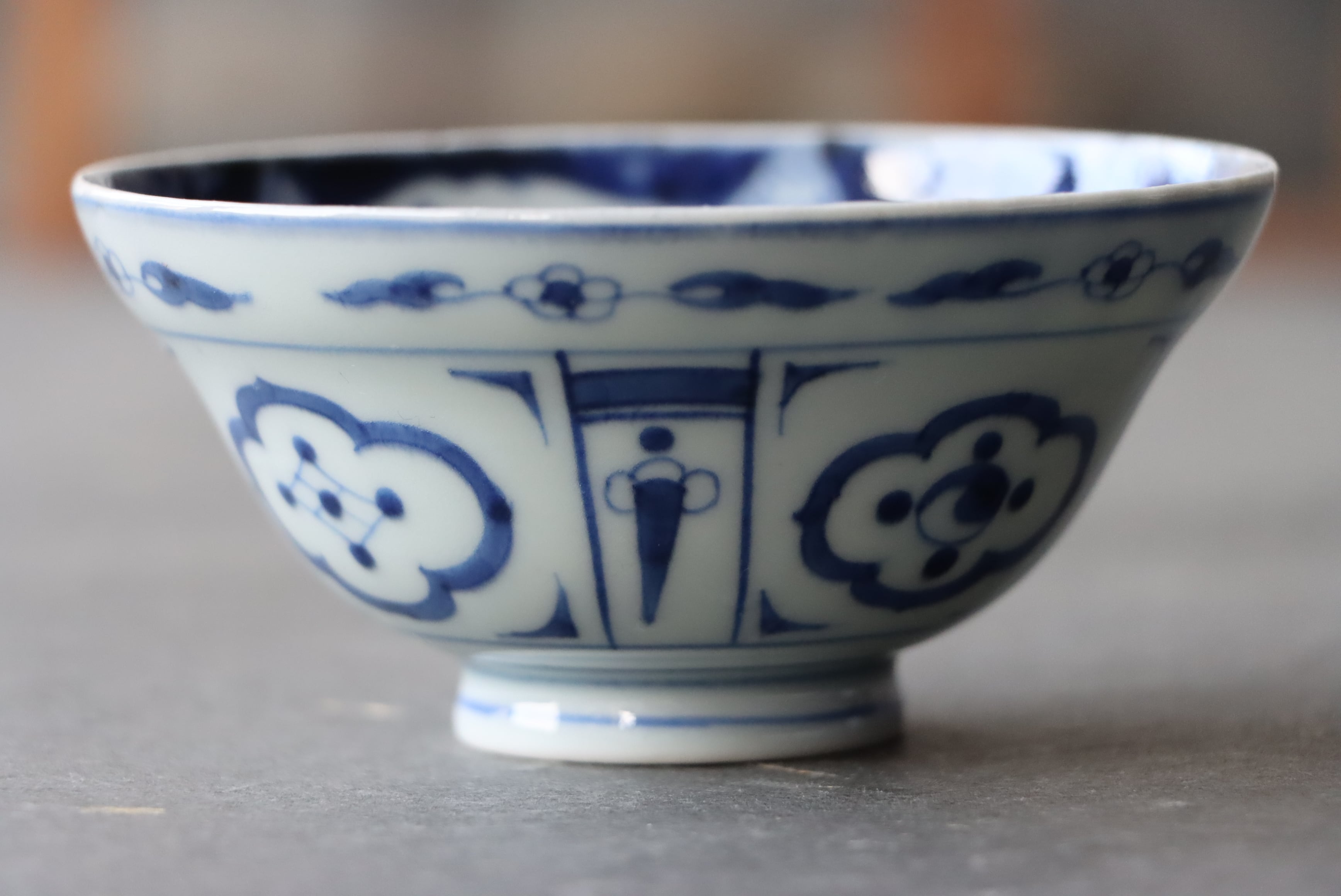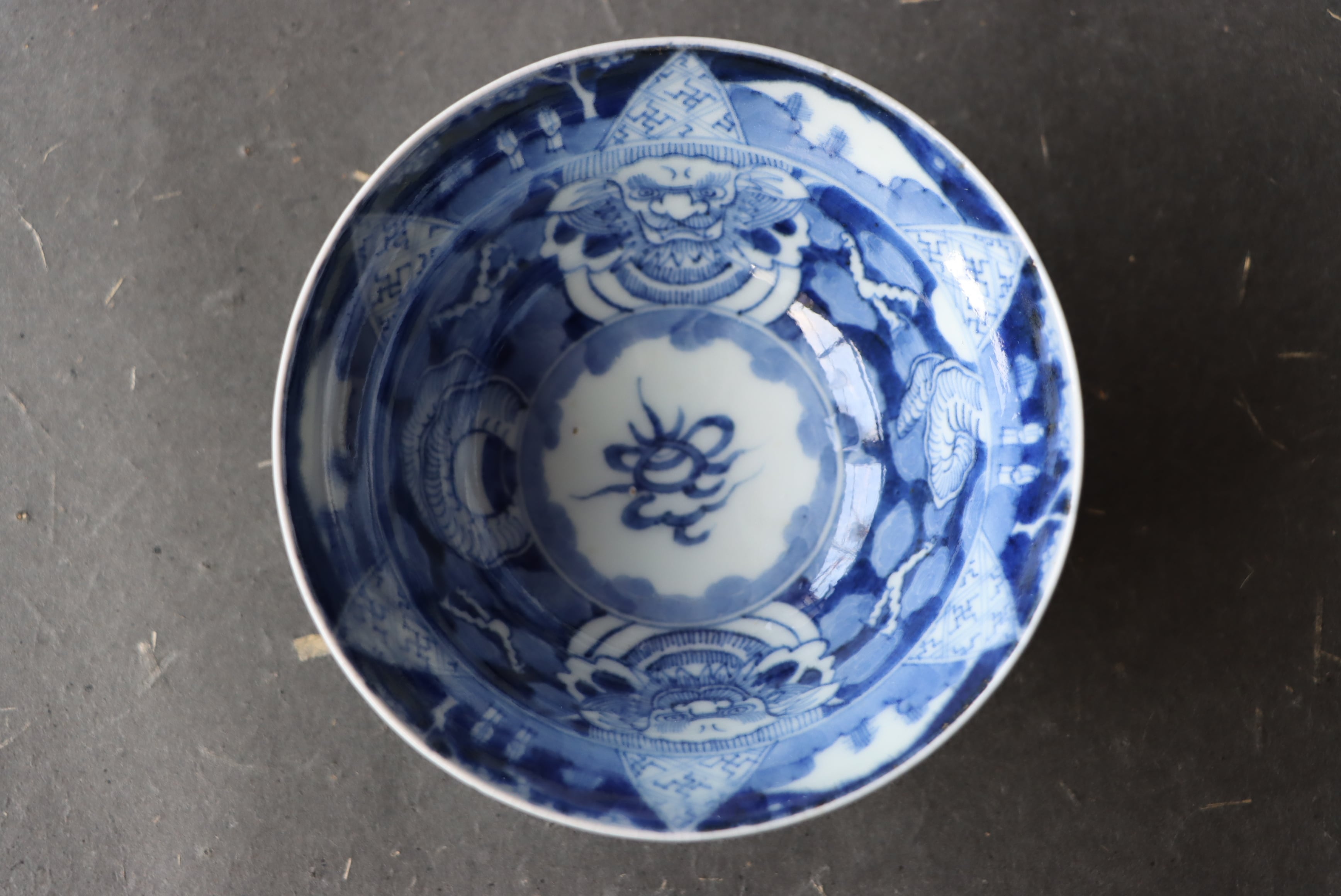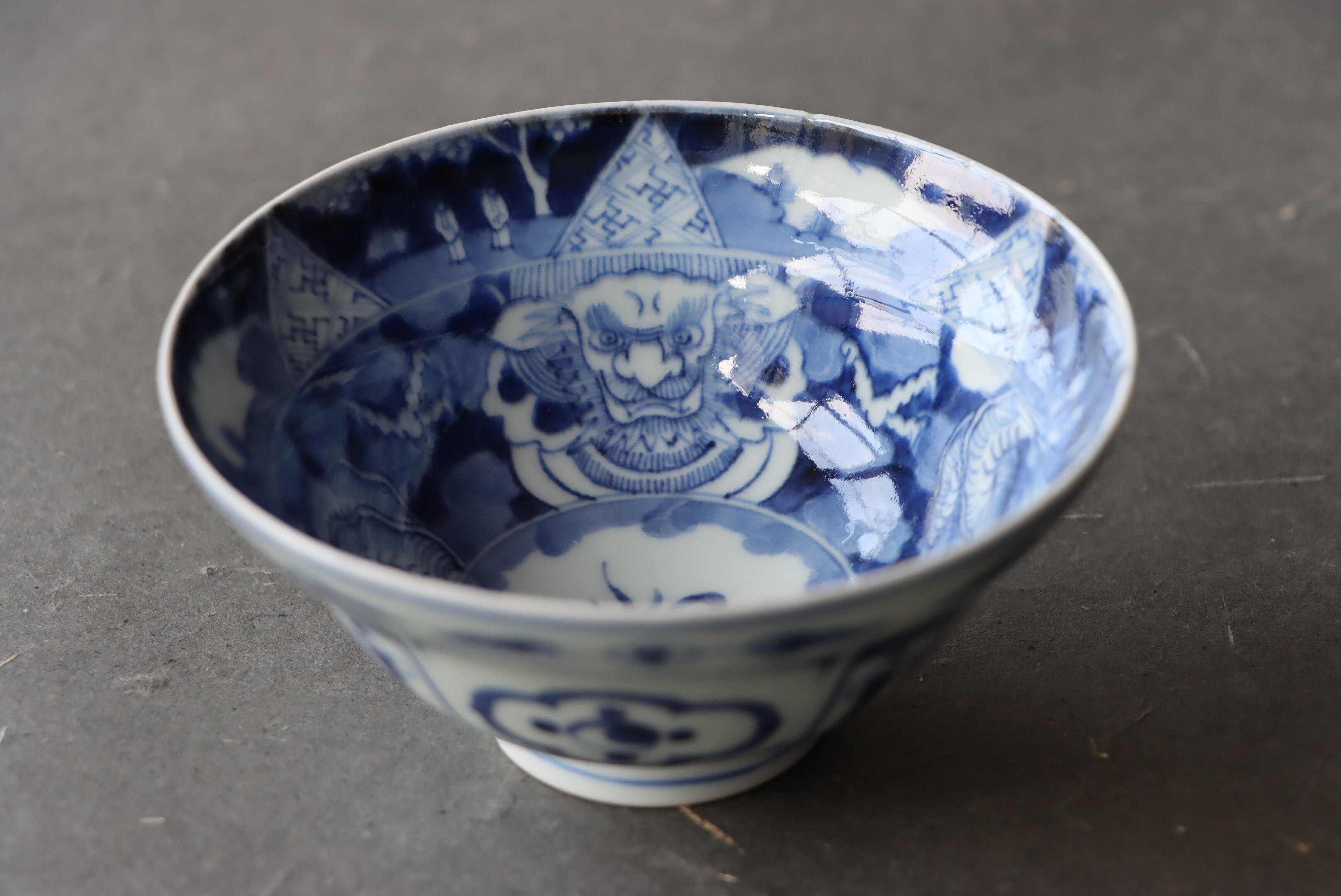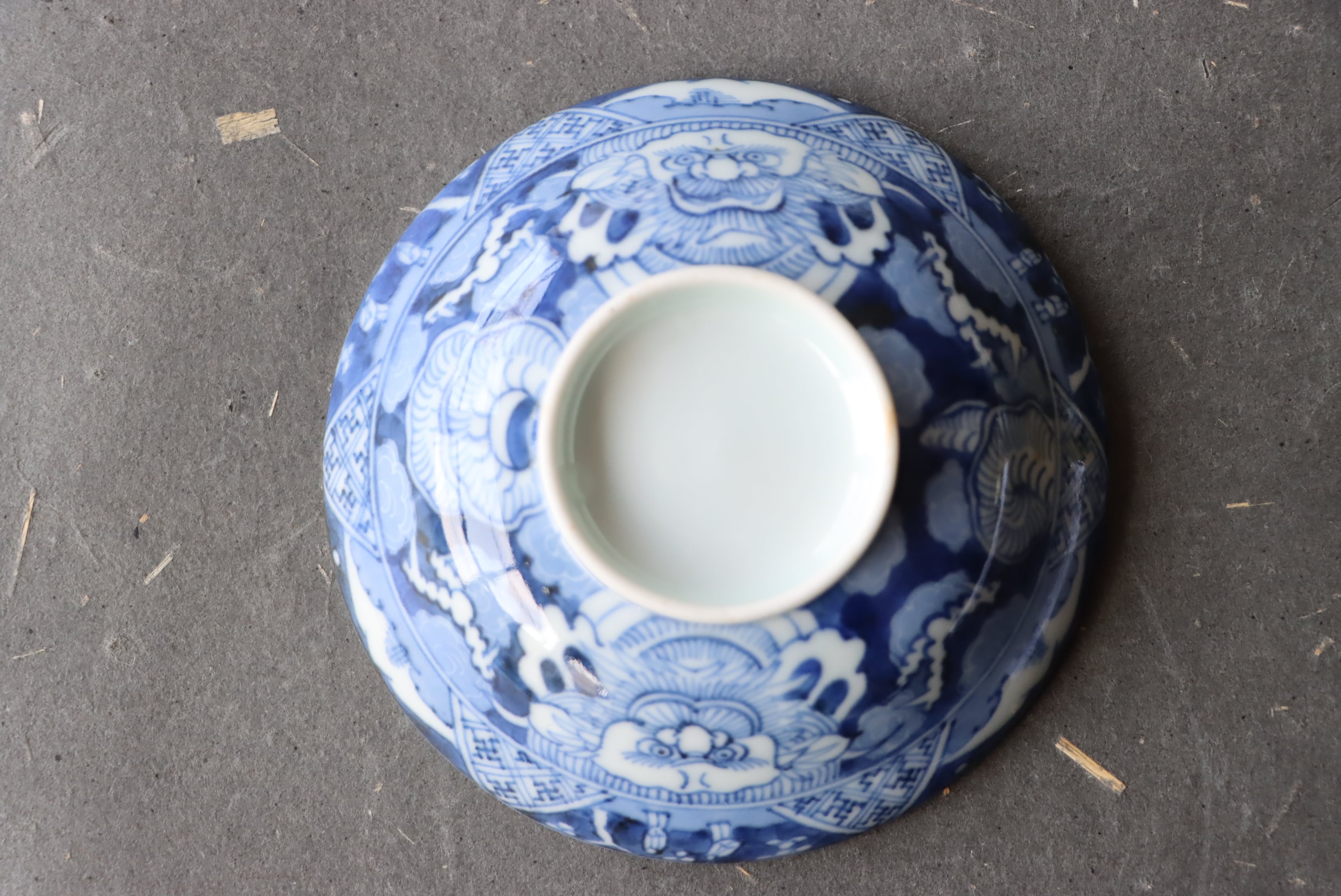 染付 獅子丁子文 蓋茶碗/Blue and white covered bowl