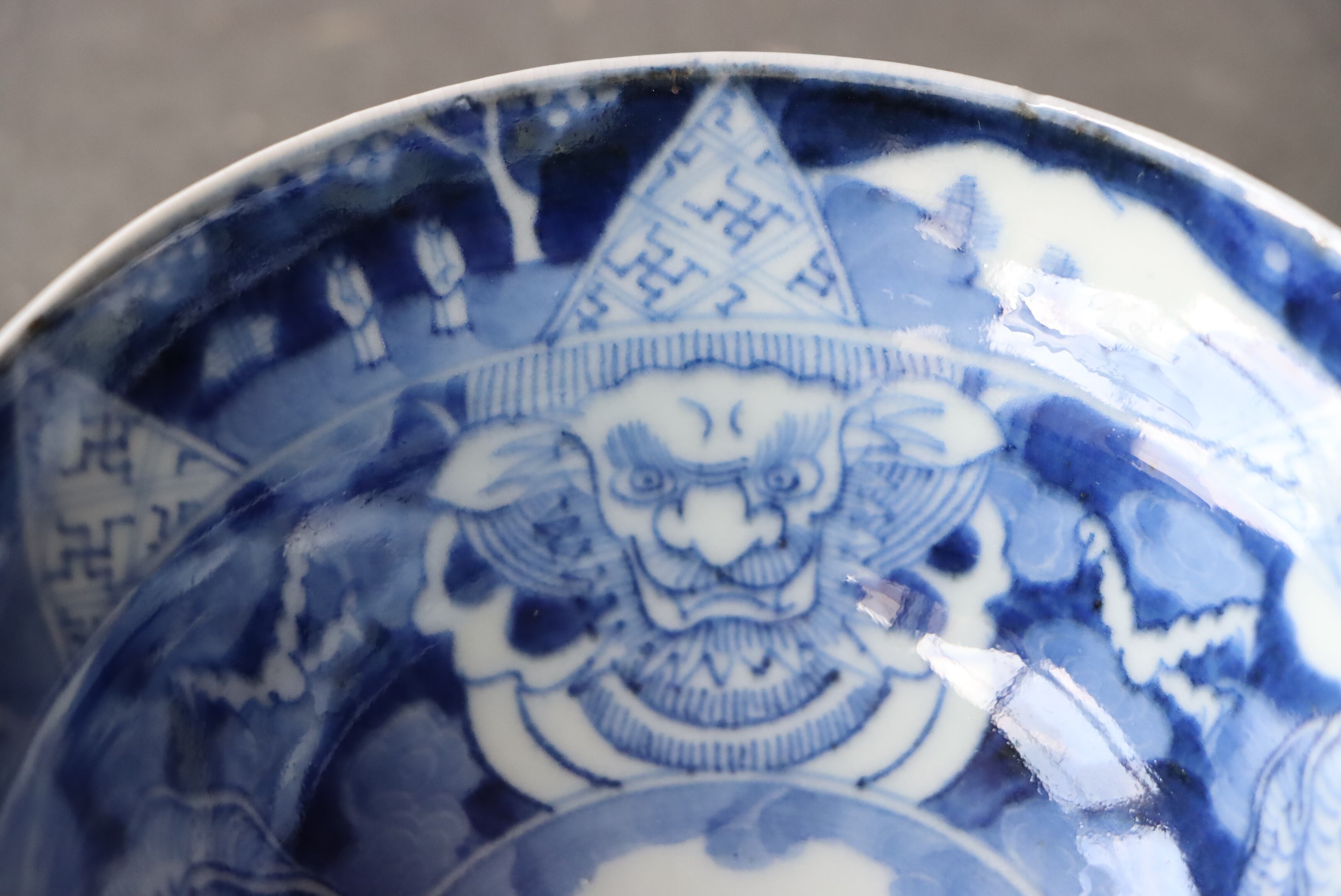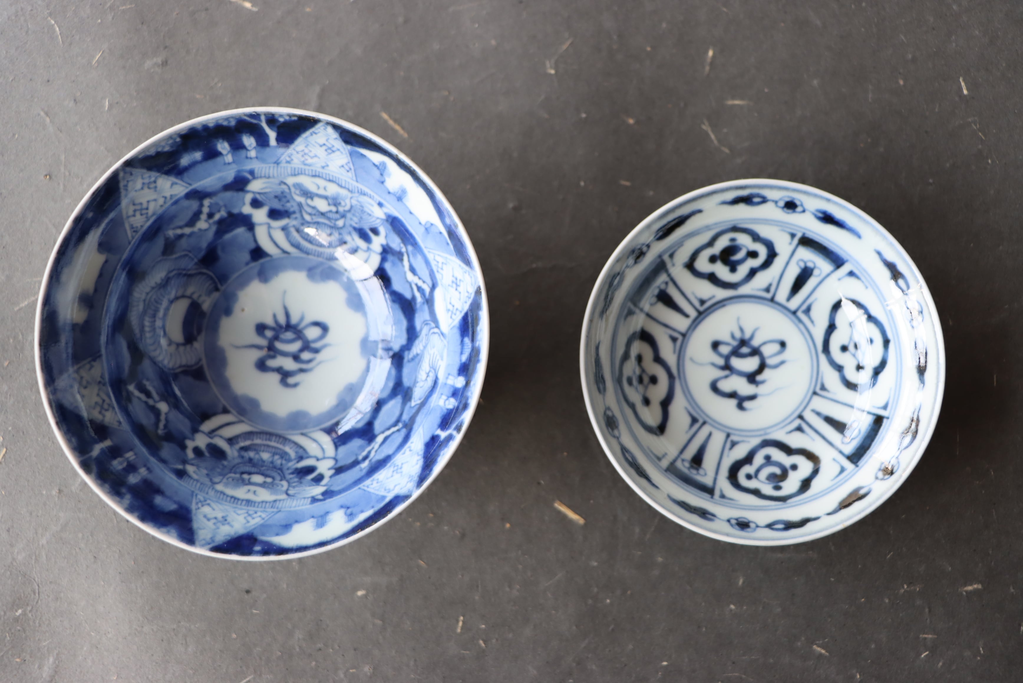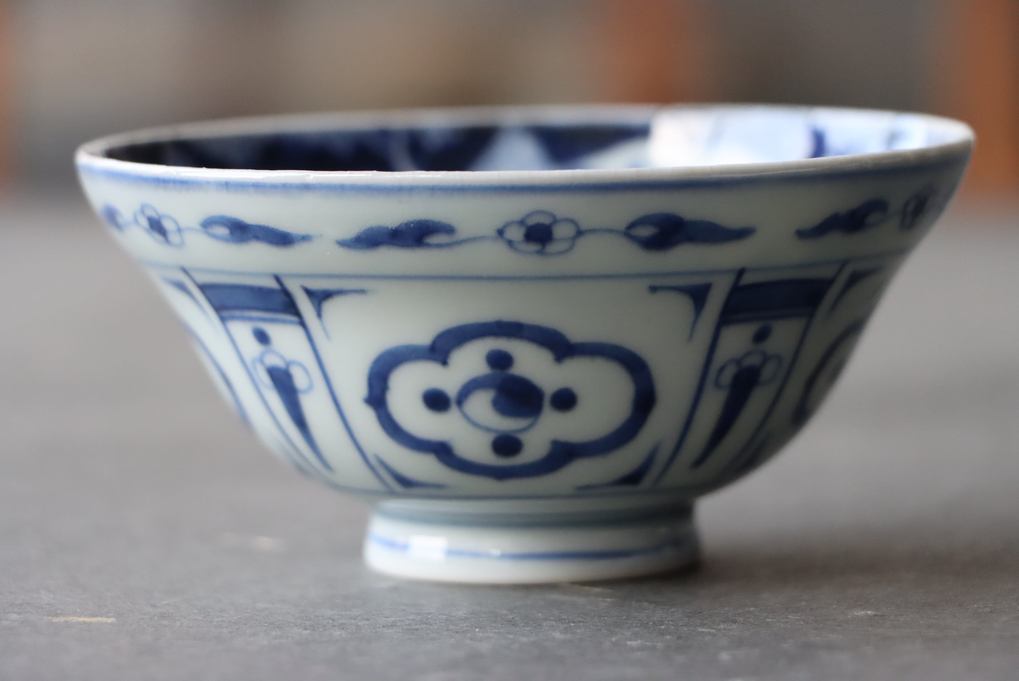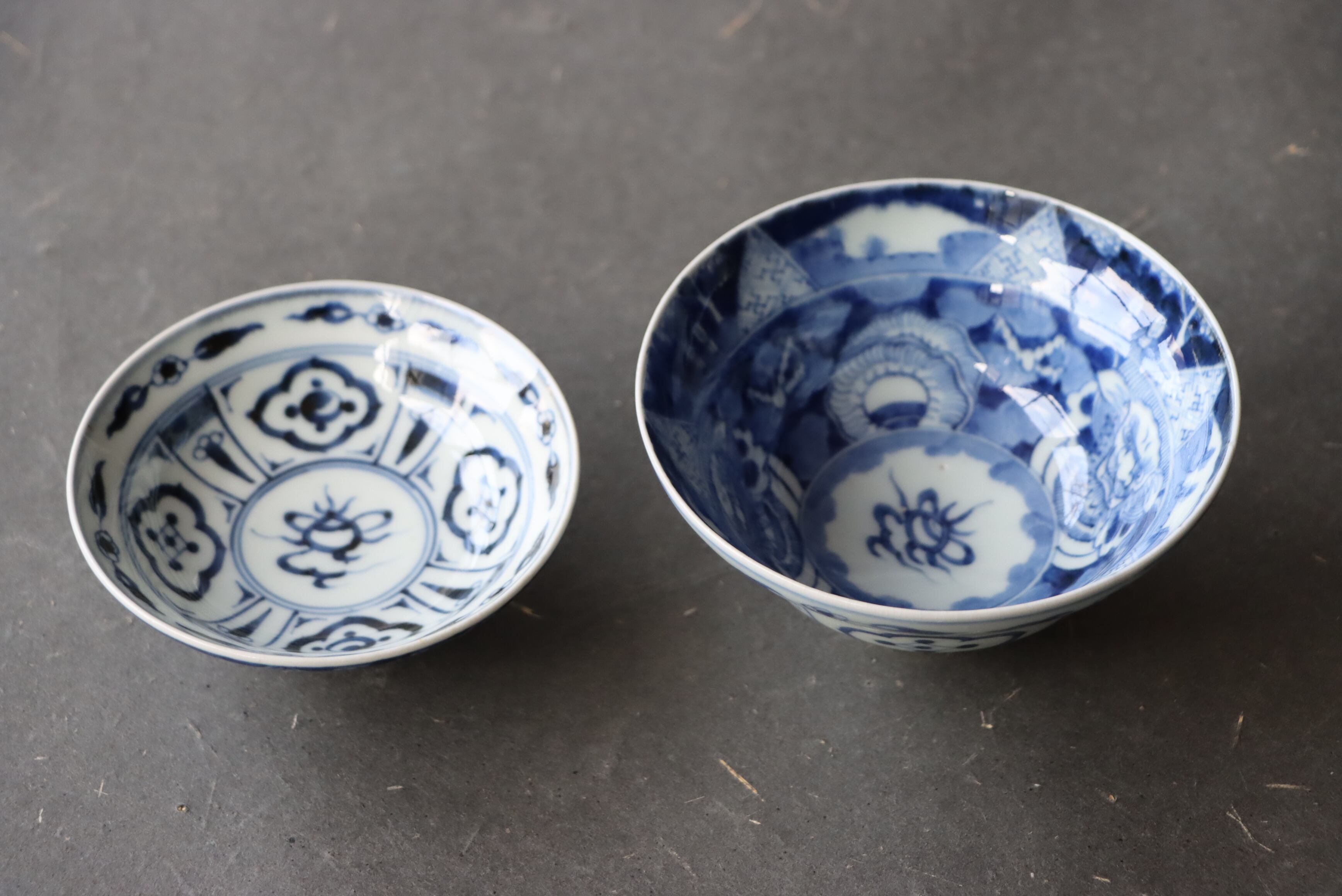 染付 獅子丁子文 蓋茶碗/Blue and white covered bowl