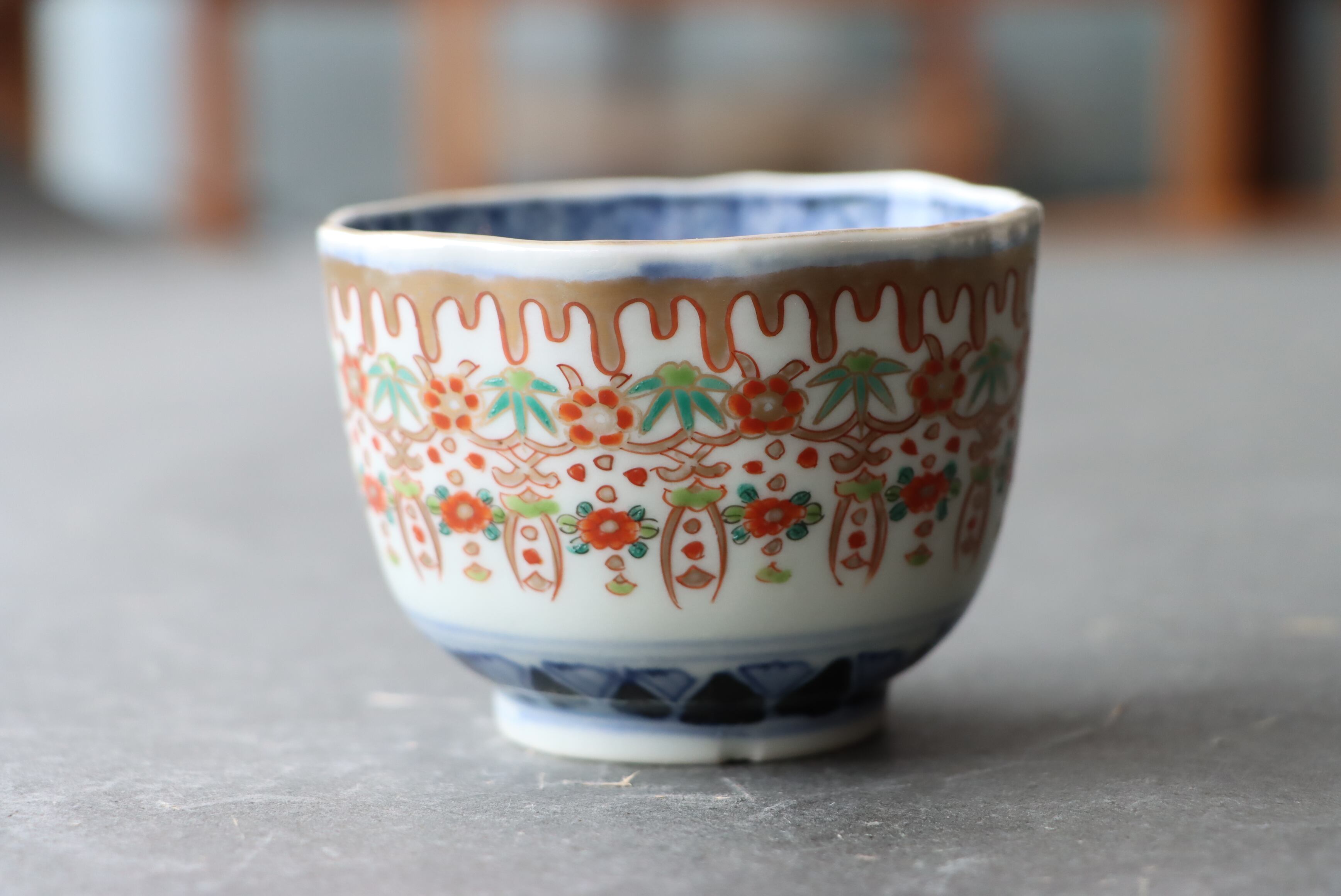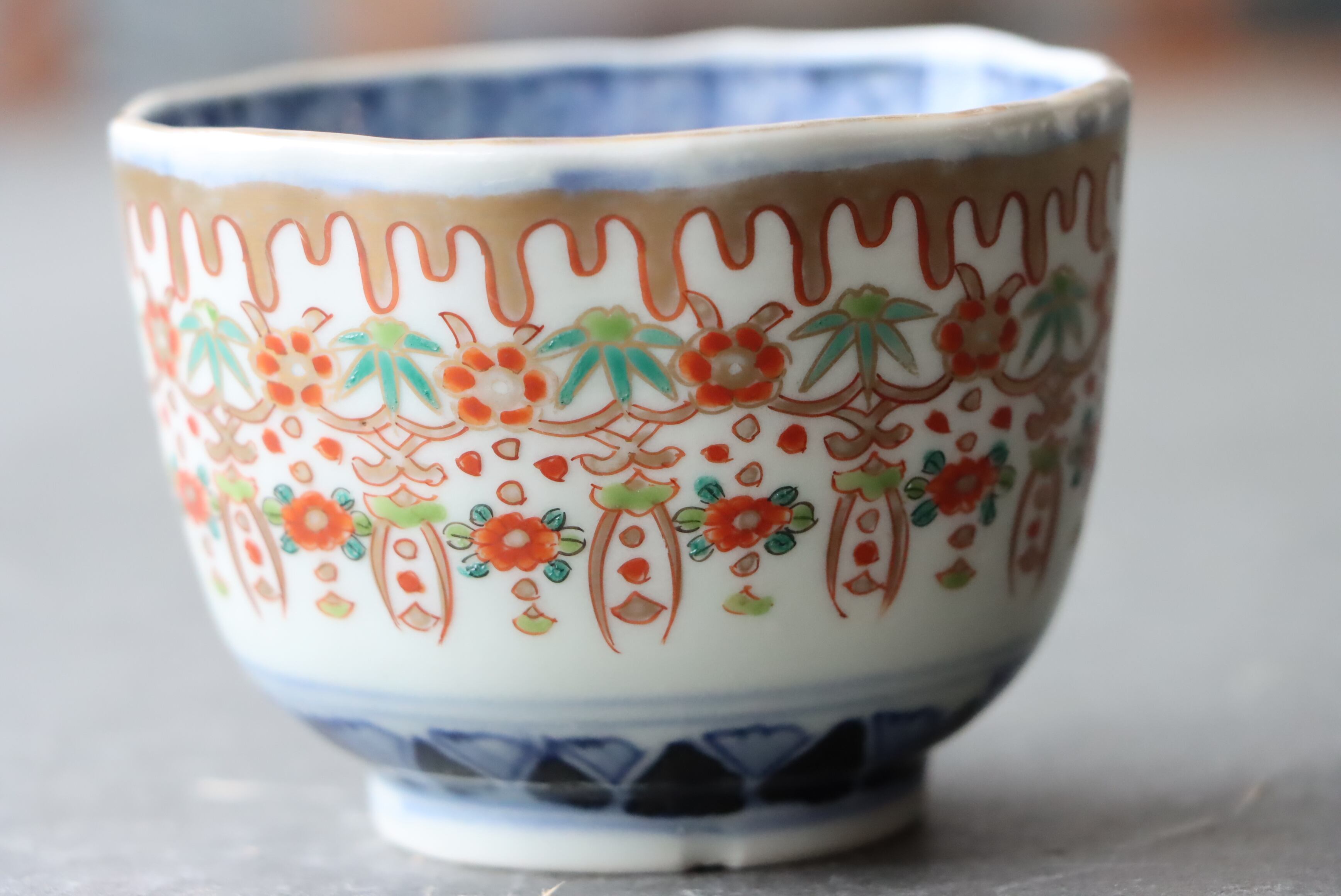 ニュウ 伊万里焼 色絵 壺垂花瓔珞文 湯呑 向付 通りもの B アウトレット