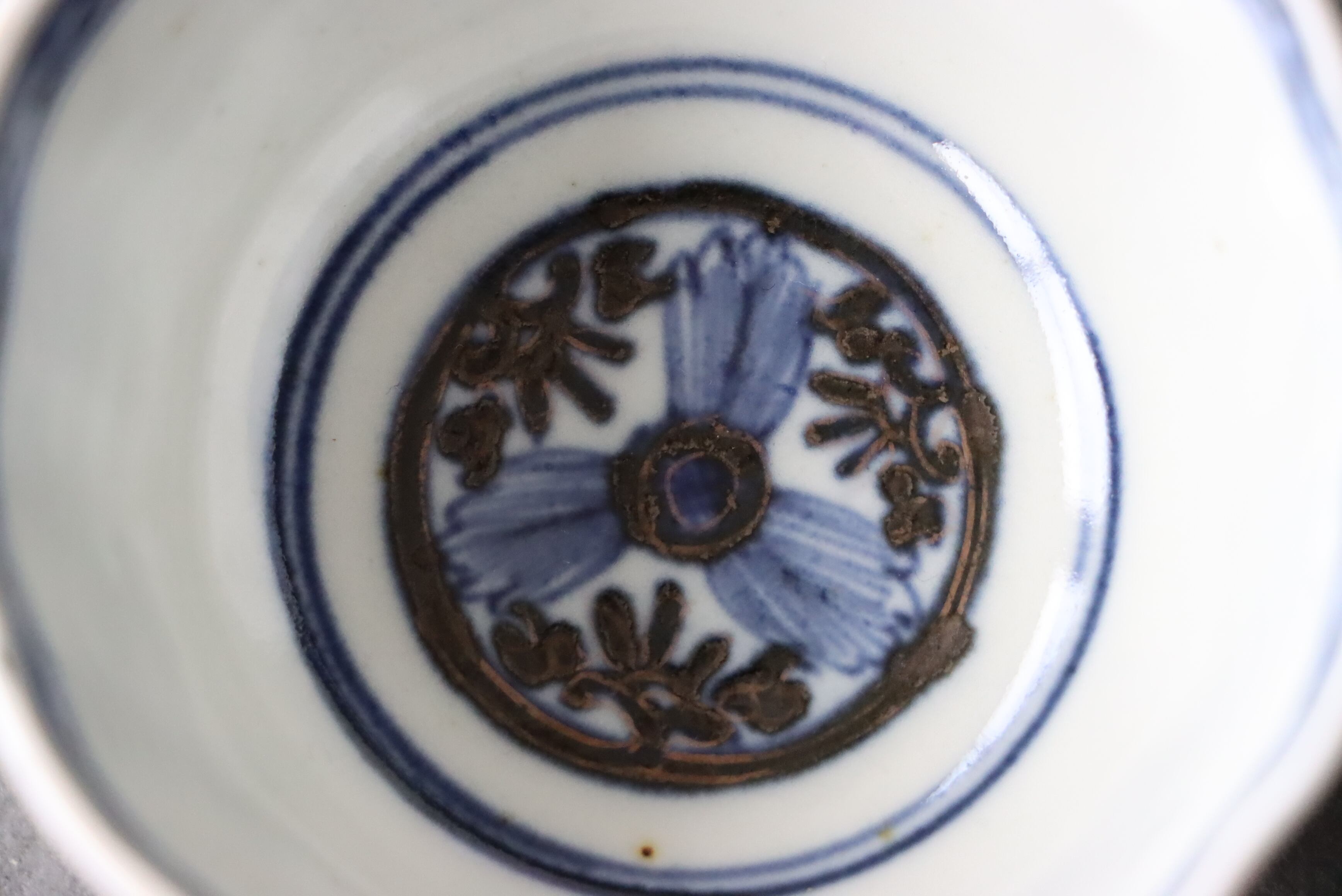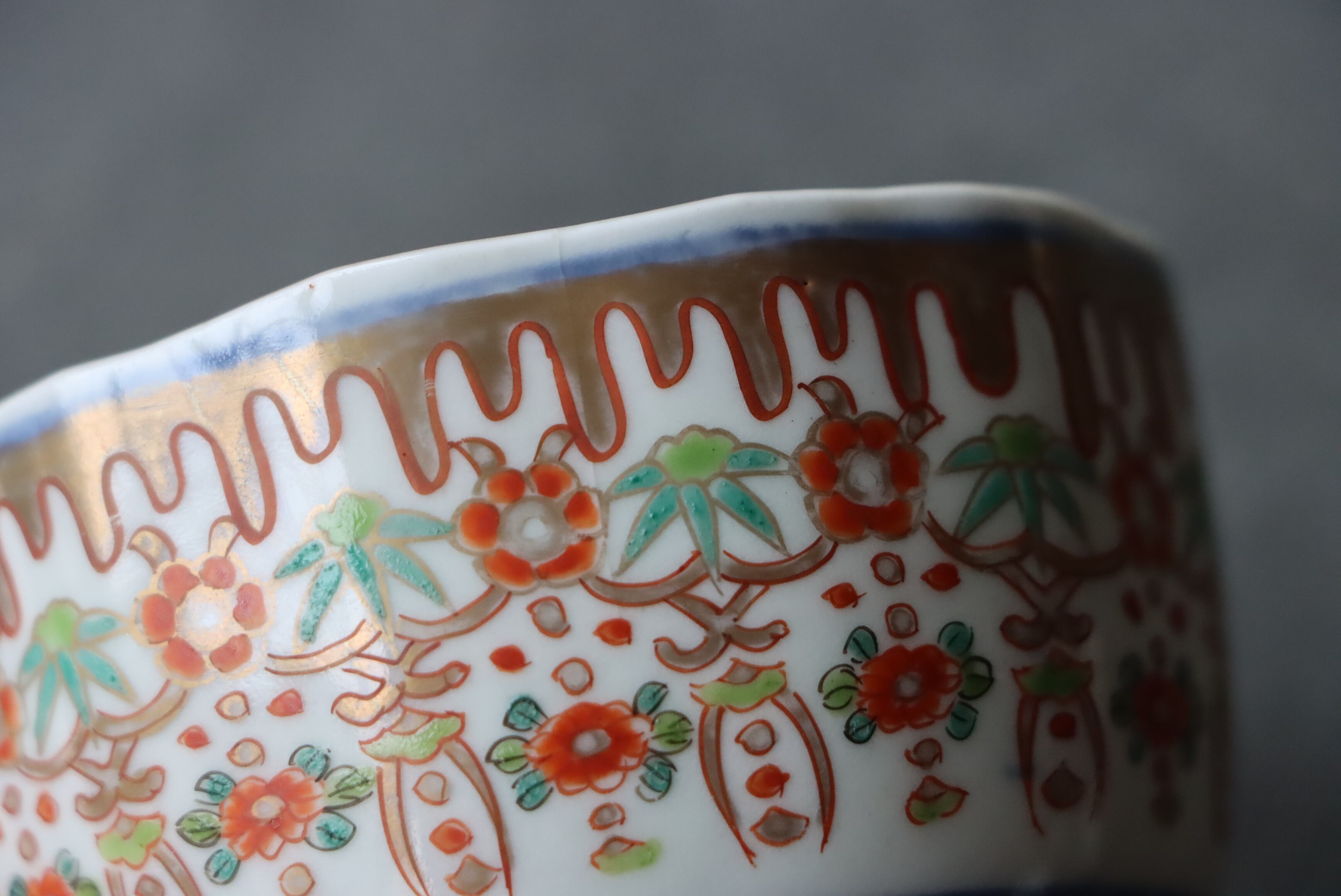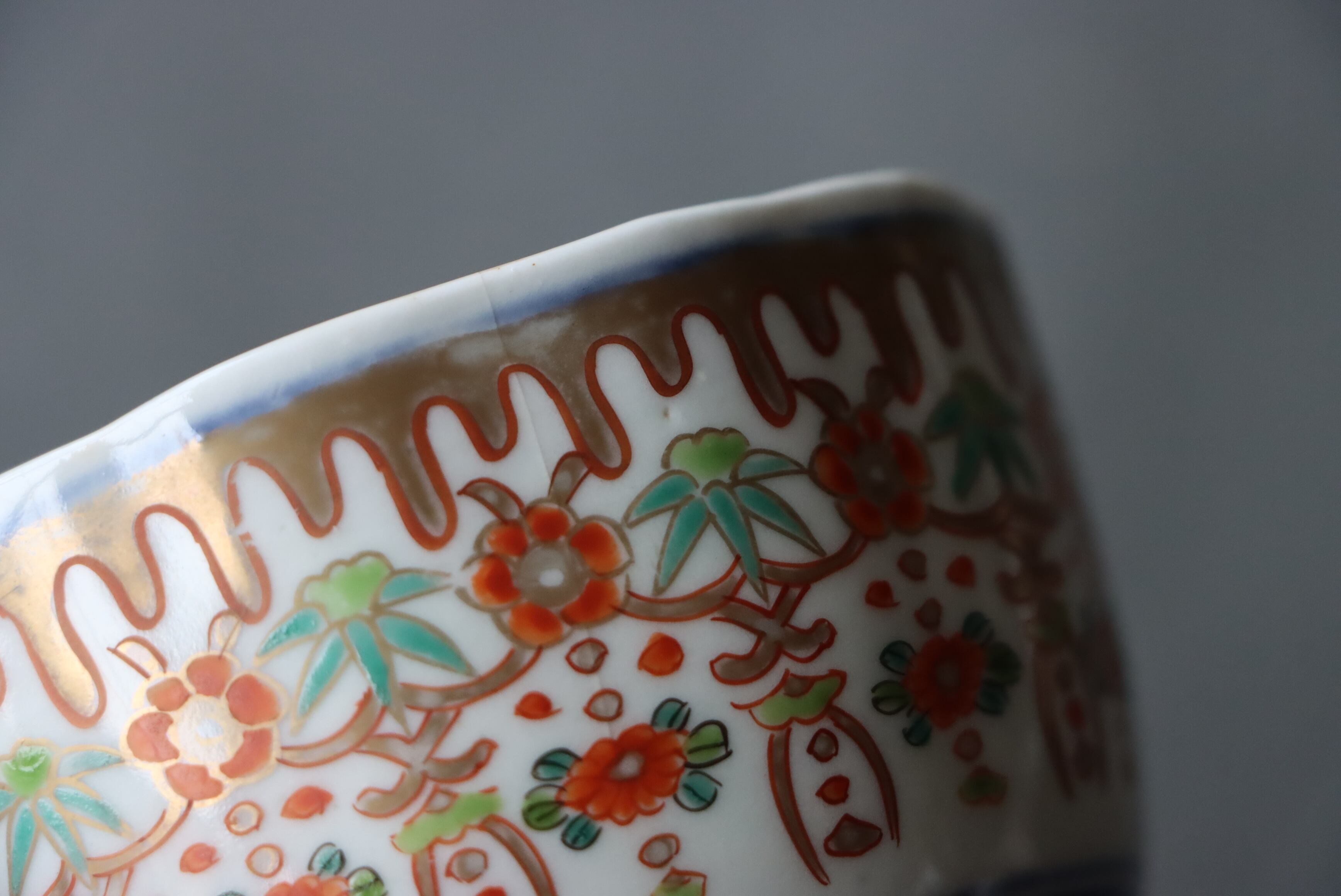 状態:ニュウ×2(約3センチ、約2.5センチ)あり。また、口縁に施されている金彩が剥離している箇所があります。状態は写真でご確認ください。