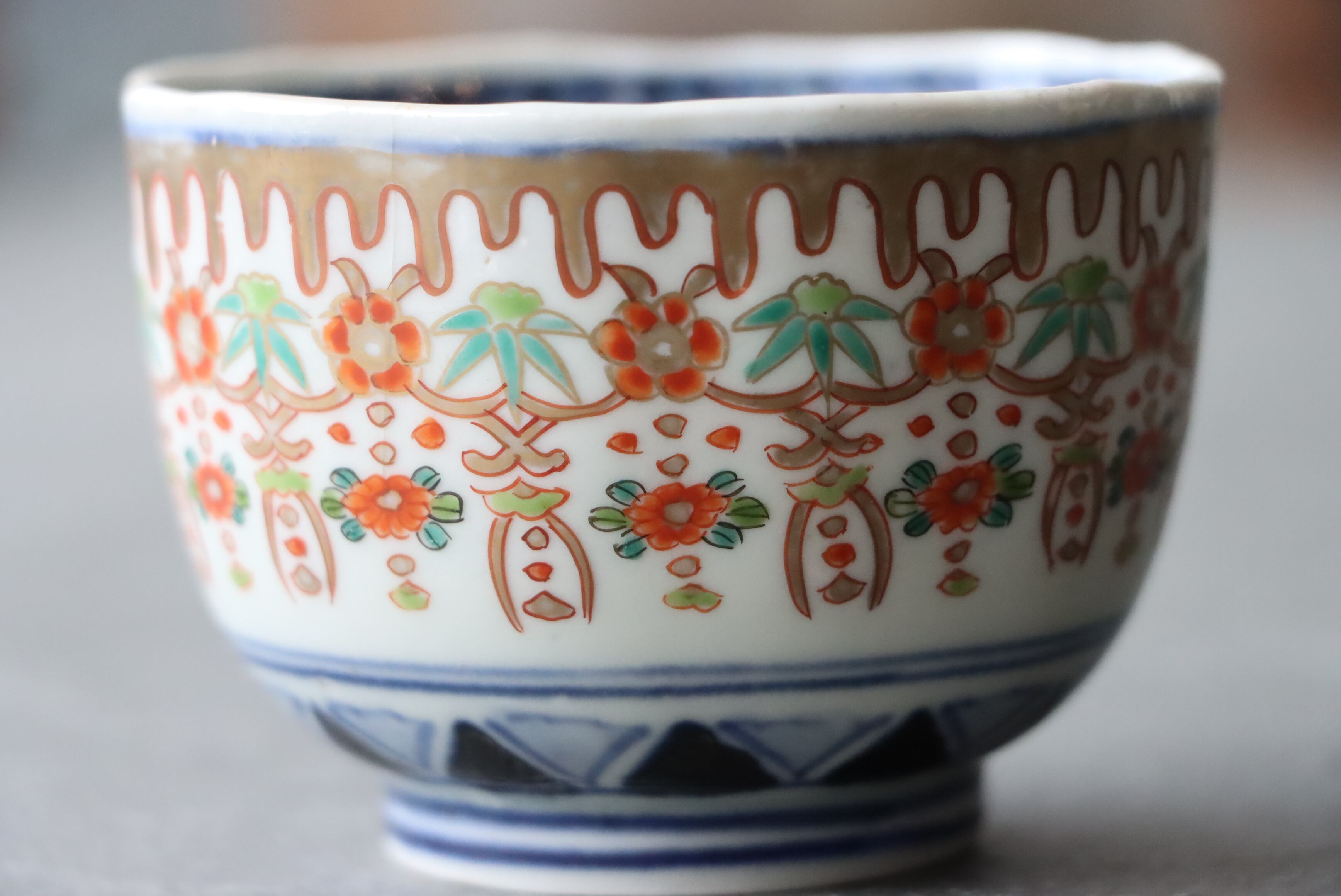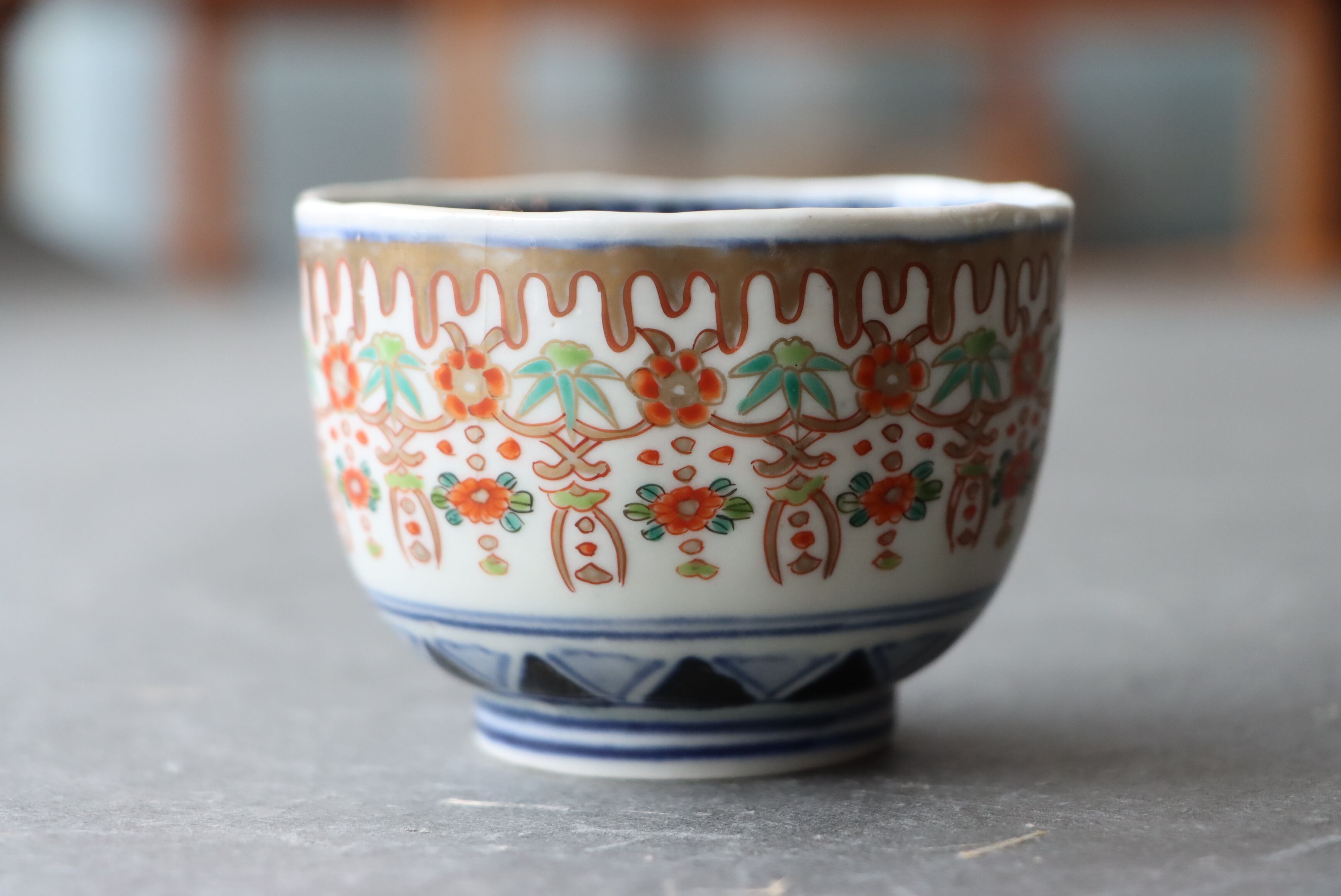 ニュウ ×2 伊万里焼 色絵 壺垂花瓔珞文 湯呑 向付 通りもの C アウトレット