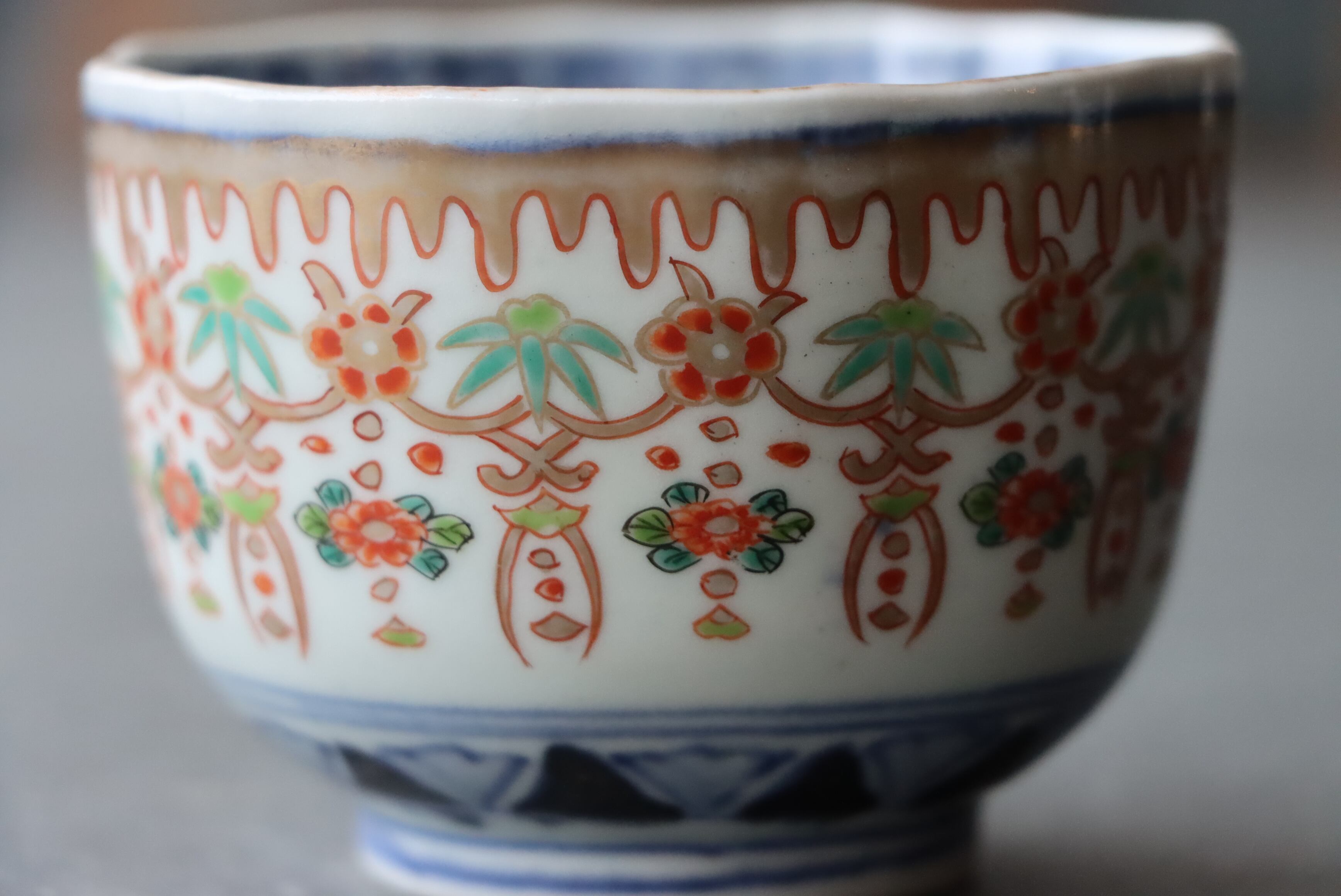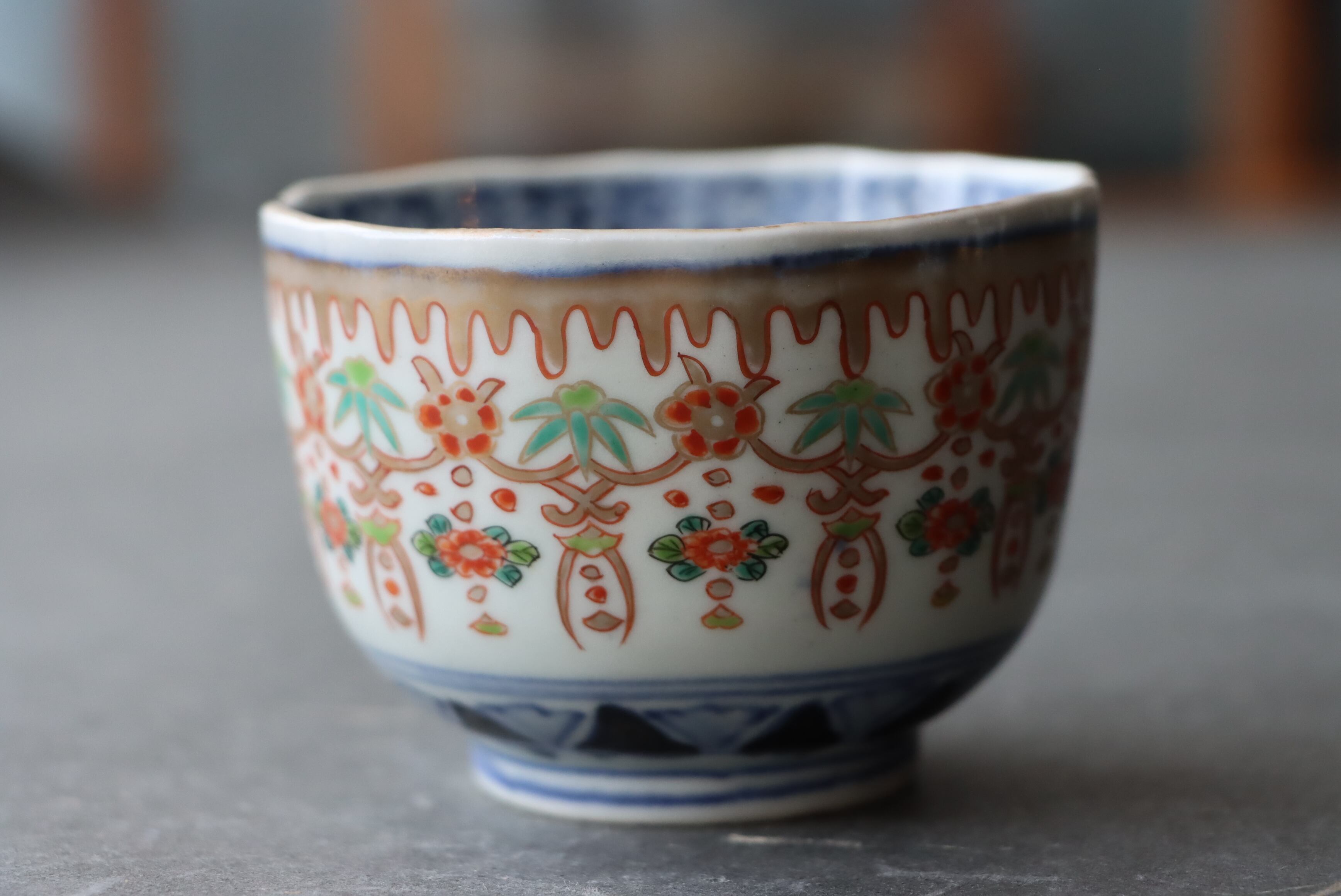 ニュウ 伊万里焼 色絵 壺垂花瓔珞文 湯呑 向付 通りもの D アウトレット