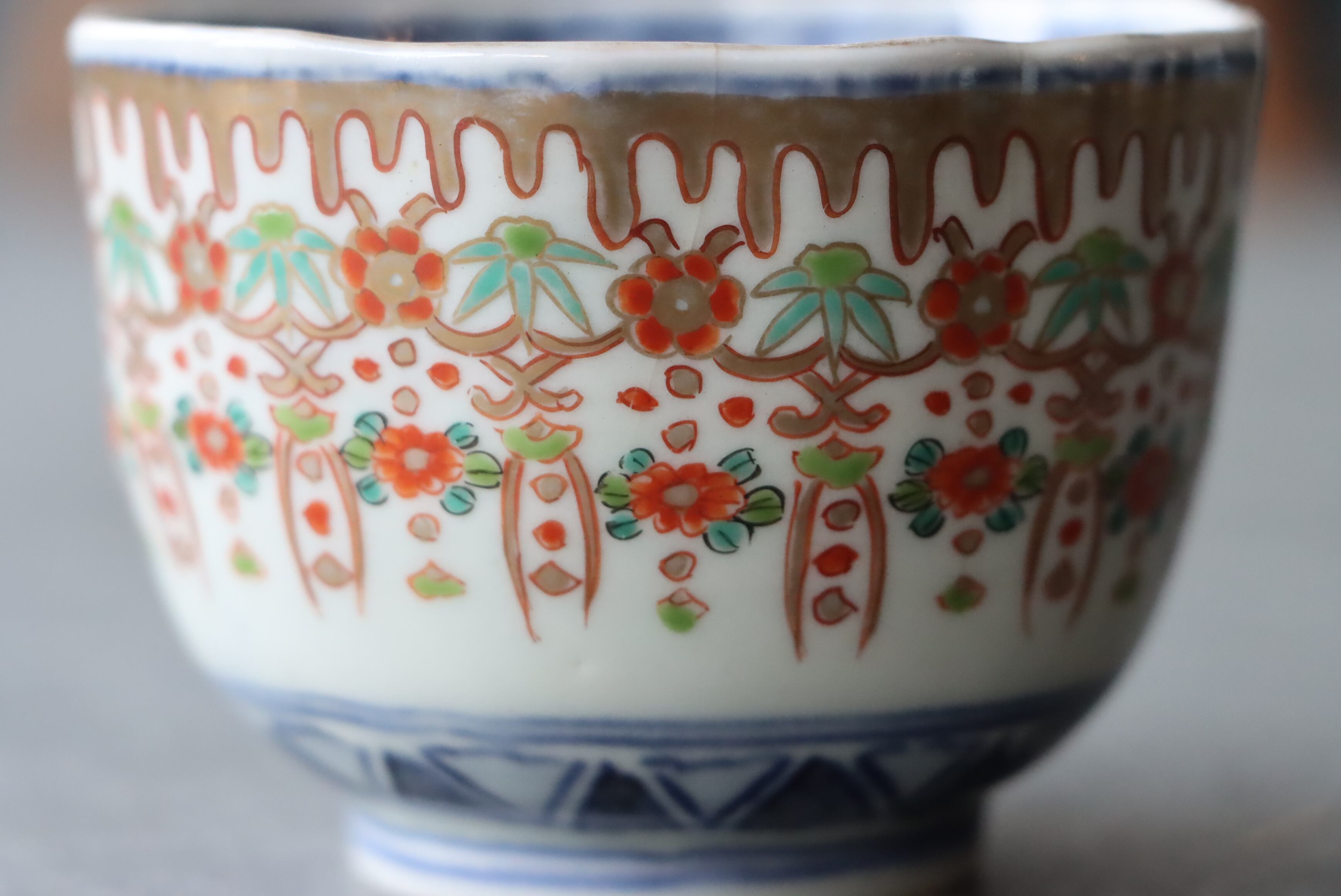 カケ ニュウ ×3 伊万里焼 色絵 壺垂花瓔珞文 湯呑 向付 通りもの D アウトレット