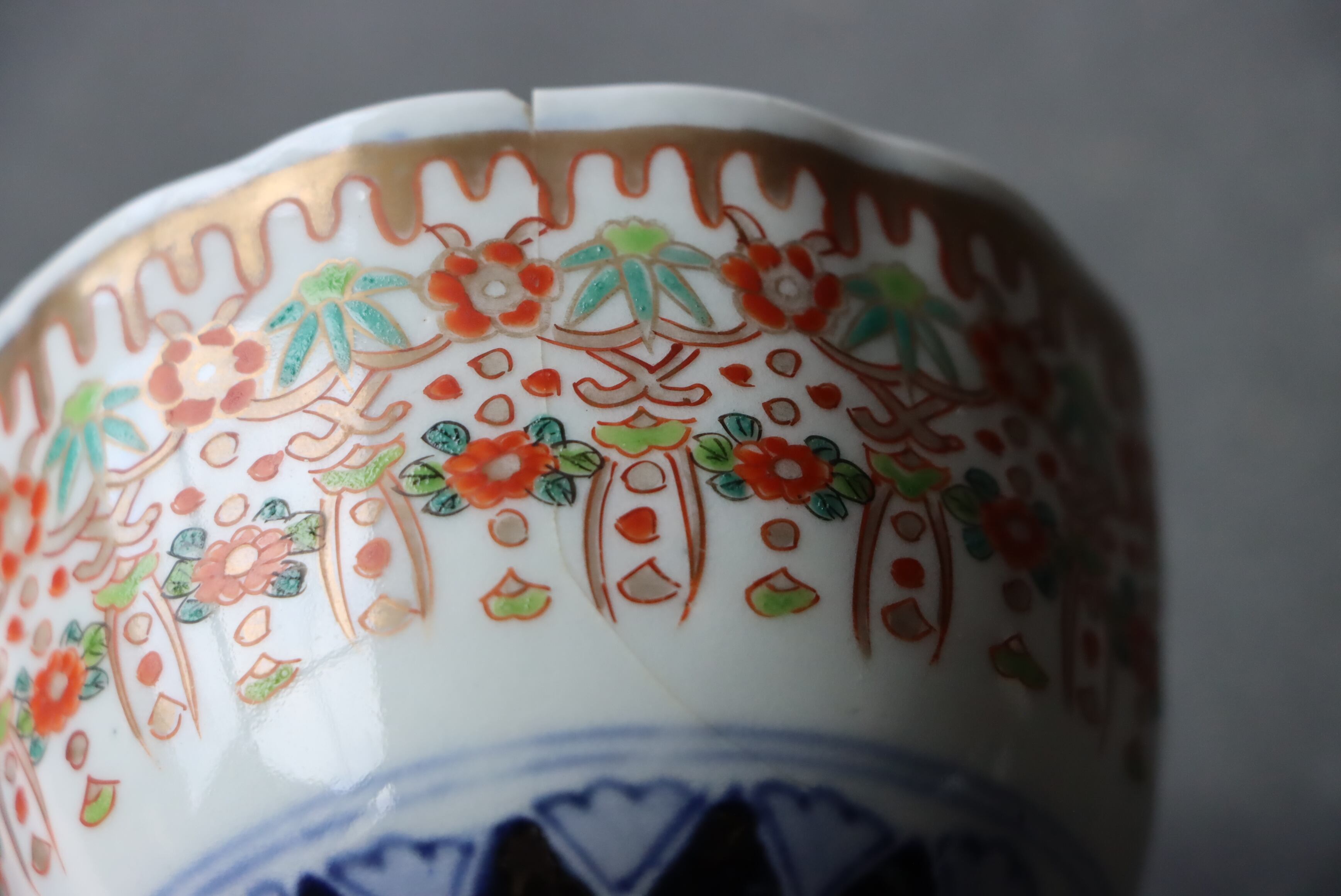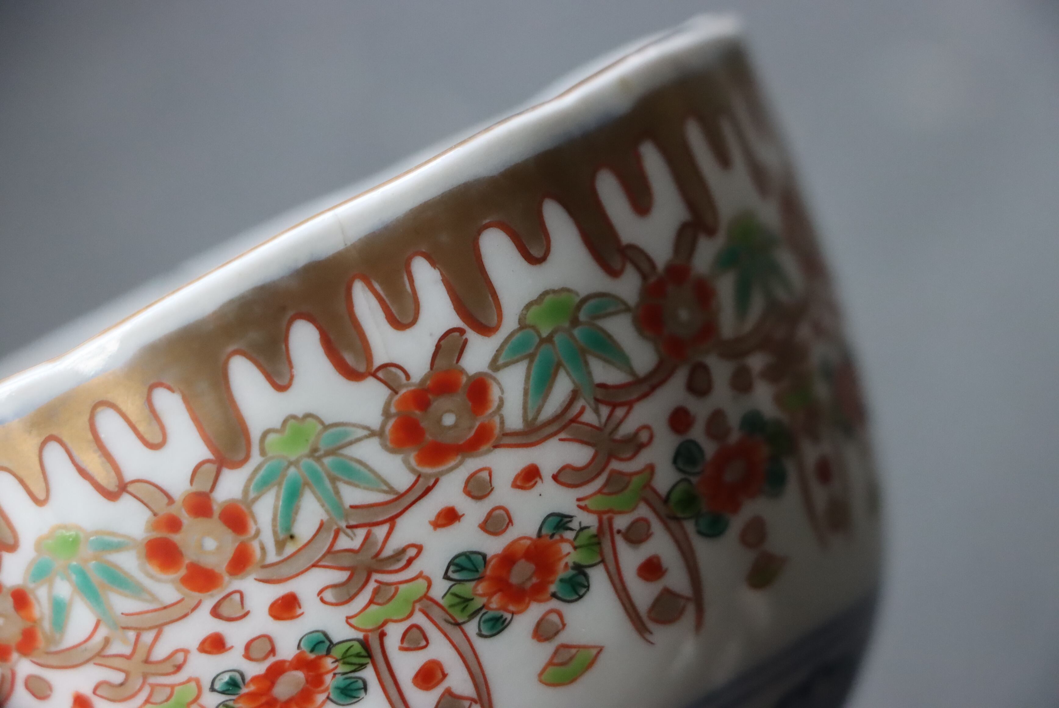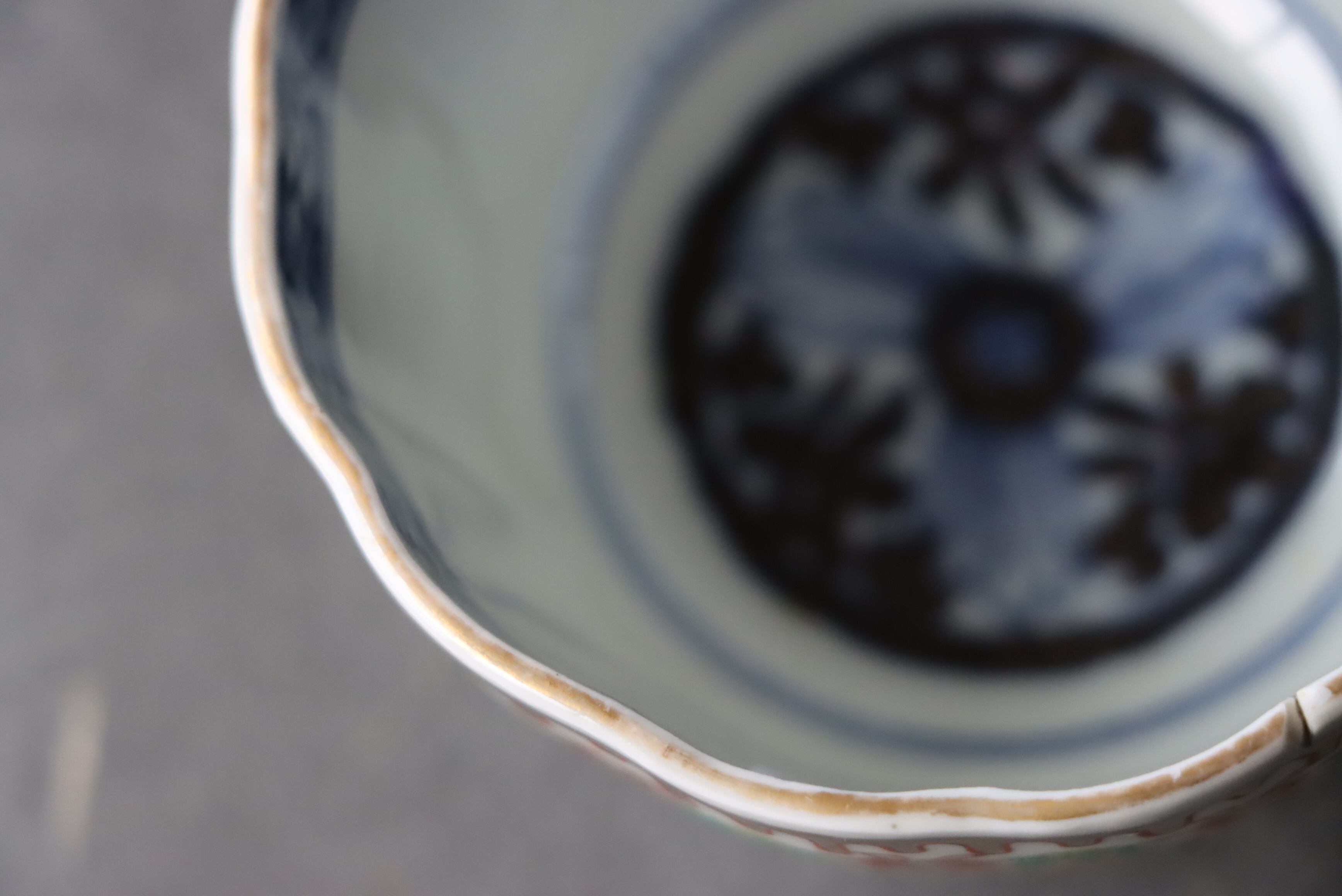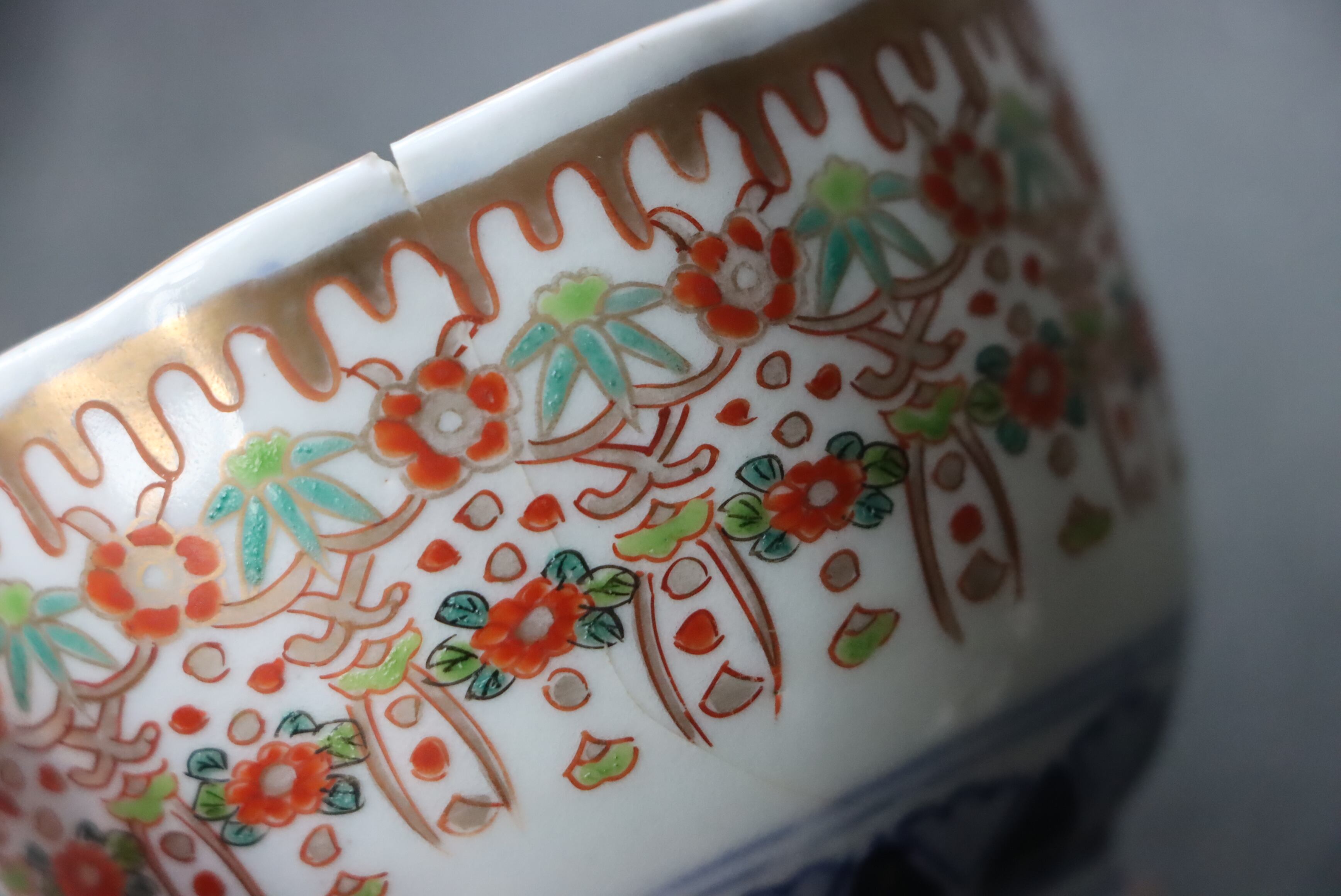 状態:カケ、ニュウ×2(約5センチ、約3センチ)あり。ニュウに時代色が入った箇所がございます。また、口縁に施されている金彩が剥離している箇所があります。状態は写真でご確認ください。