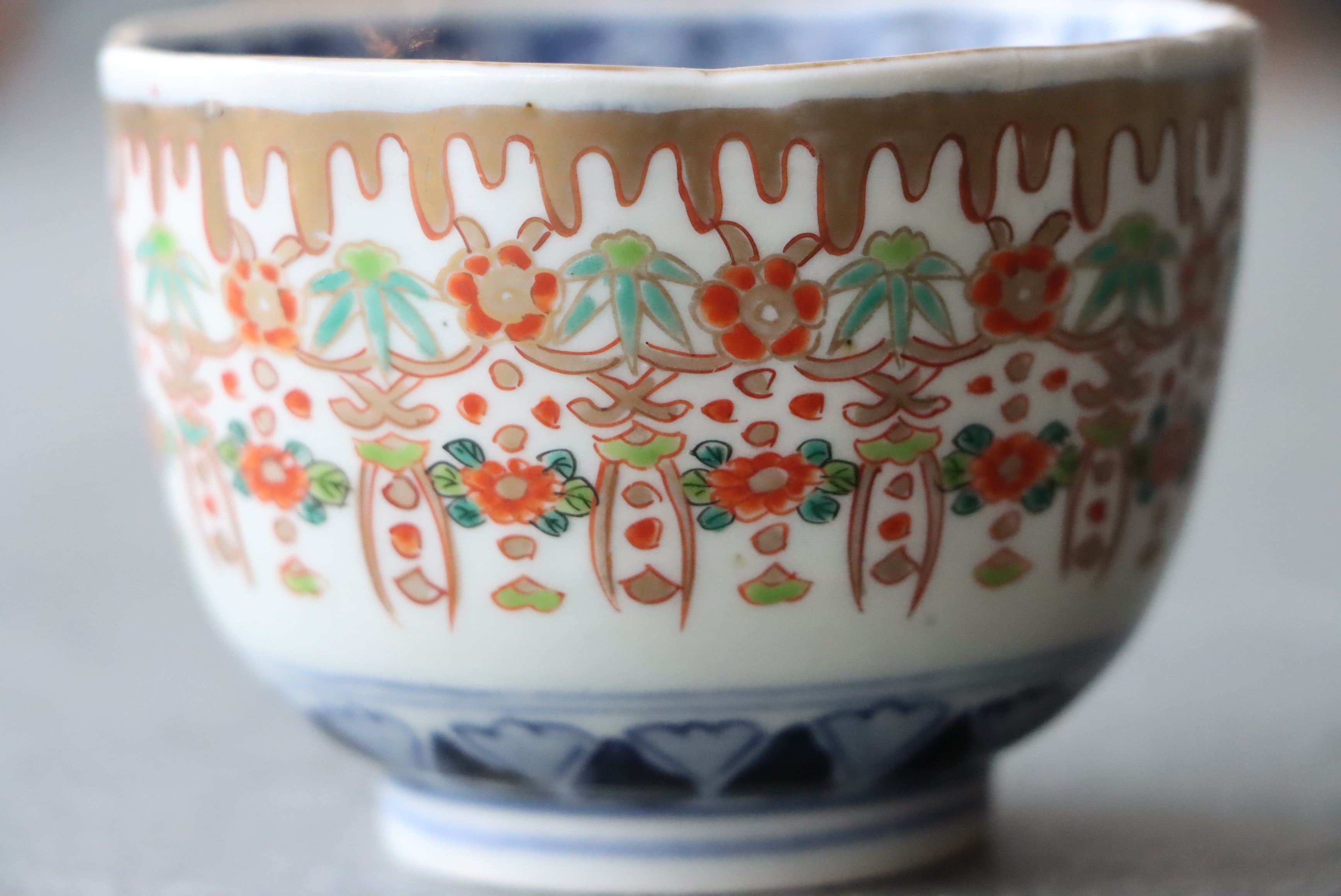 カケ ニュウ ×2 伊万里焼 色絵 壺垂花瓔珞文 湯呑 向付 通りもの F アウトレット
