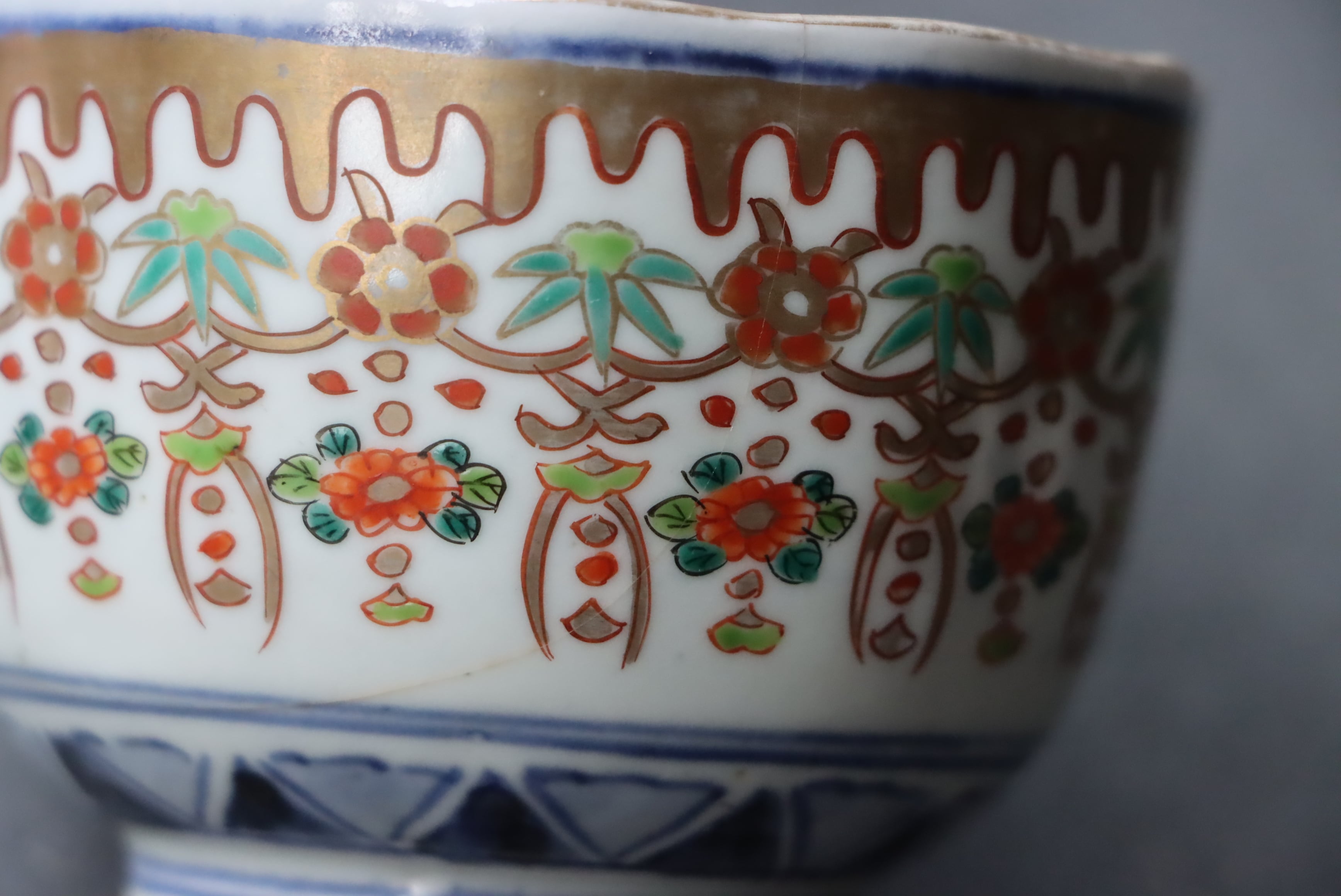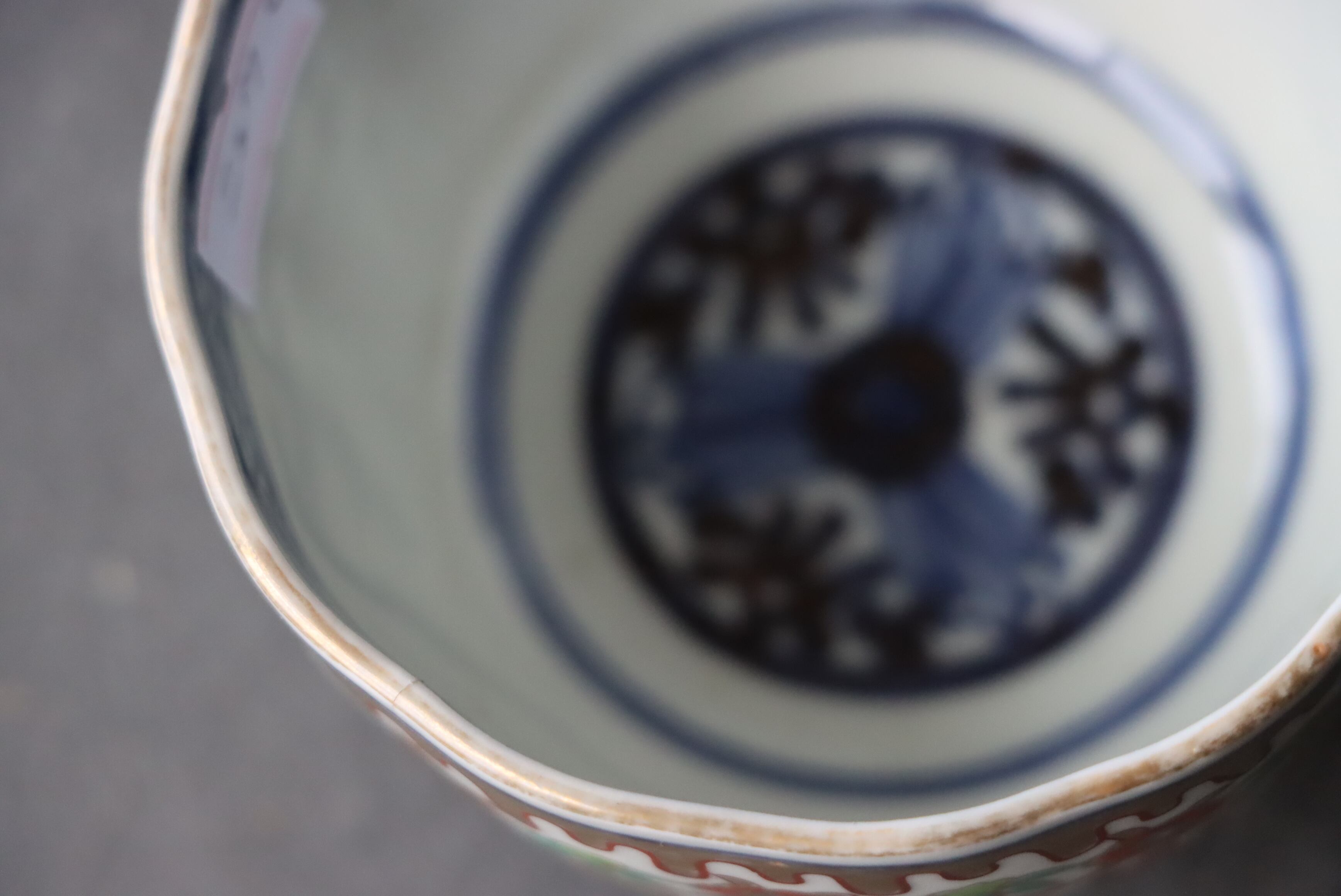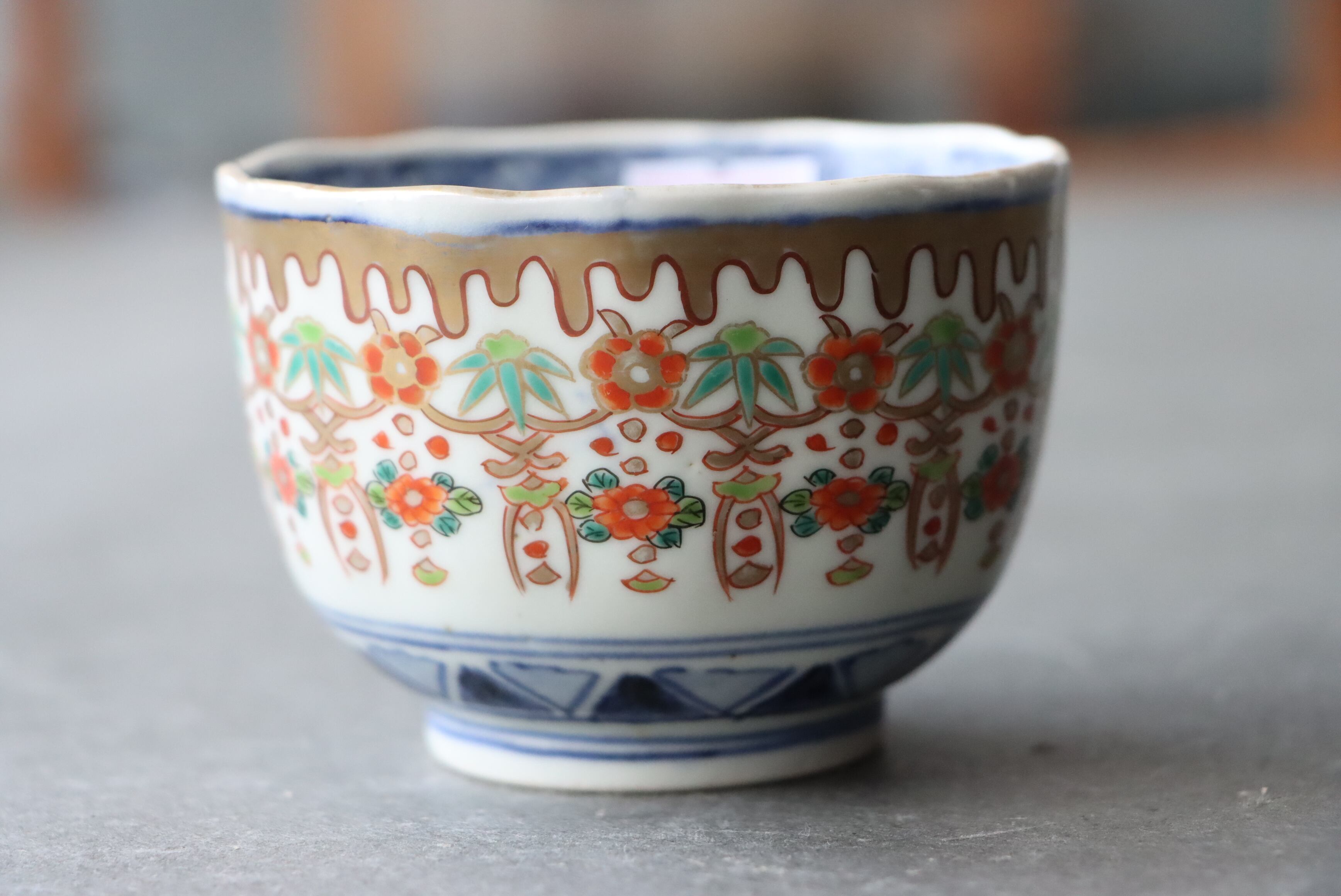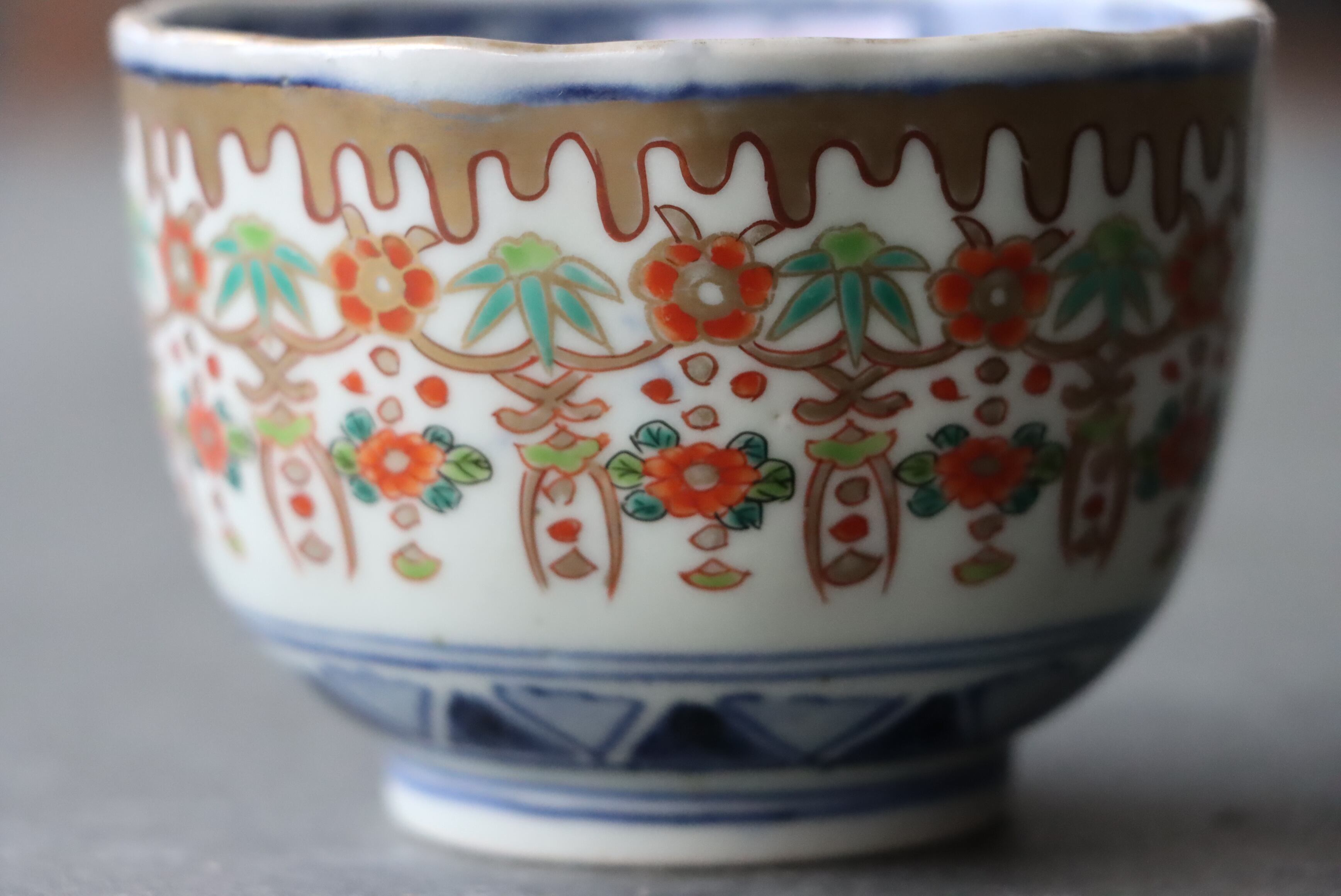 また、口縁に施されている金彩が剥離している箇所があります。状態は写真でご確認ください。