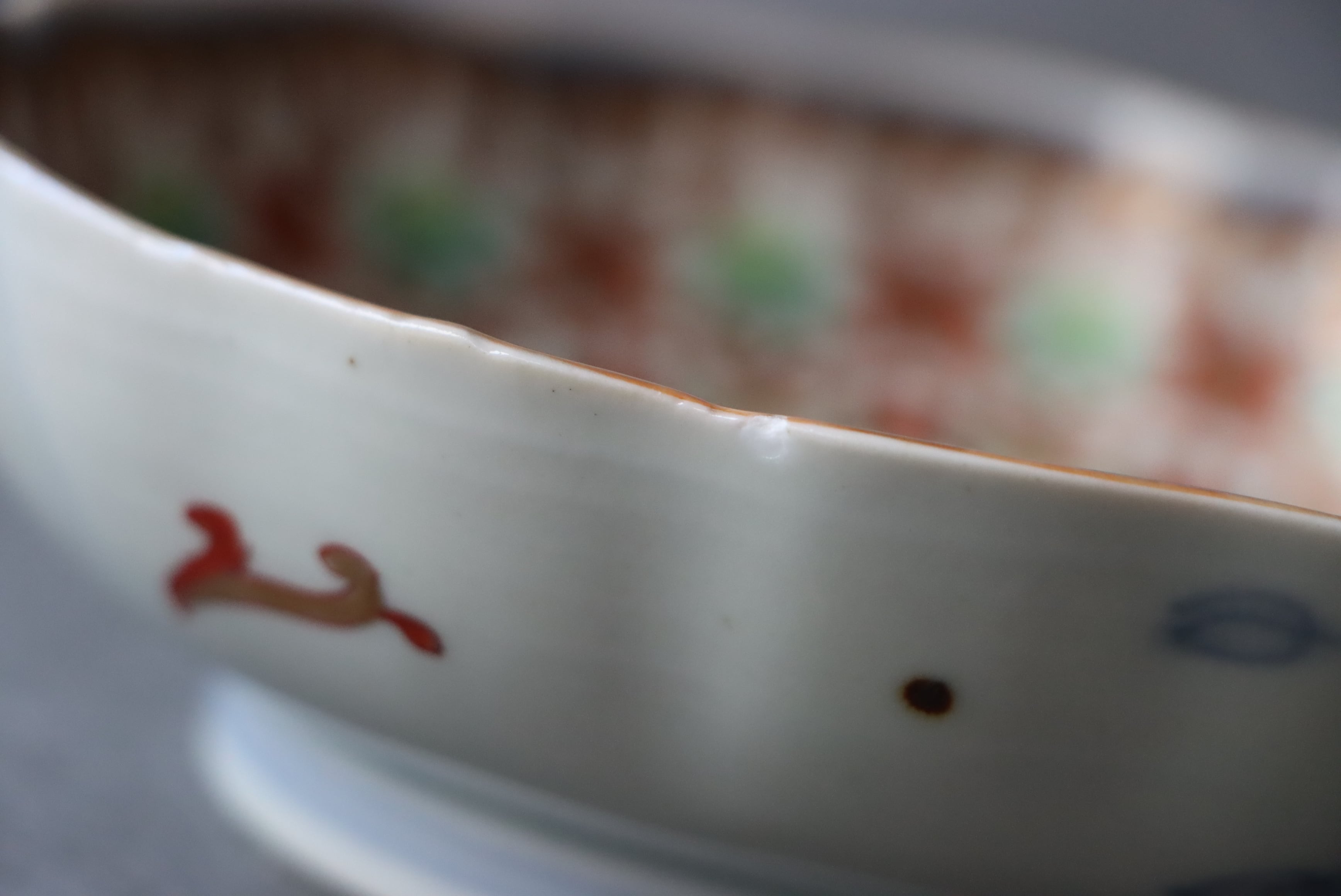 焼成時に窯の中でできる鉄分、くっつき、かまきず、ピンホール、経年による釉薬の薄れがございます。また、一枚一枚手描き、手作りですので器のサイズ(ミリ)、色味、描かれている文様の大きさなど個体差があり、ひとつとして同じものはございません。そういった時代感、個性をご理解いただき、楽しんでくだされば幸いです。電子レンジや食器洗い乾燥機のご使用はお控えください。