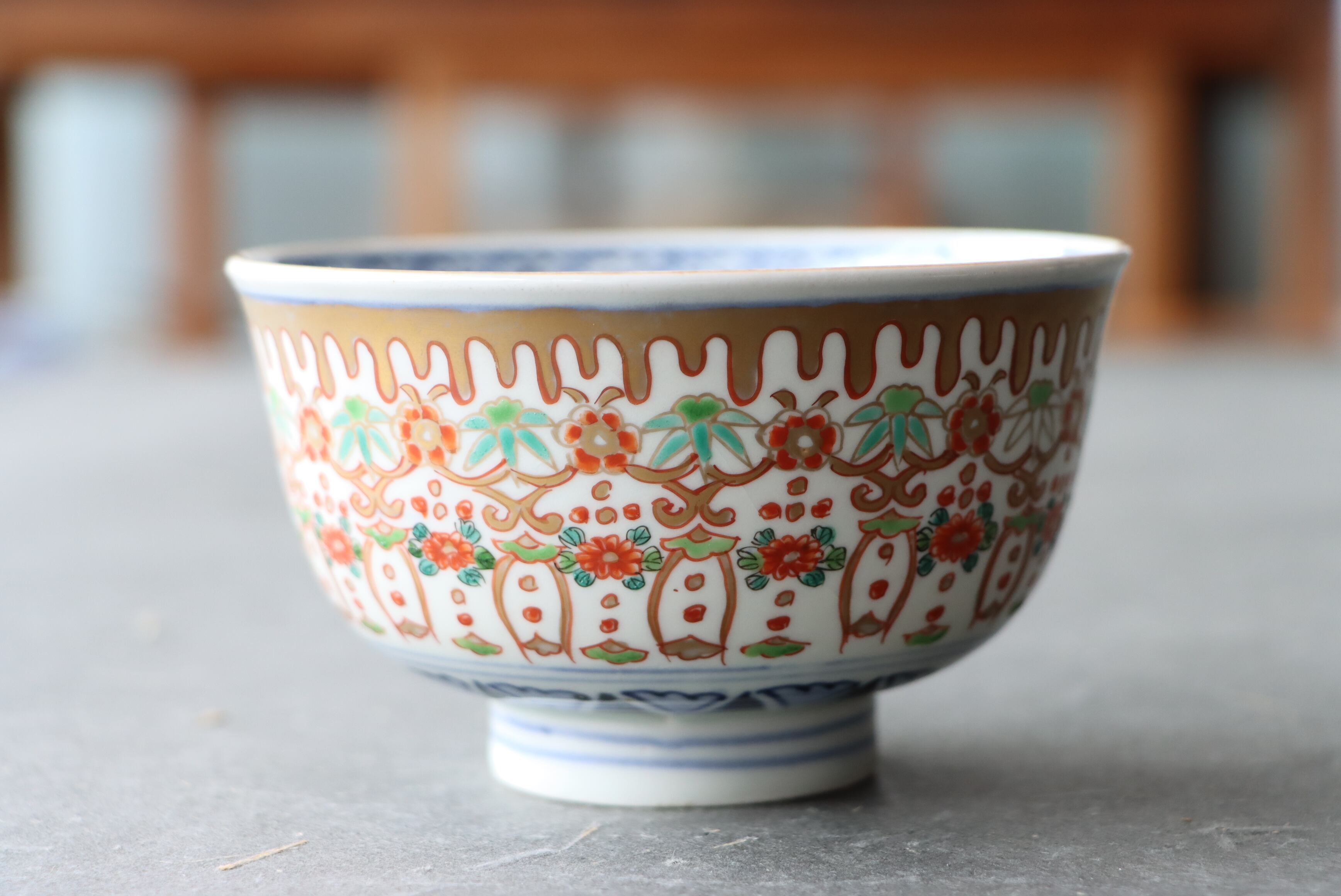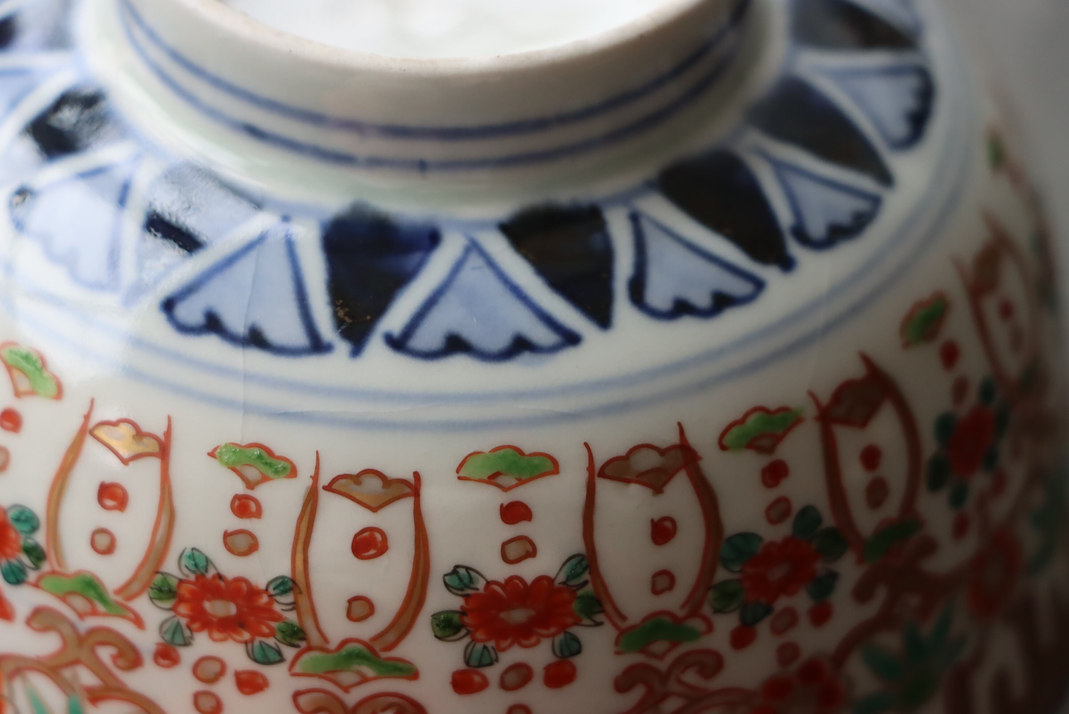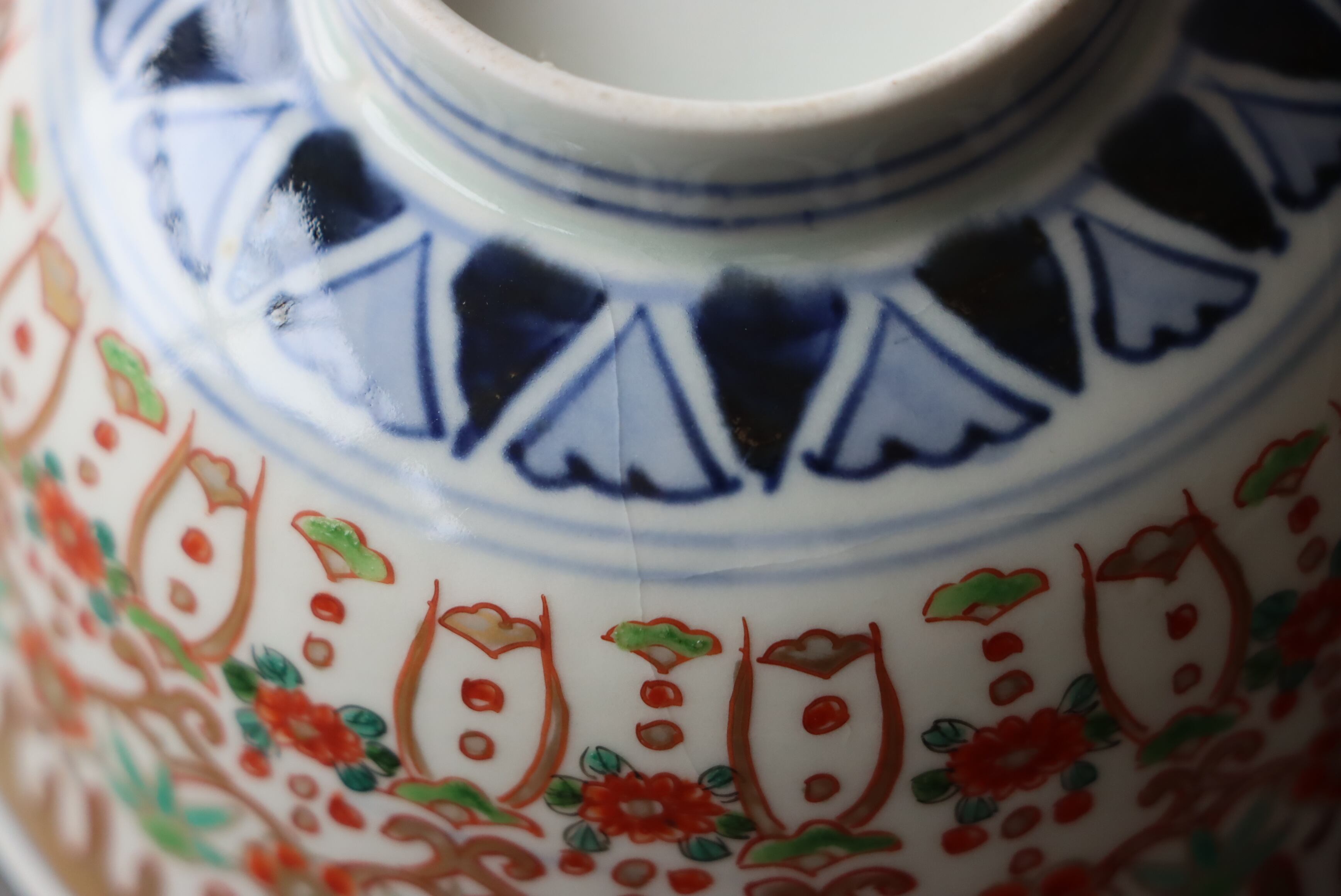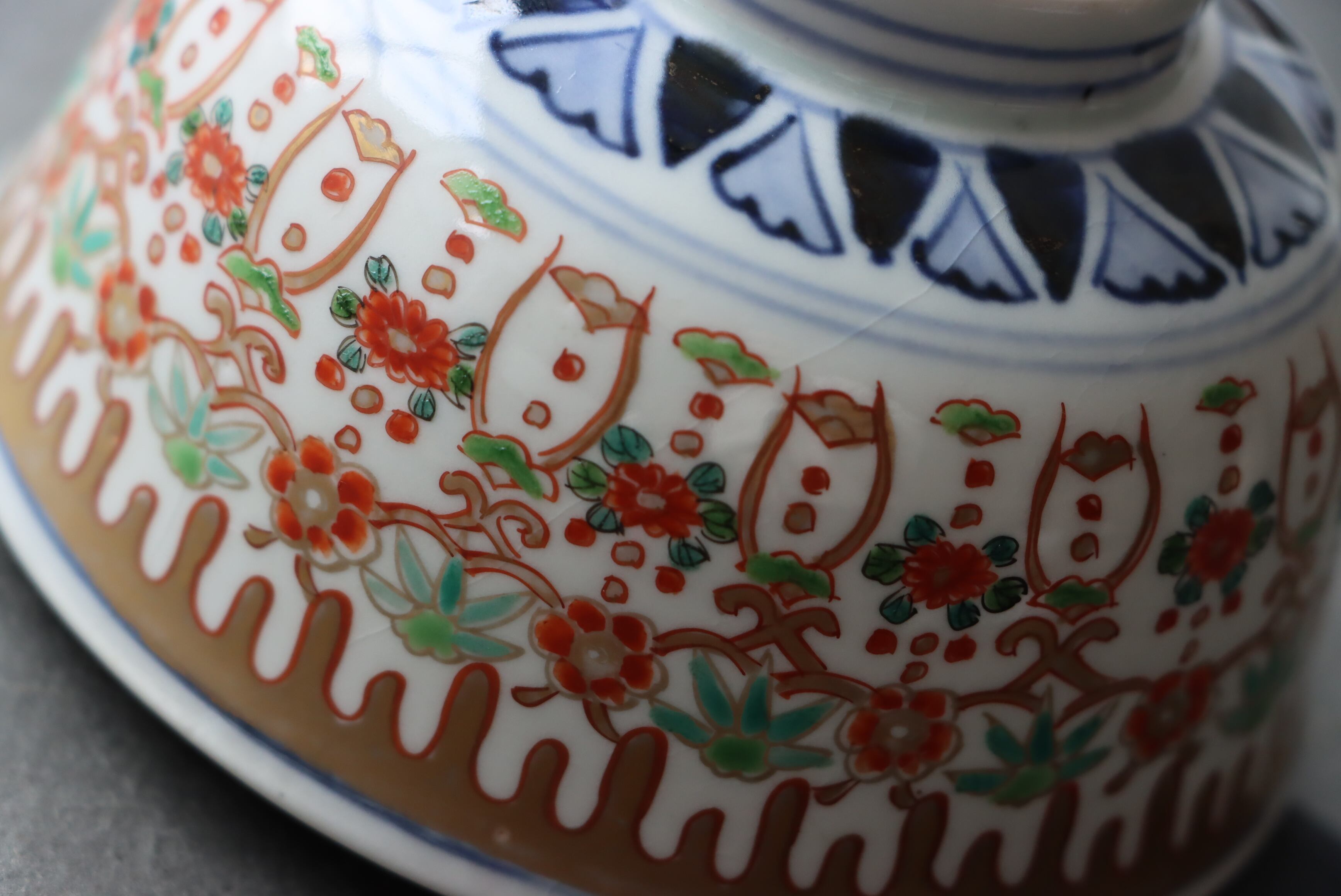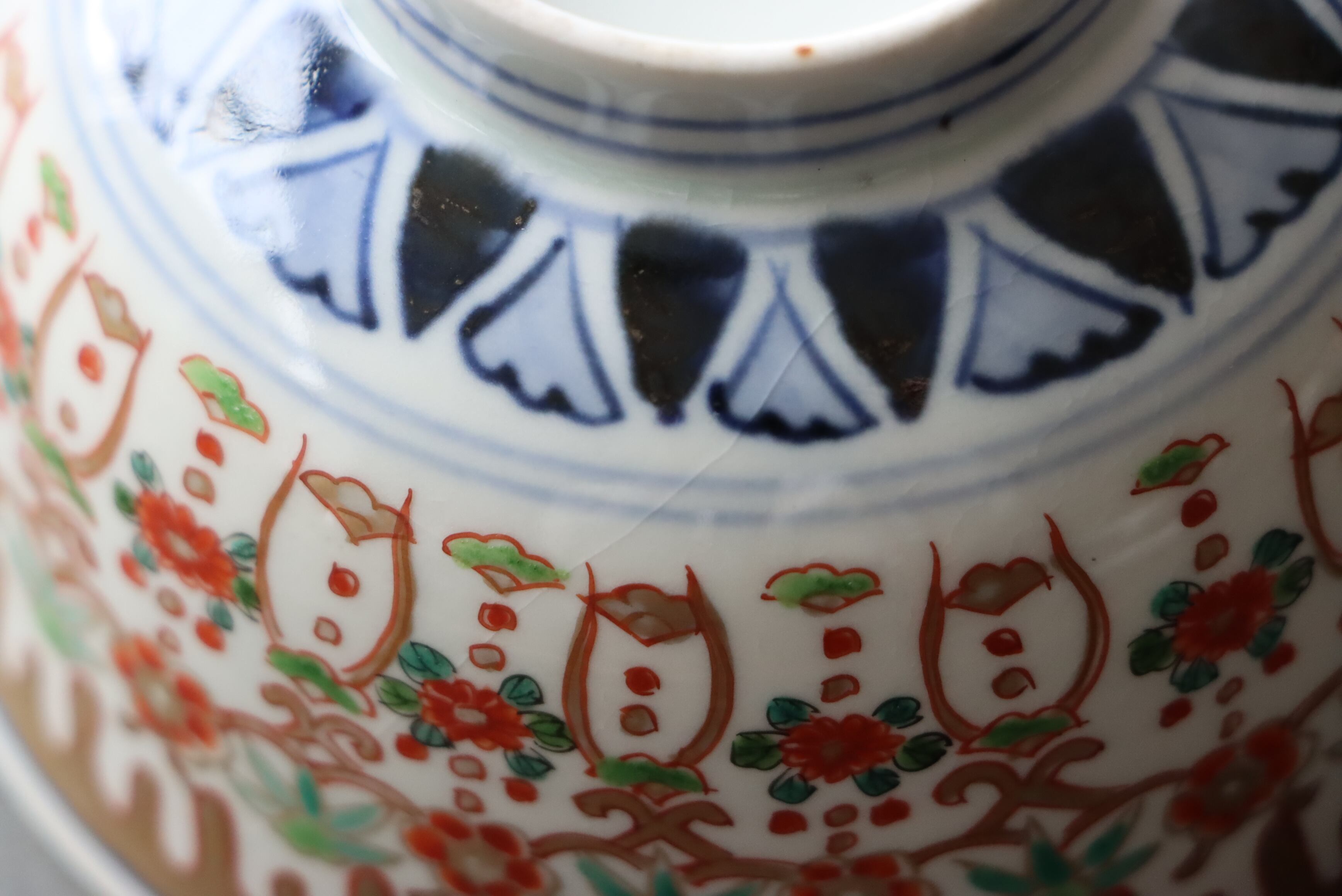 貫入 カマキズ 伊万里焼 色絵 壺垂花瓔珞文 向付 通りもの A アウトレット
