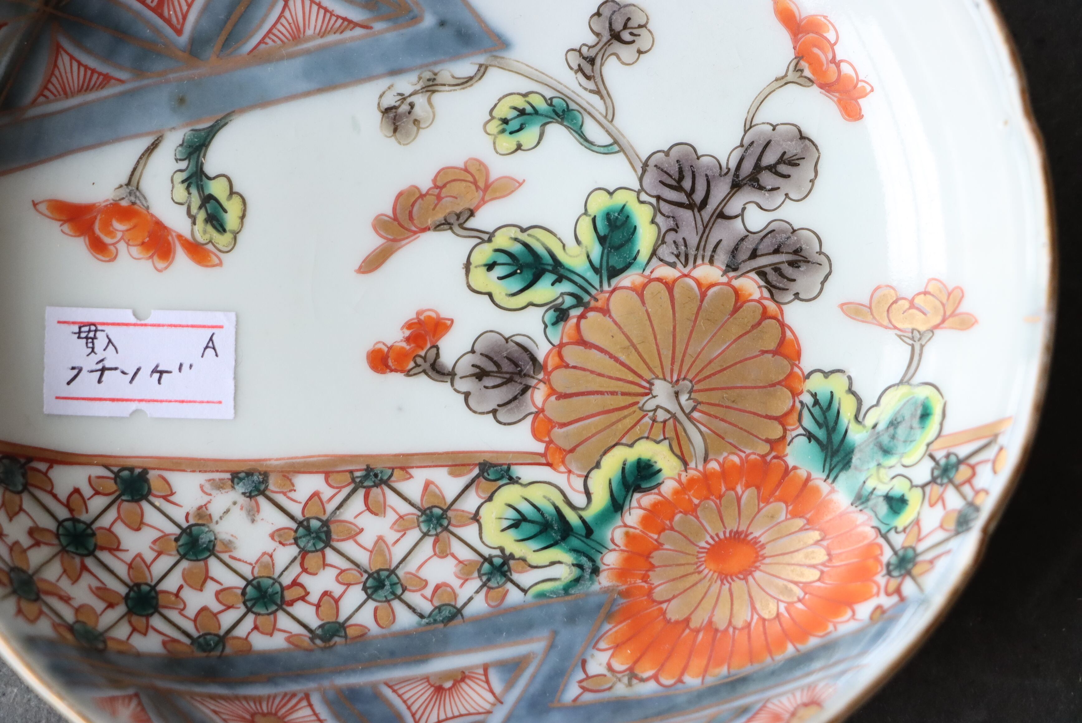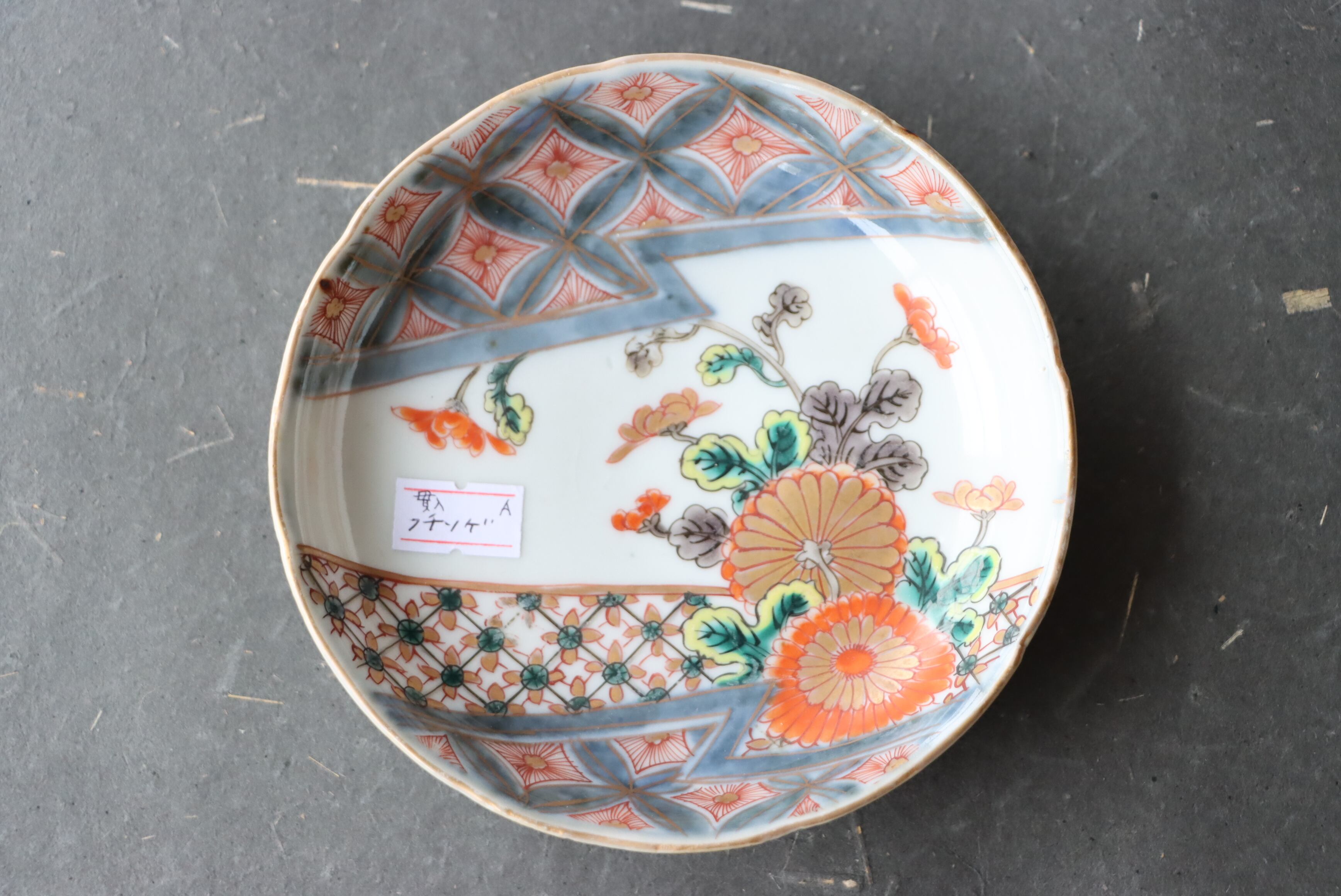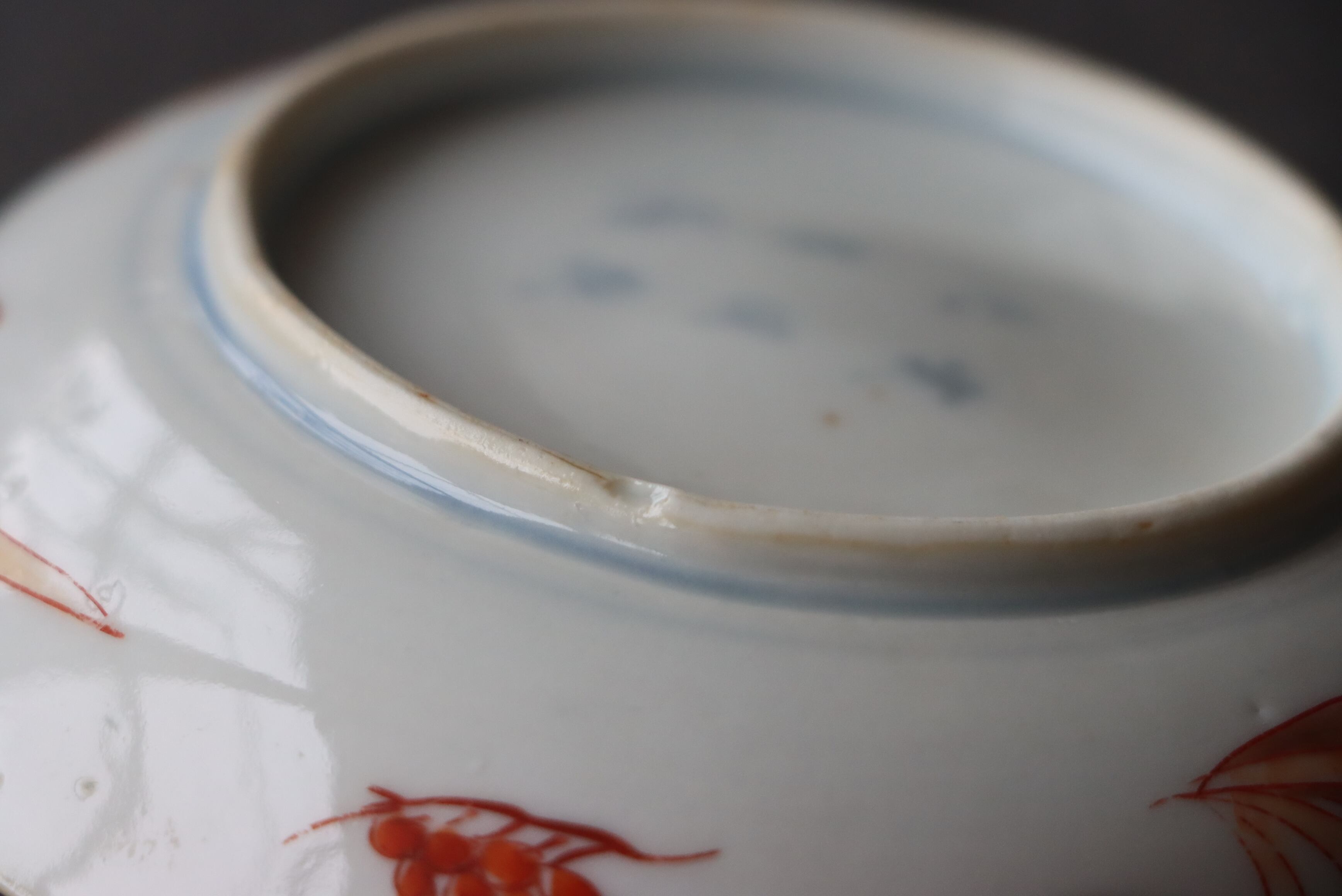 焼成時に窯の中でできる鉄分、くっつき、かまきず、ピンホール、経年による釉薬の薄れがございます。また、一枚一枚手描き、手作りですので器のサイズ(ミリ)、色味、描かれている文様の大きさなど個体差があり、ひとつとして同じものはございません。そういった時代感、個性をご理解いただき、楽しんでくだされば幸いです。電子レンジや食器洗い乾燥機のご使用はお控えください。