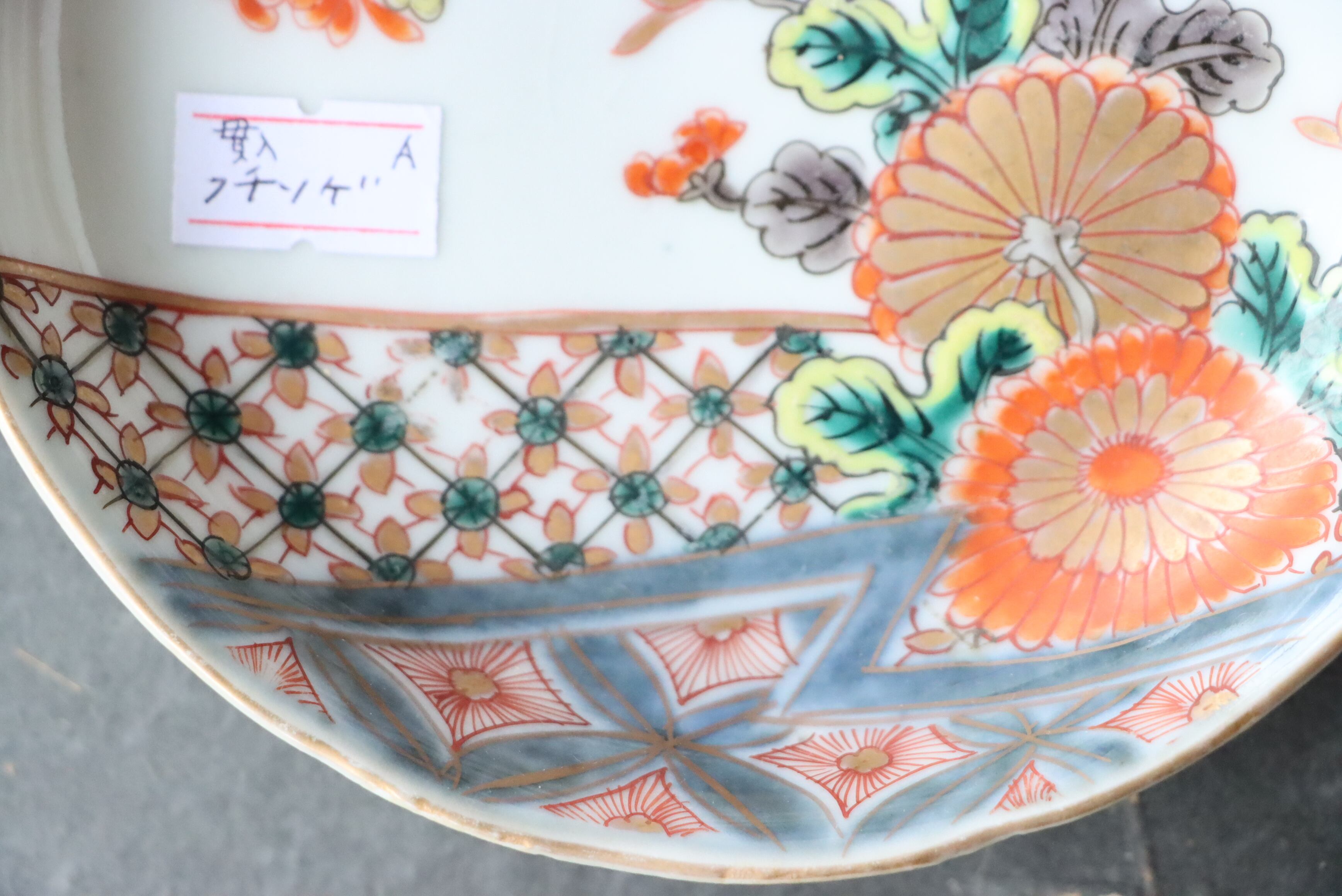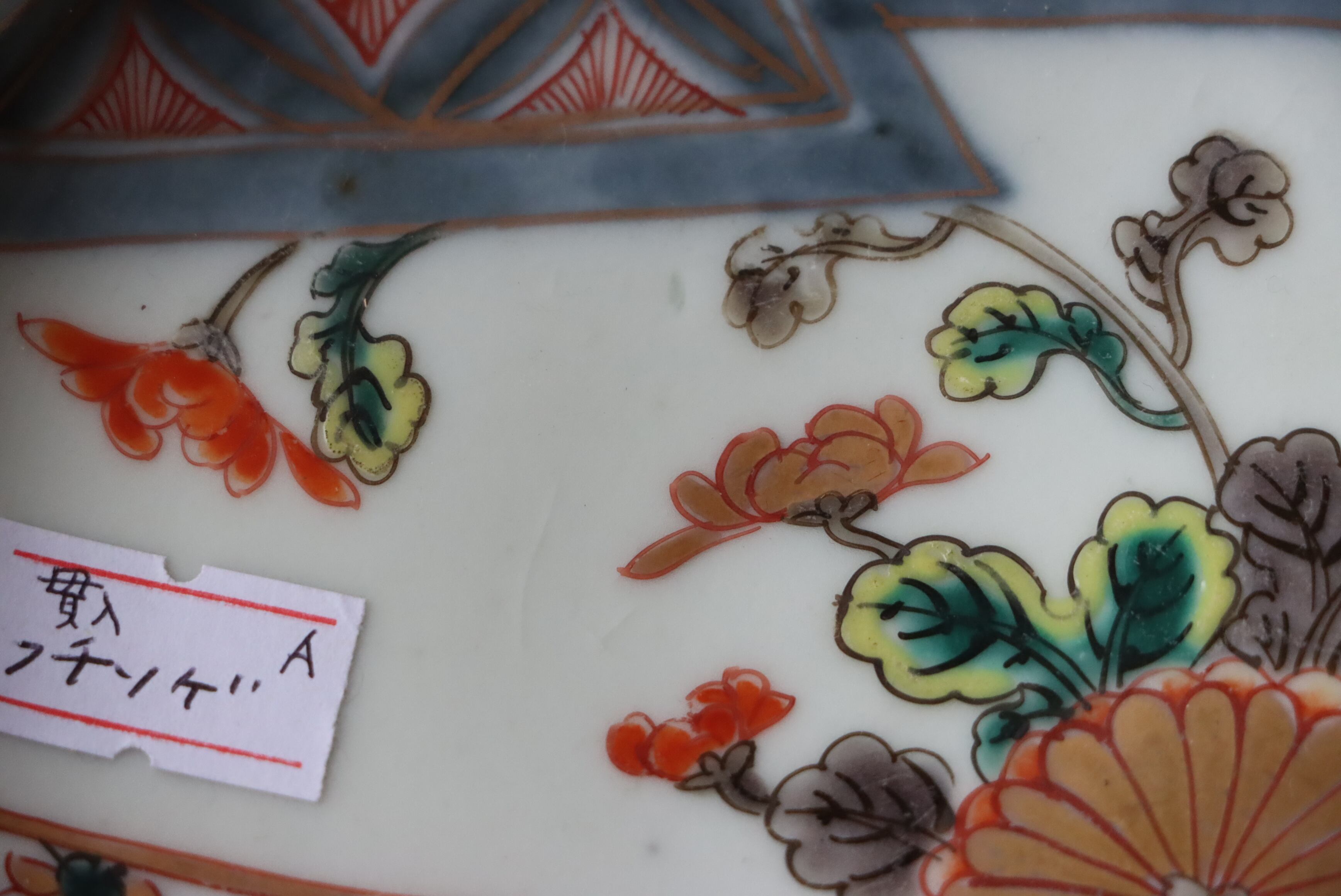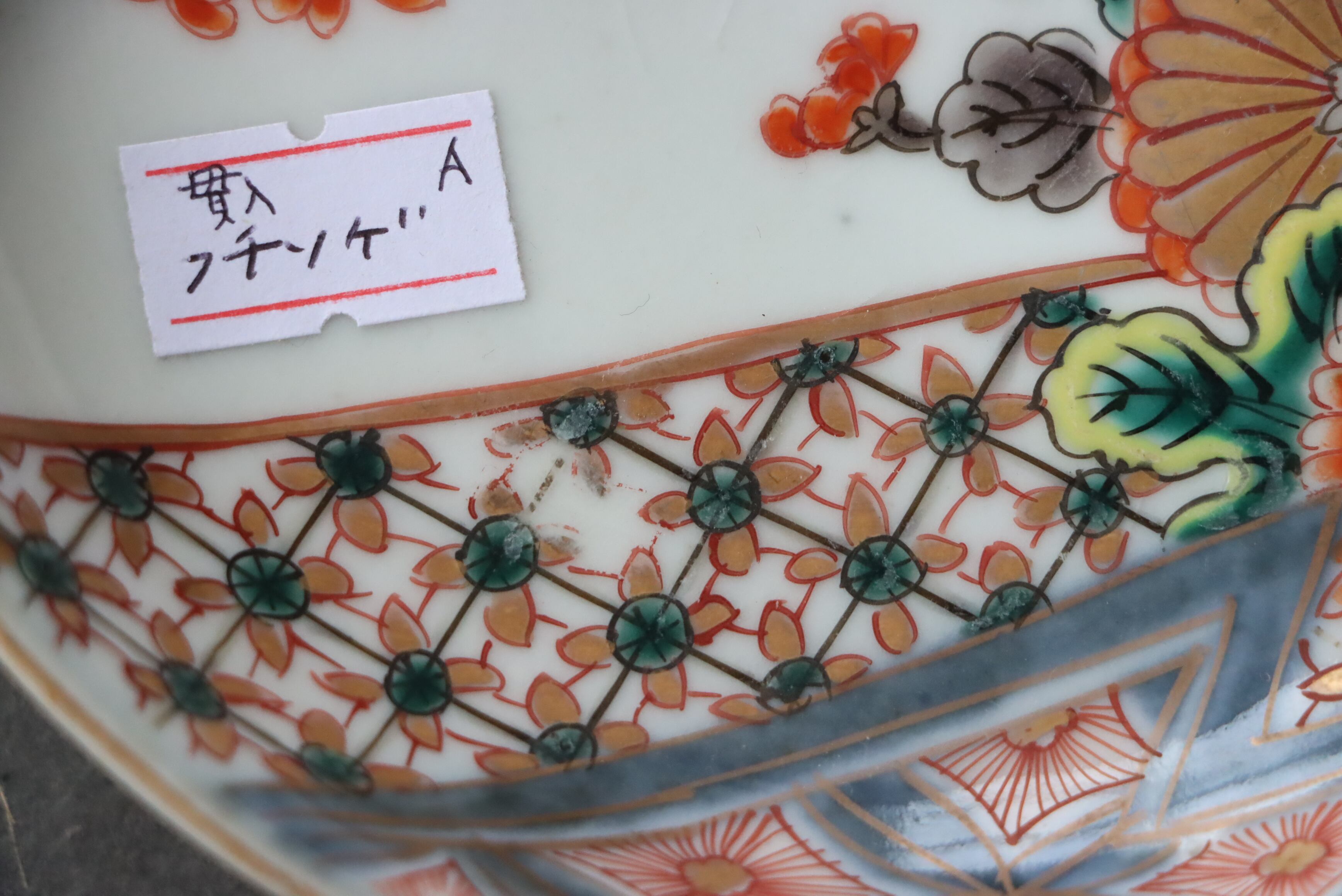 焼成時に窯の中でできる鉄分、くっつき、かまきず、ピンホール、経年による釉薬の薄れがございます。また、一枚一枚手描き、手作りですので器のサイズ(ミリ)、色味、描かれている文様の大きさなど個体差があり、ひとつとして同じものはございません。そういった時代感、個性をご理解いただき、楽しんでくだされば幸いです。電子レンジや食器洗い乾燥機のご使用はお控えください。