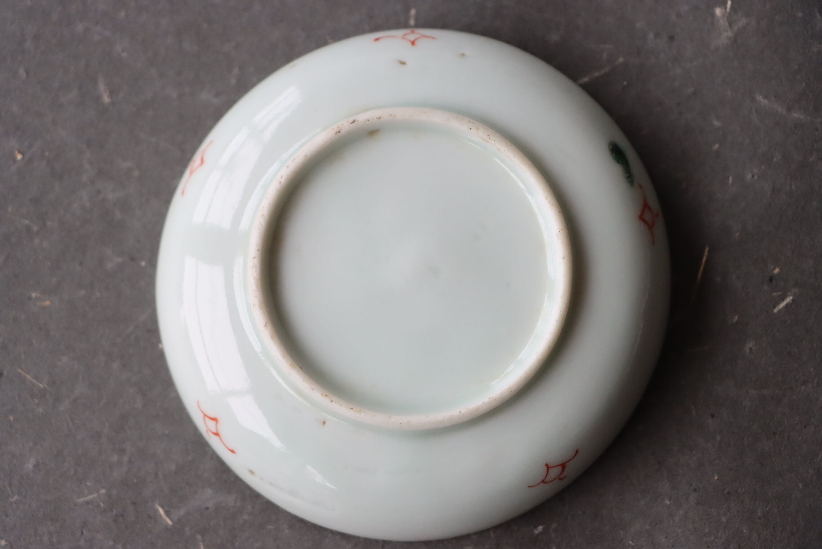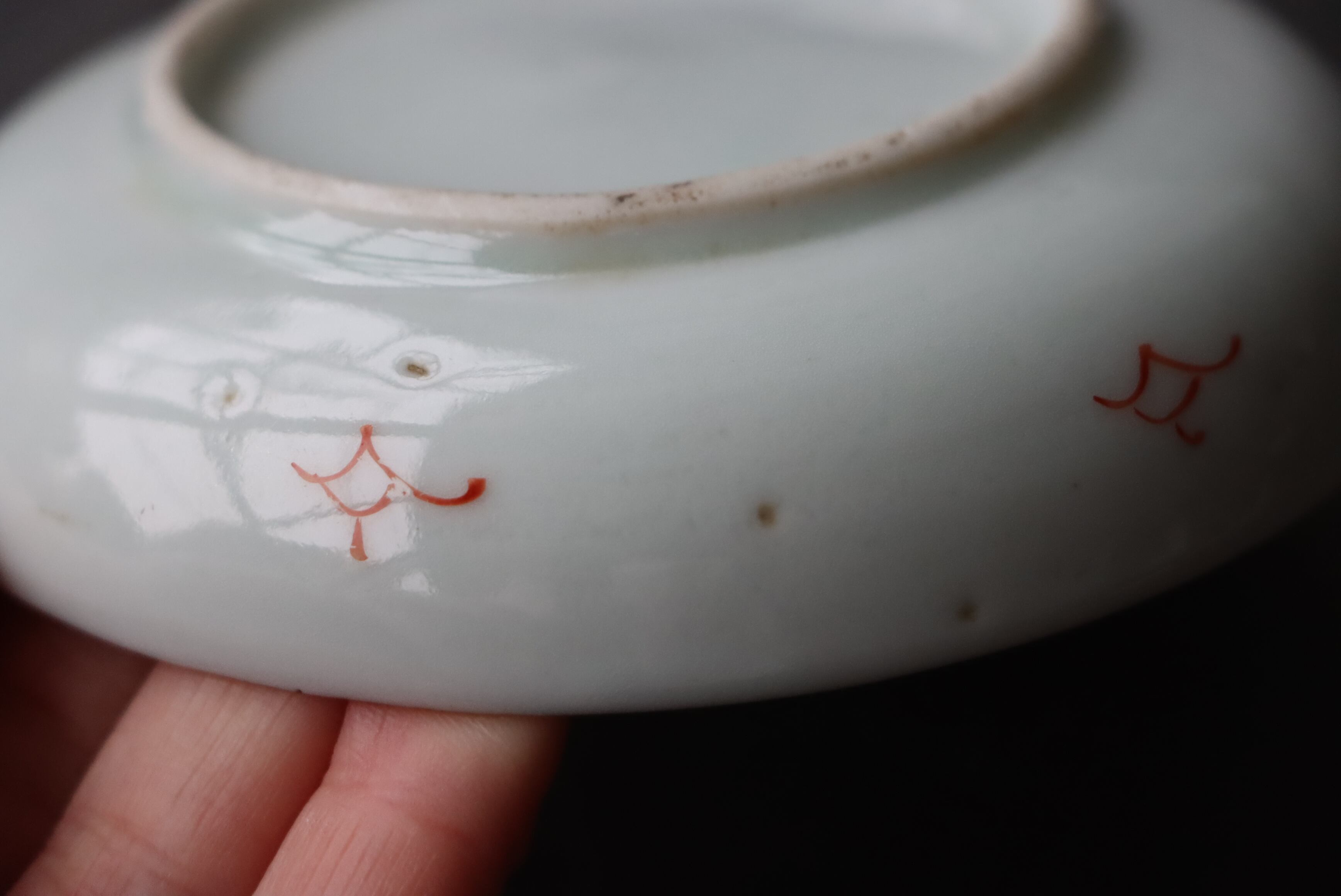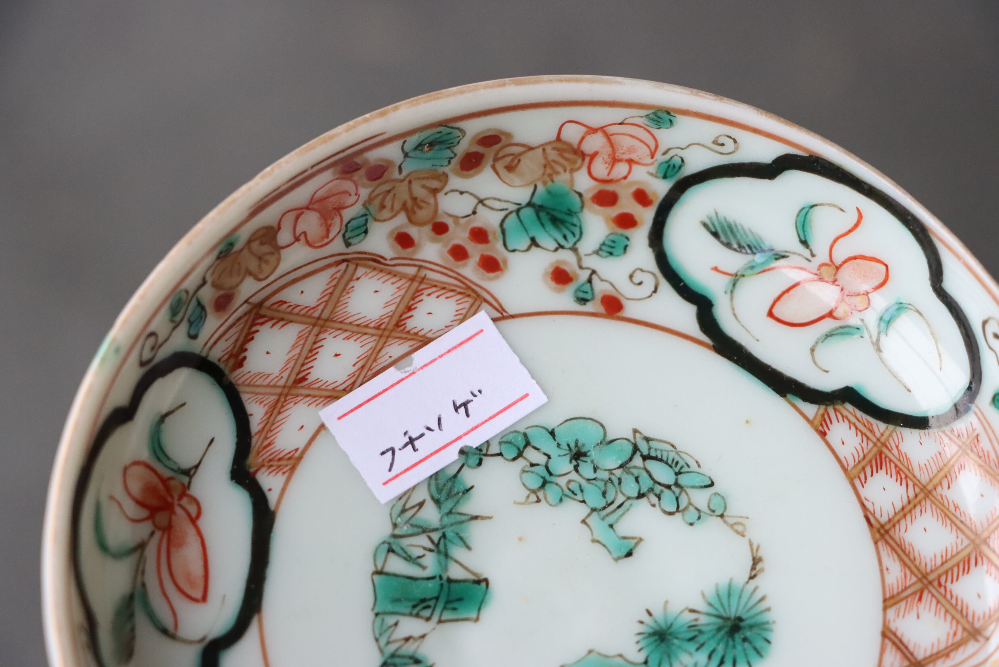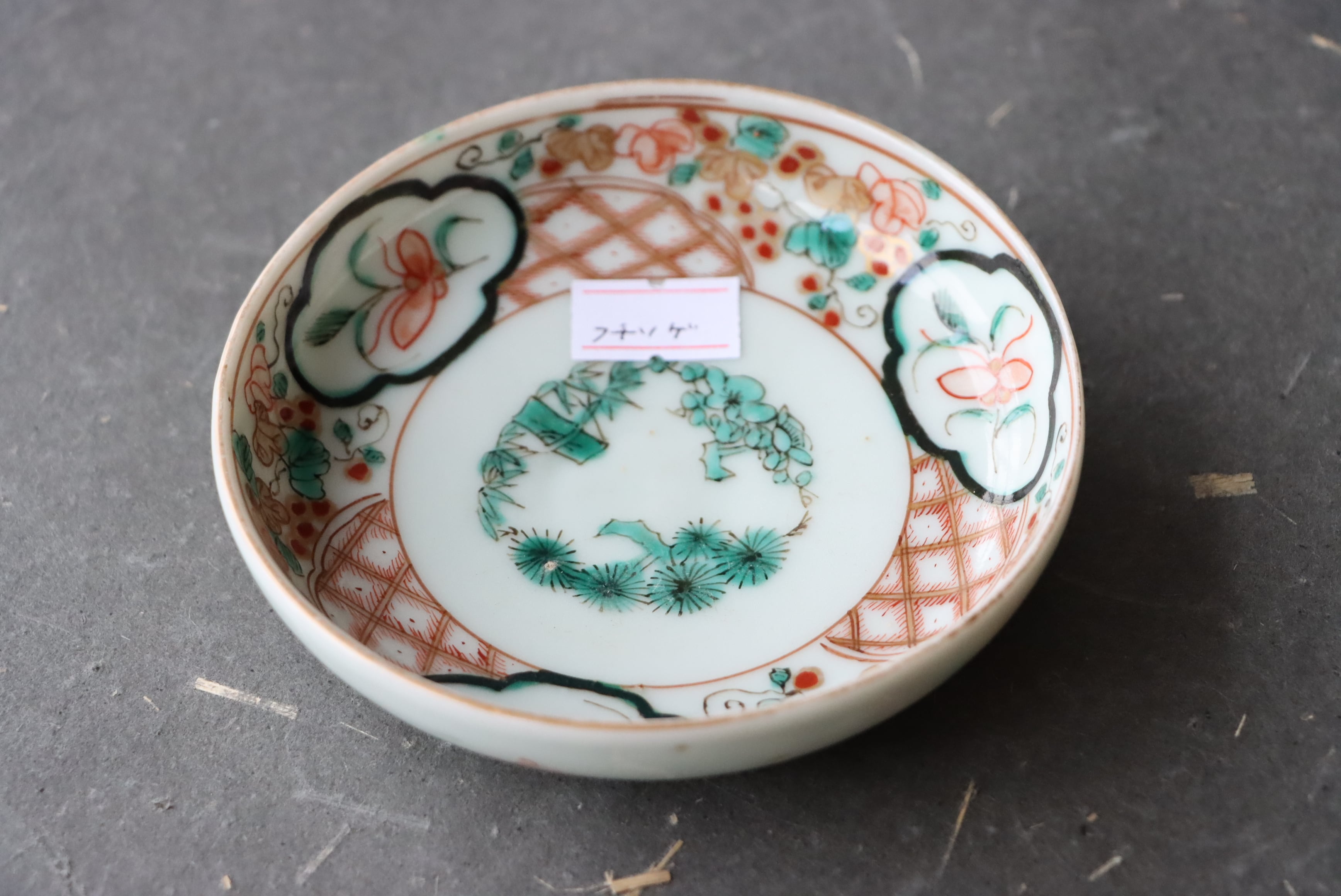 焼成時に窯の中でできる鉄分、くっつき、かまきず、ピンホール、経年による釉薬の薄れがございます。また、一枚一枚手描き、手作りですので器のサイズ(ミリ)、色味、描かれている文様の大きさなど個体差があり、ひとつとして同じものはございません。そういった時代感、個性をご理解いただき、楽しんでくだされば幸いです。電子レンジや食器洗い乾燥機のご使用はお控えください。