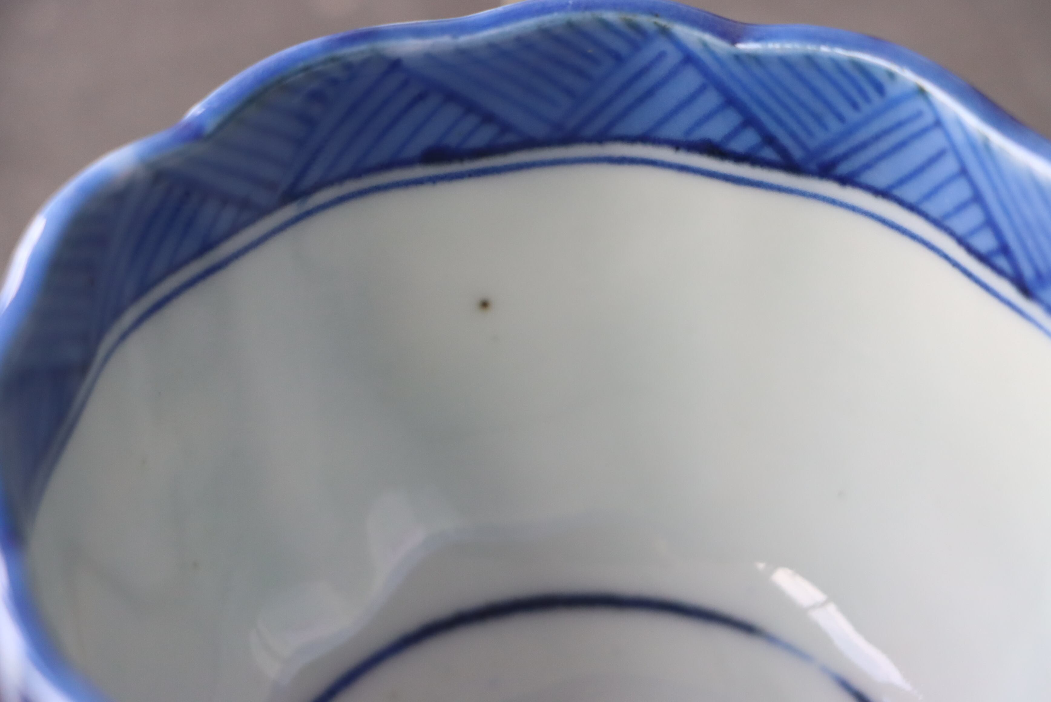 焼成時に窯の中でできる鉄分、くっつき、かまきず、ピンホール、経年による釉薬の薄れがございます。また、一枚一枚手描き、手作りですので器のサイズ(ミリ)、色味、描かれている文様の大きさなど個体差があり、ひとつとして同じものはございません。そういった時代感、個性をご理解いただき、楽しんでくだされば幸いです。電子レンジや食器洗い乾燥機のご使用はお控えください。